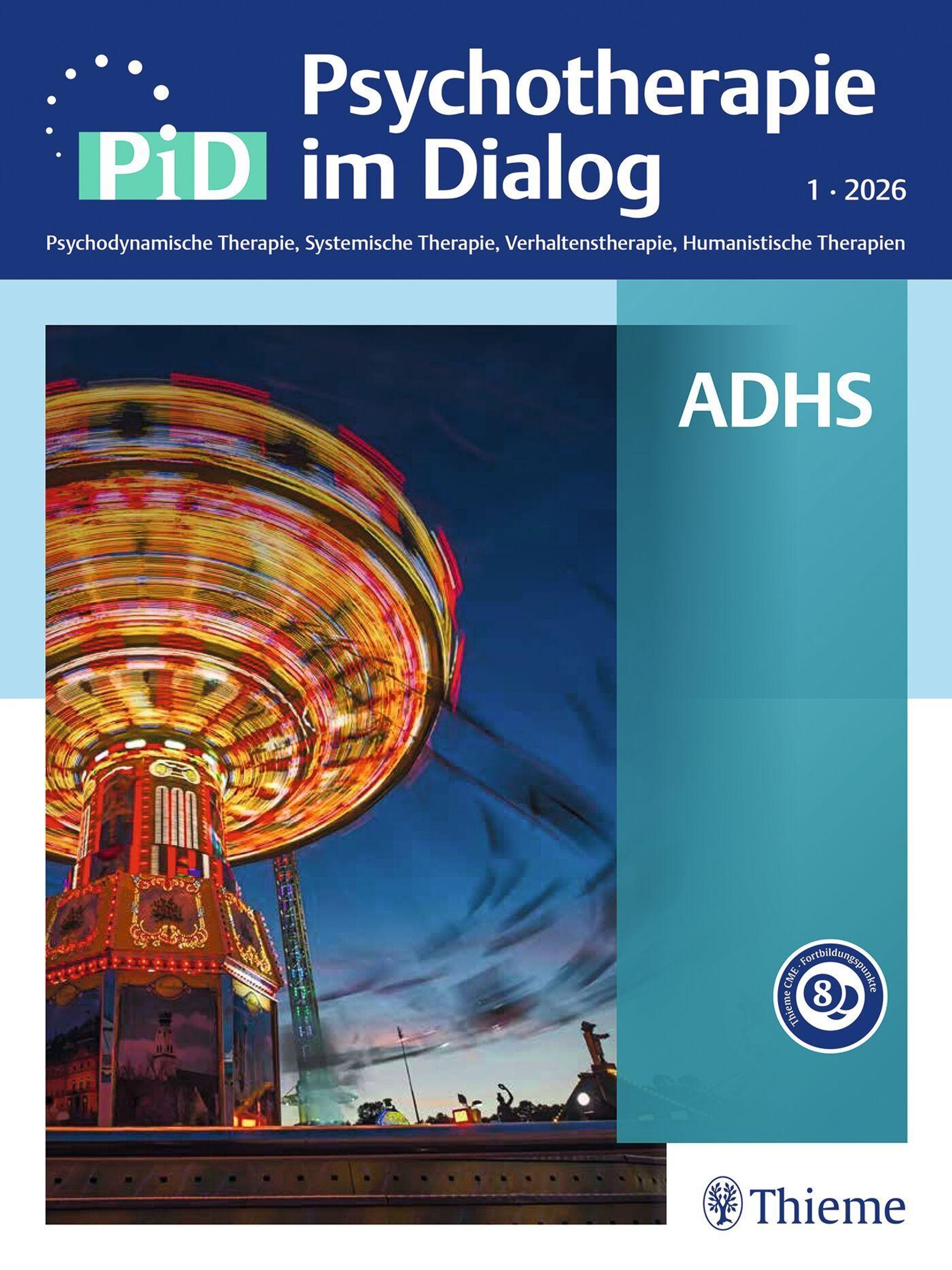 "Psychotherapie im Dialog", "ADHS". Ein hell erleuchtetes Karussell vor einem dunkelblauen Himmel., Buch