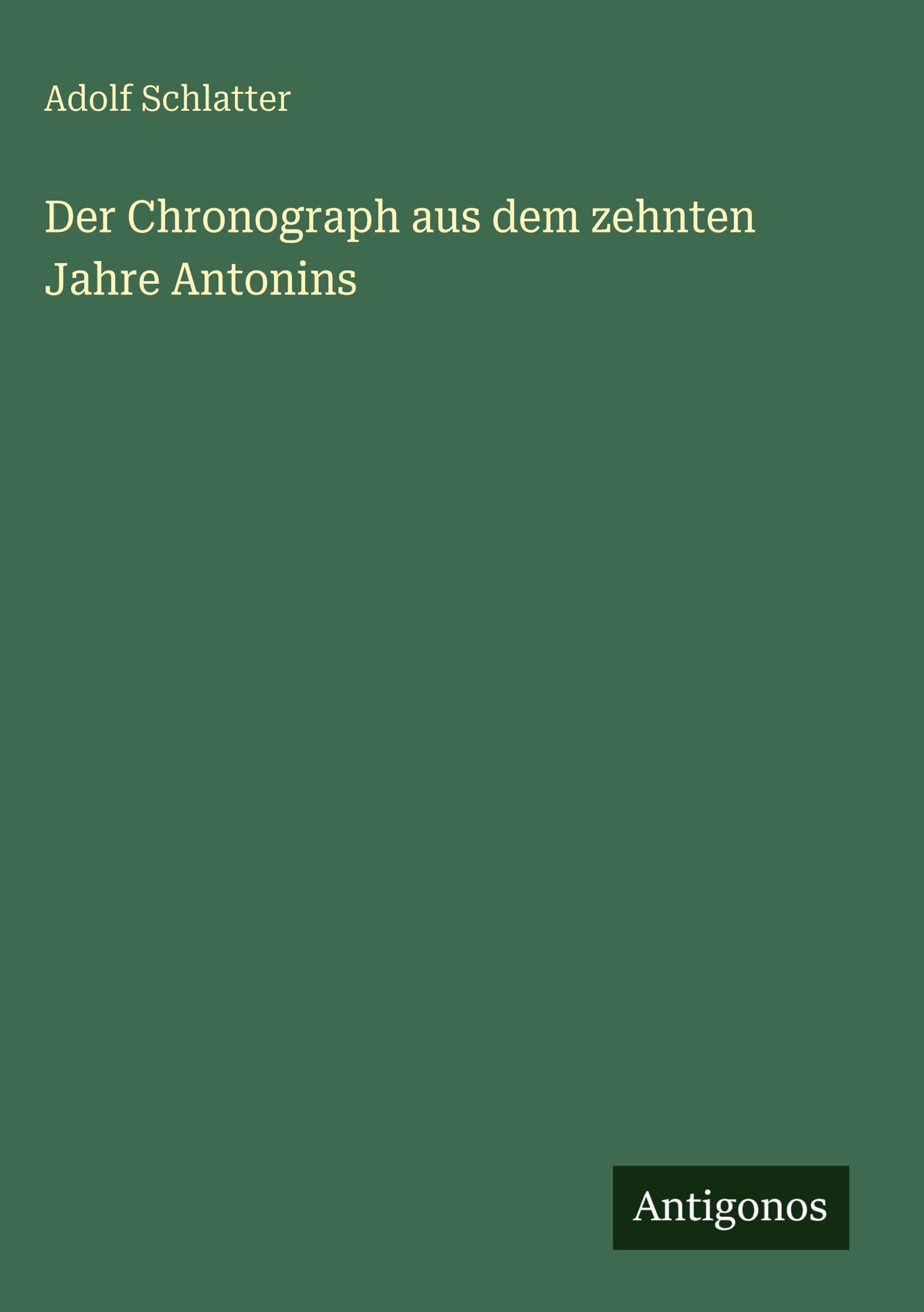 Adolf Schlatter: Der Chronograph aus dem zehnten Jahre Antonins, Gebunden