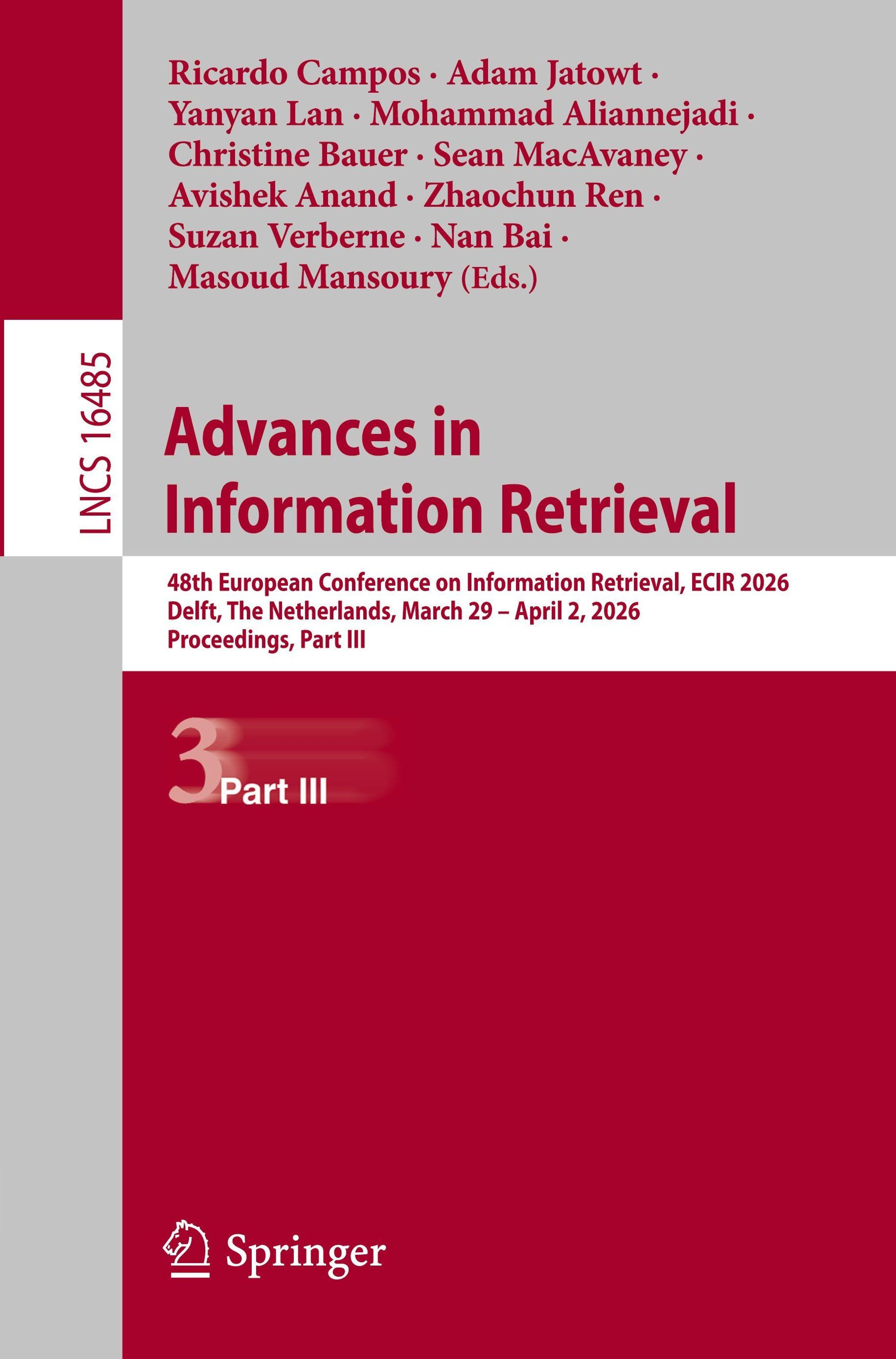 • 48th European Conference on Information Retrieval, ECIR 2026, Delft, The Netherlands, March 29 - April 2, 2026, Proceedings, Part III