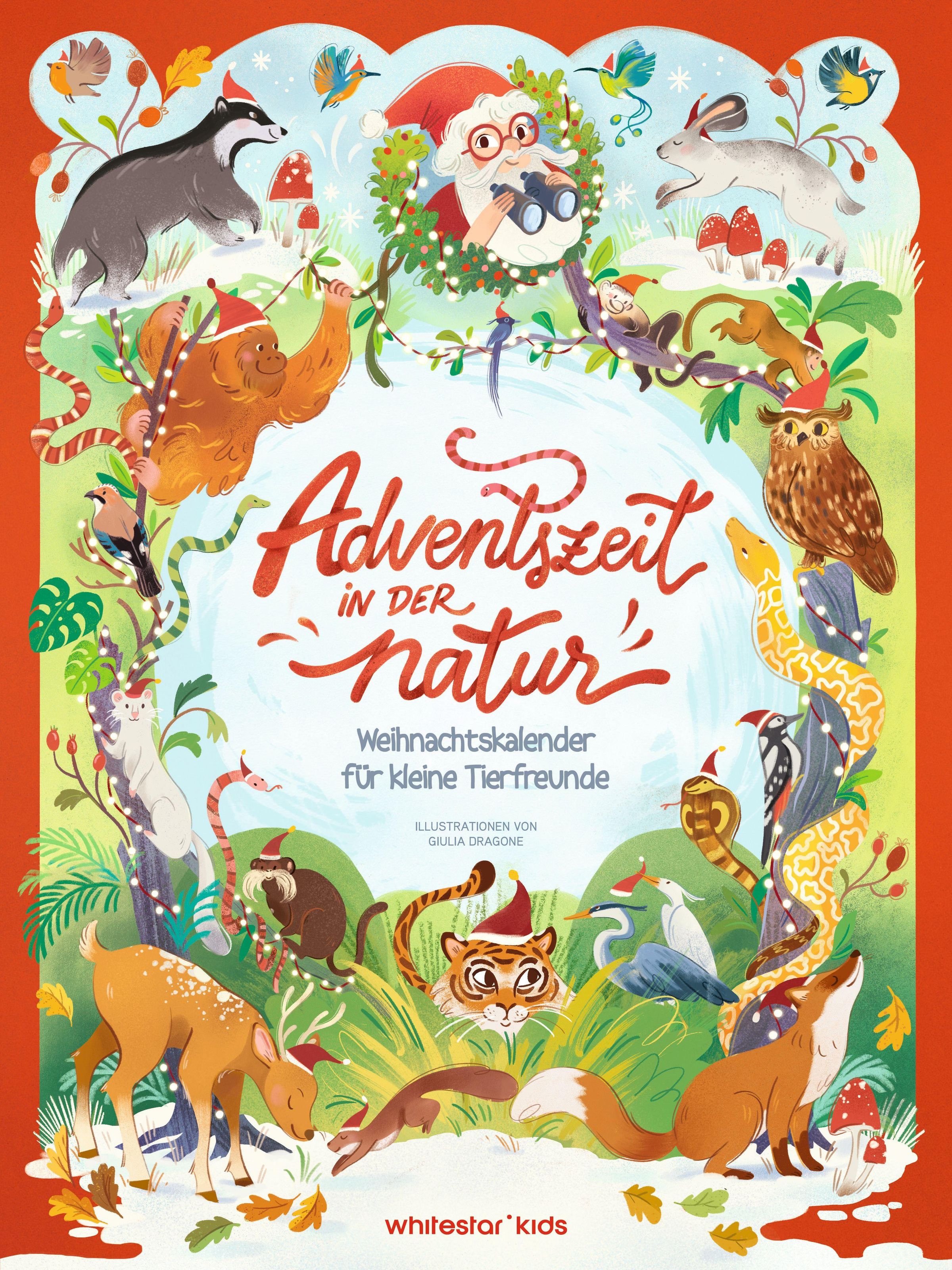 Adventszeit in der Natur: Ein Weihnachtskalender für kleine Tierfreunde nimmt die Kinder, begleitet vom Weihnachtsmann, mit auf eine Reise durch zehn verschiedene tierische Lebensräume. Hinter den Klappen warten spannende Fakten, Spiele, kreative Aktivitäten, Rezepte und weihnachtliche Geschichten rund um die Tierwelt auf sie. Ein interaktives Buch, das die Tage bis Weihnachten zu etwas ganz Besonderem werden lässt.