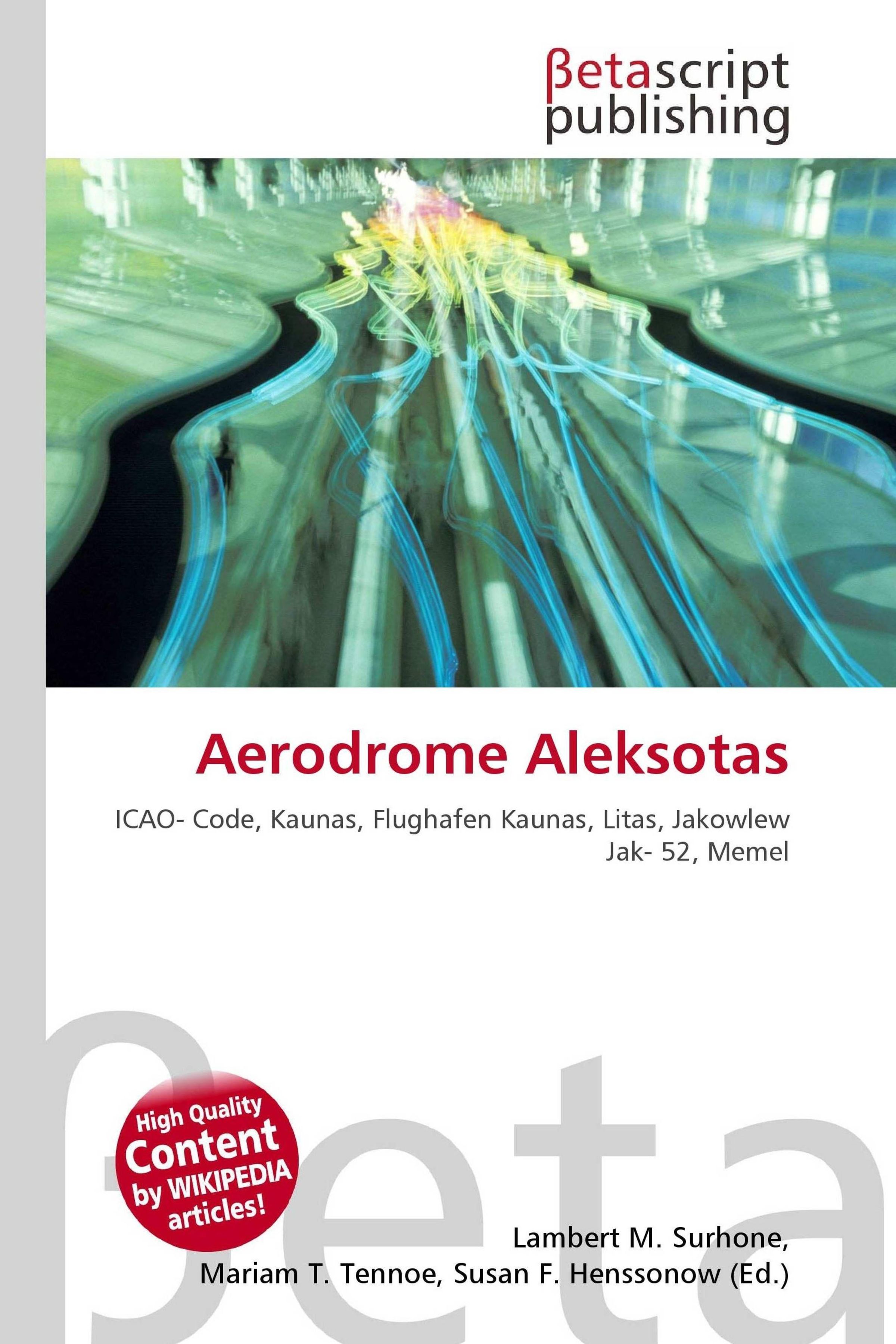 "Aerodrome Aleksotas", ein Deckblatt mit verschwommenen Lichtspuren und bunten Linien, oben "Betascript publishing" Logo., Buch