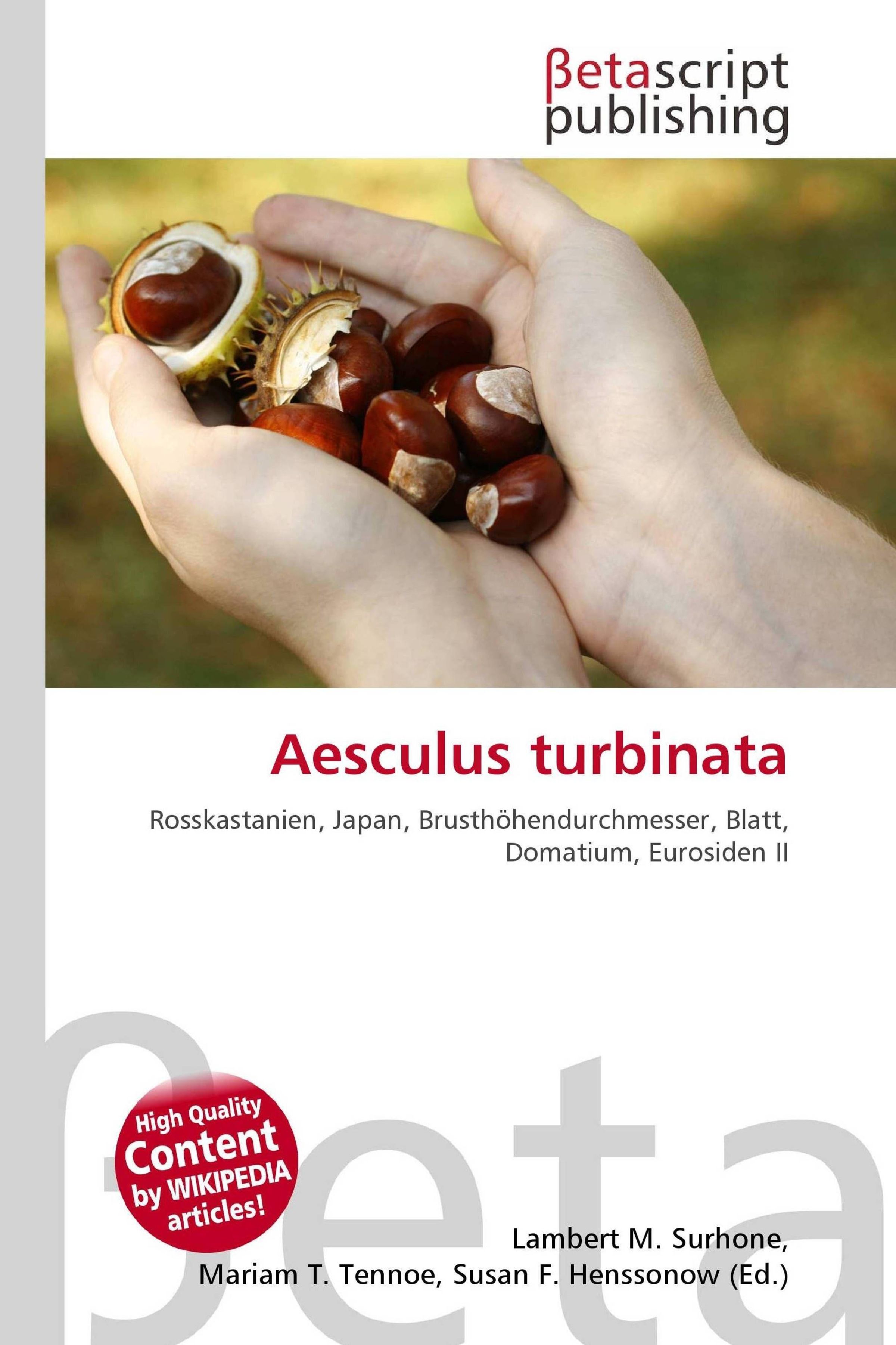 Please note that the content of this book primarily consists of articles available from Wikipedia or other free sources online. Die Japanische Rosskastanie (Aesculus turbinata) ist ein Vertreter der Rosskastanien (Aesculus). Sie ist in Japan heimisch, wird jedoch verbreitet als Zierbaum angepflanzt. Die Japanische Rosskastanie ist ein bis 30 m hoher Baum und erreicht Brusthöhendurchmesser bis zu 2 m. Junge Zweige sind behaart. Die Blattstiele sind 7, 5 bis 25 cm lang, kahl oder behaart. Die Laubblätter sind handförmig gefiedert und bestehen aus 5 bis 7 Fiederblättchen. Diese sind sitzend, in der Form lanzettlich. Sie sind 15 bis 35 cm lang und 5 bis 15 cm breit. Die Blattunterseite ist hell bis bläulich, dicht behaart oder verkahlend mit Ausnahme von Domatien. Der Blattrand ist schwach gekerbt, die Blattbasis stumpf, das Blattende plötzlich zugespitzt. Es gibt 18 bis 26 Paare Seitennerven.