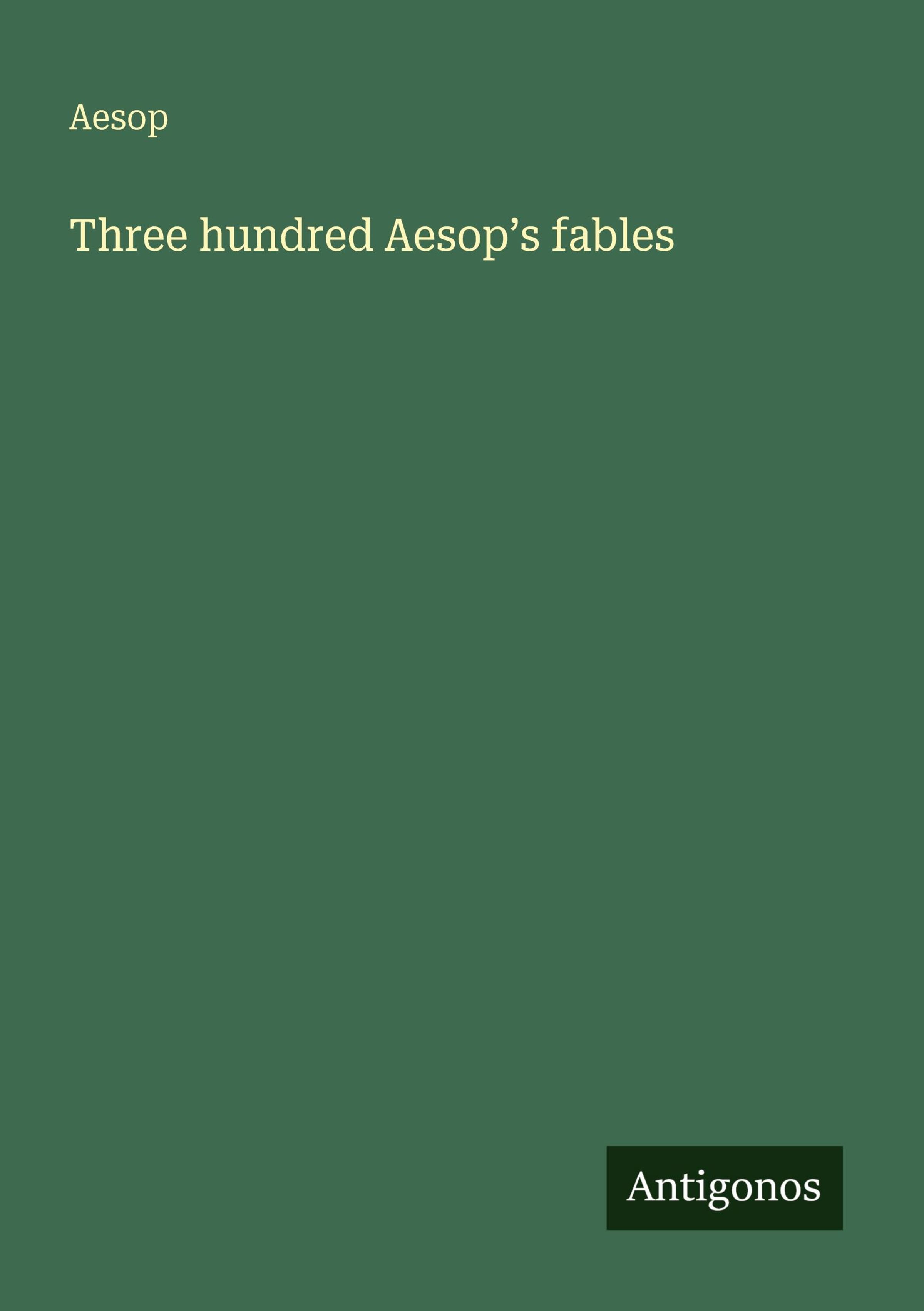 Grüner Hintergrund, Text: "Aesop", "Three hundred Aesop’s fables", Logo: "Antigonos" unten rechts., Buch