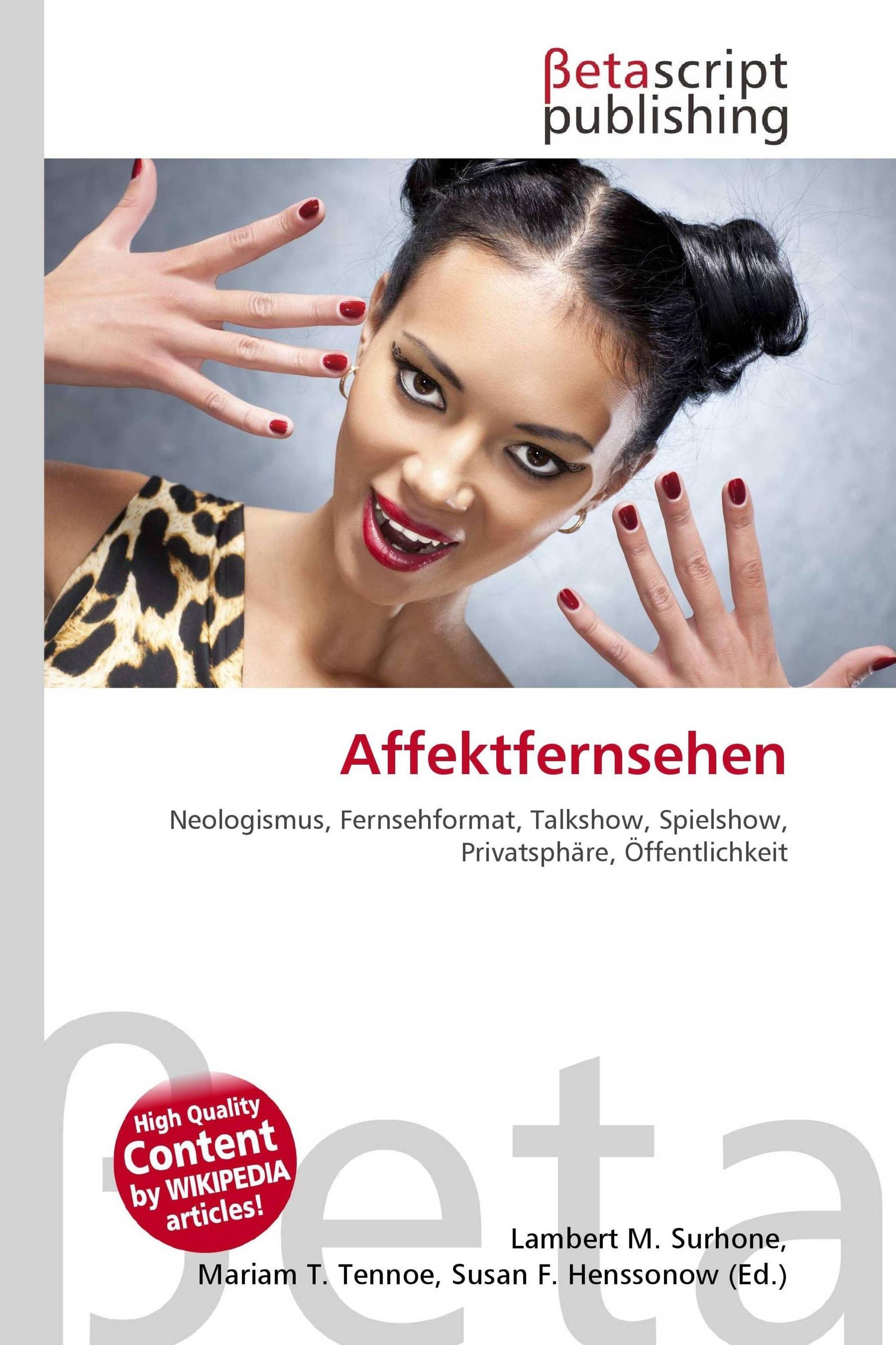 Please note that the content of this book primarily consists of articles available from Wikipedia or other free sources online. Affektfernsehen ist ein medienpsychologischer Neologismus für unterschiedliche moderne Fernsehformate wie Talk-, Beziehungs- oder Spielshows. Es bezieht sich auf jene Fernsehangebote, die die Eigenschaften der Zentrierung auf Einzelschicksale, der Fokussierung auf emotionale Befindlichkeiten und der Überschreitung der Grenze zwischen Privatsphäre und Öffentlichkeit umfassen. Personalisierung: Die Darstellung ist auf das Einzelschicksal und auf die unmittelbar betroffene Einzelperson zentriert, wobei Allgemeines hinter dem Individuellen zurücktritt. Die Person des Moderators schafft ein Klima der Vertrautheit und Verlässlichkeit.