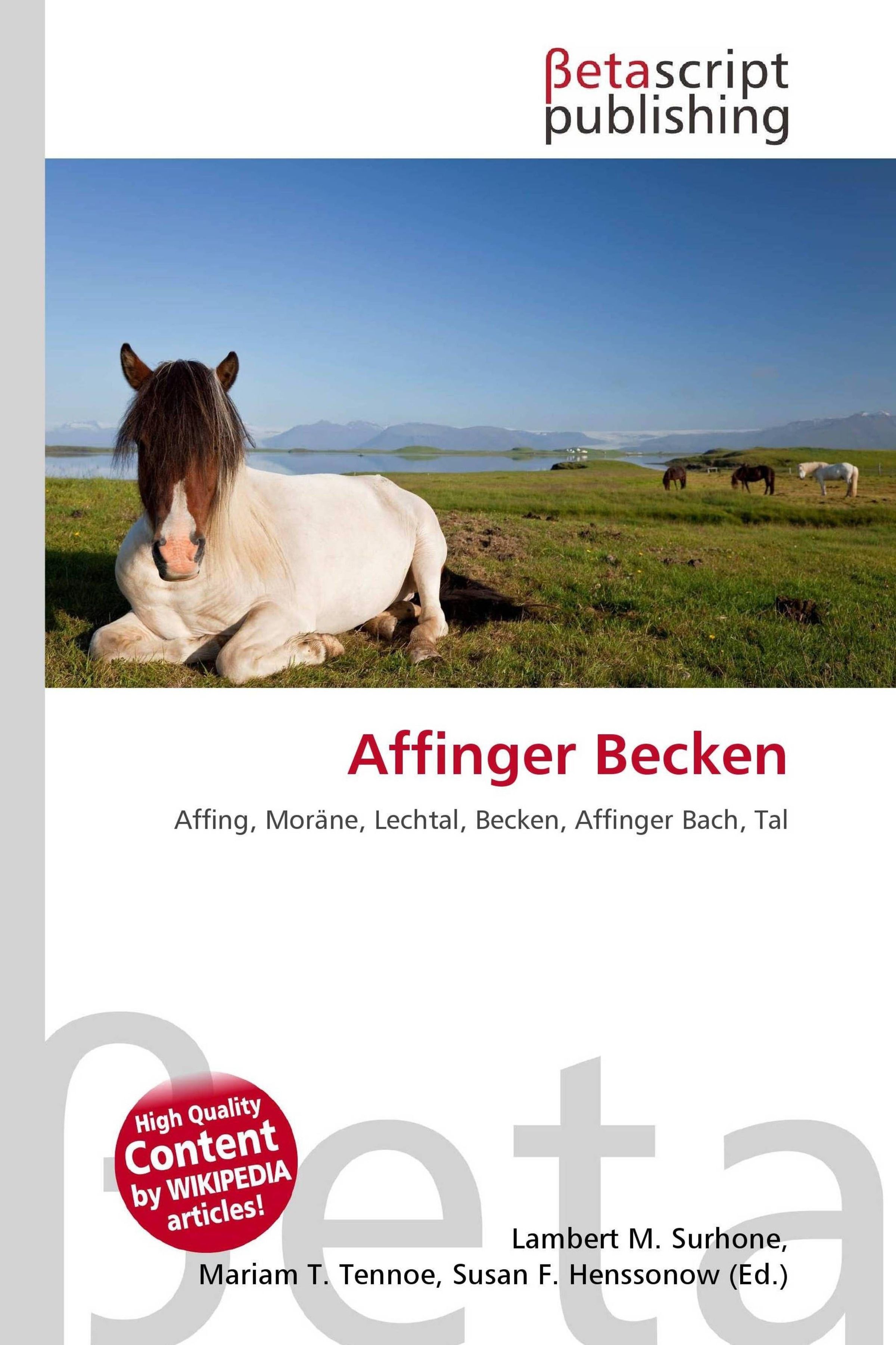 Please note that the content of this book primarily consists of articles available from Wikipedia or other free sources online. Als Affinger Becken wird die Landschaft rund um den Ort Affing bezeichnet. Affing ist eine Gemeinde im bayerisch-schwäbischen Landkreis Aichach-Friedberg. Das Affinger Becken wird von Moränen-Hügeln begrenzt und öffnet sich im Westen dem Lechtal. In diesem Landschaftsbecken (Niederung) entspringt der Affinger Bach, dessen Bachtal unter anderem das Affinger Becken formt.