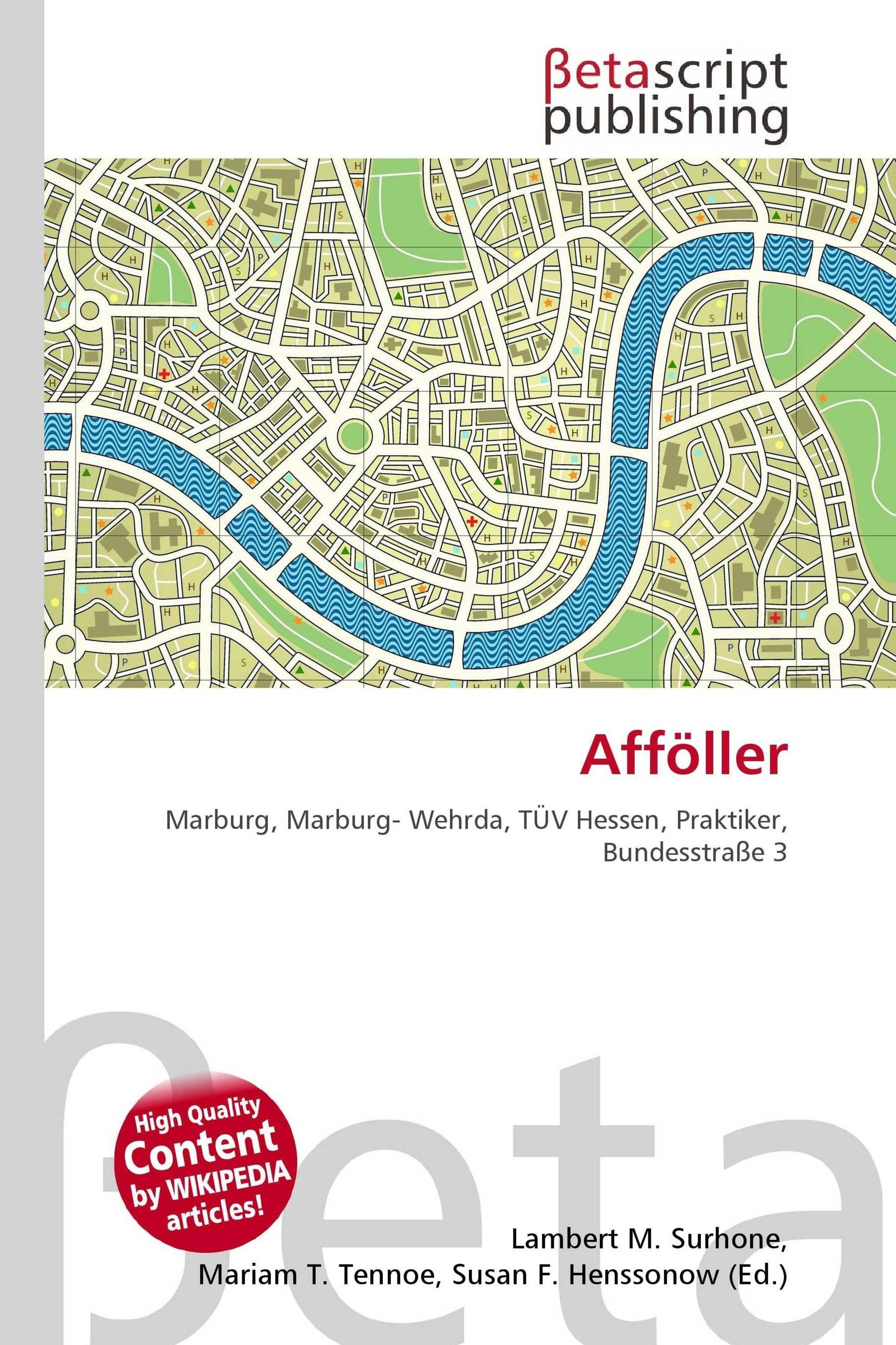 Please note that the content of this book primarily consists of articles available from Wikipedia or other free sources online. Afföller ist ein Messe- und Gewerbegebiet im Norden Marburgs, östlich von Lahn und Stadtautobahn, westlich der Bahngleise und nordwestlich des Hauptbahnhofs, das nach Norden in den Industriepark Wehrda übergeht. Der Afföller ist Teil des Innenstadtbezirks Nordviertel und liegt in dessen Nordwesten. Im Norden des Afföller liegt der Messeplatz, an den sich nach Süden das Gewerbegebiet anschließt, in dem u. a. der TÜV Hessen, diverse Autohändler, ein Praktiker-Baumarkt, ein Spielwaren-Großmarkt und drei Schnellrestaurants amerikanischer Ketten ansässig sind.