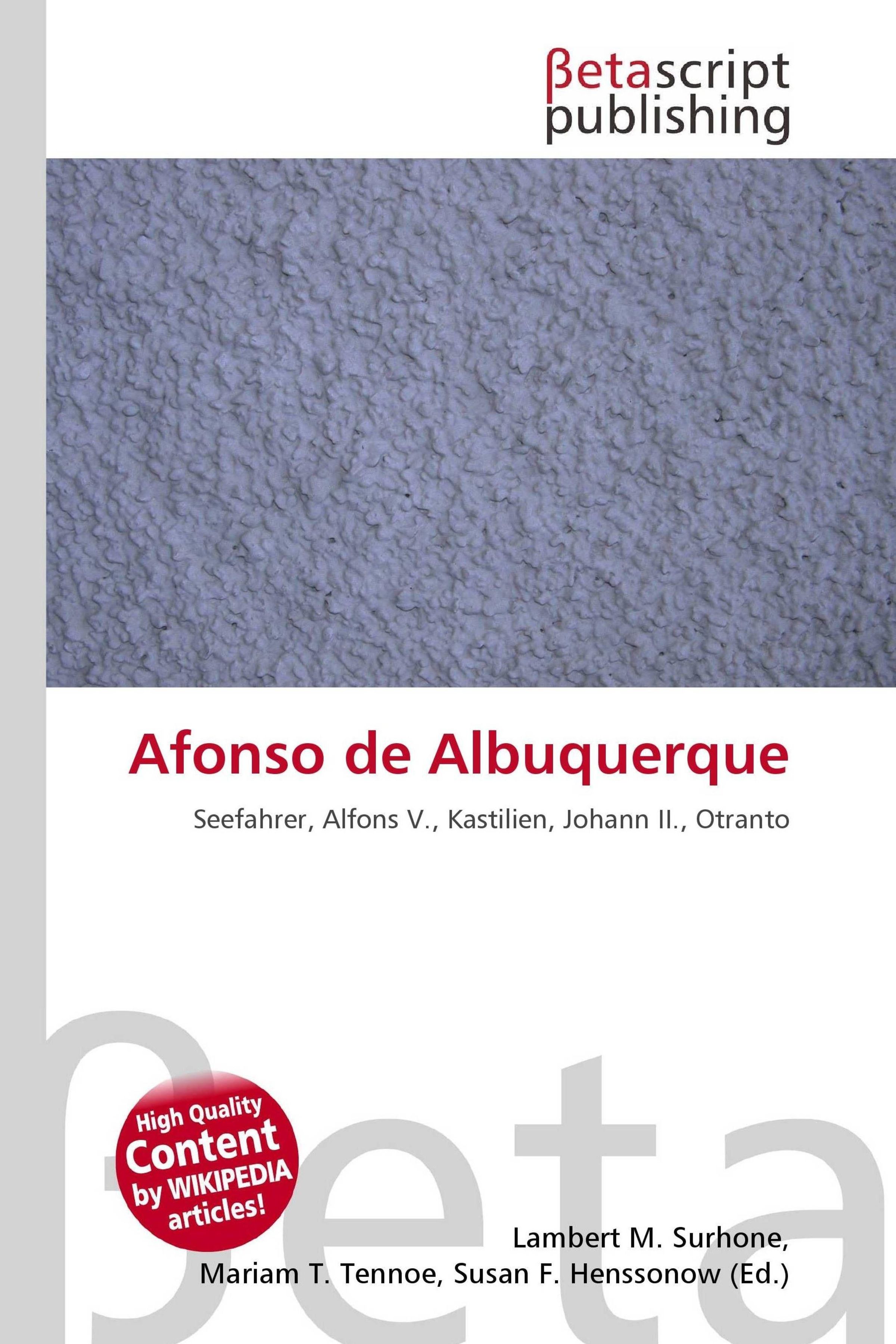 Please note that the content of this book primarily consists of articles available from Wikipedia or other free sources online. Afonso de Albuquerque, auch Afonso der Große genannt, (* 1453 in Alhandra nahe Lissabon; 16. Dezember 1515 auf Reede vor Goa) war ein portugiesischer Militär, Politiker und Seefahrer sowie zweiter Gouverneur von Indien. Mit seiner Tätigkeit schuf er die Basis für die portugiesische Expansion in Asien. Als Geburtsjahre werden auch 1445, 1450 sowie 1462 angegeben. Geboren wurde der dem portugiesischen Hochadel entstammende Albuquerque als zweiter Sohn von Gonçalo de Albuquerque, Herr von Vila Verde dos Francos, und Leonor de Menezes. Sowohl die Familie seines Vaters als auch die seiner Mutter waren mit den portugiesischen und kastilischen Königshäusern verwandt.