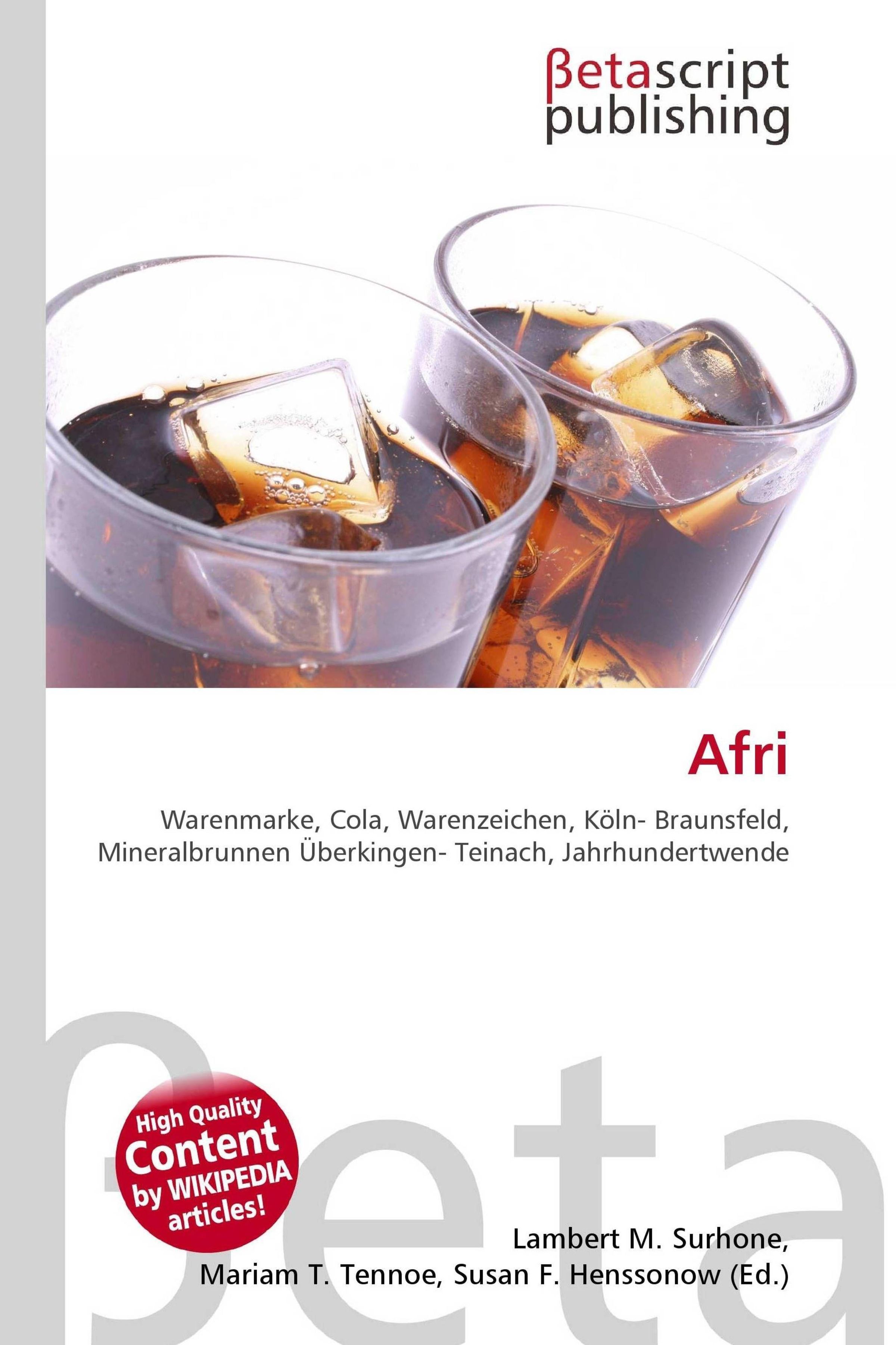 Please note that the content of this book primarily consists of articles available from Wikipedia or other free sources online. Afri-Cola ist eine aus Deutschland stammende Cola-Marke und wurde 1931 von F. Blumhoffer Nachfolger GmbH als Warenzeichen eingetragen. Aus demselben Hause stammt die Orangenlimonade Bluna. Ursprünglich lag der Stammsitz der Marke in Köln-Braunsfeld. Eigentümer der Marke ist die Familie Flach, die Abfüllung übernimmt heute die Mineralbrunnen Überkingen-Teinach AG. Das Unternehmen F. Blumhoffer Nachfolger GmbH wurde 1864 am Kölner Holzmarkt gegründet. Zunächst wurden ausschließlich Essenzen zur Herstellung von Schnaps, Likören und Limonaden produziert. Vor der Jahrhundertwende konzentriert sich die Firma voll und ganz auf die Limonadenherstellung.