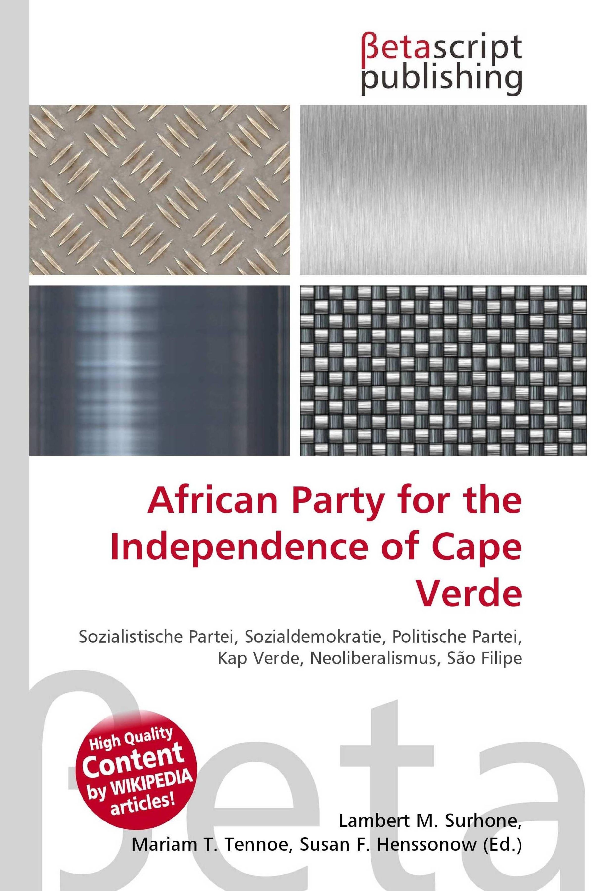 Text oben: "African Party for the Independence of Cape Verde". Oben vier Metalltextures, darunter ein rotes Siegel., Buch