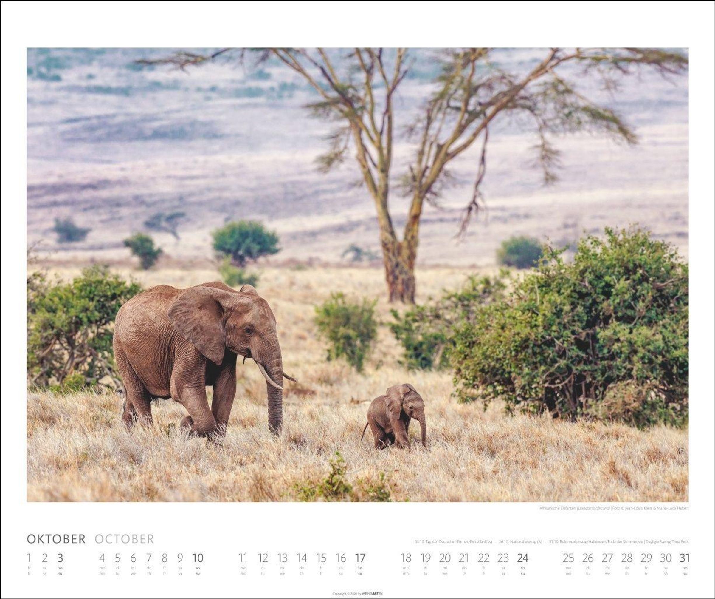 Sanfte Dickhäuter, elegante Raubkatzen und die Weite der Savanne: Tierkalender 2027