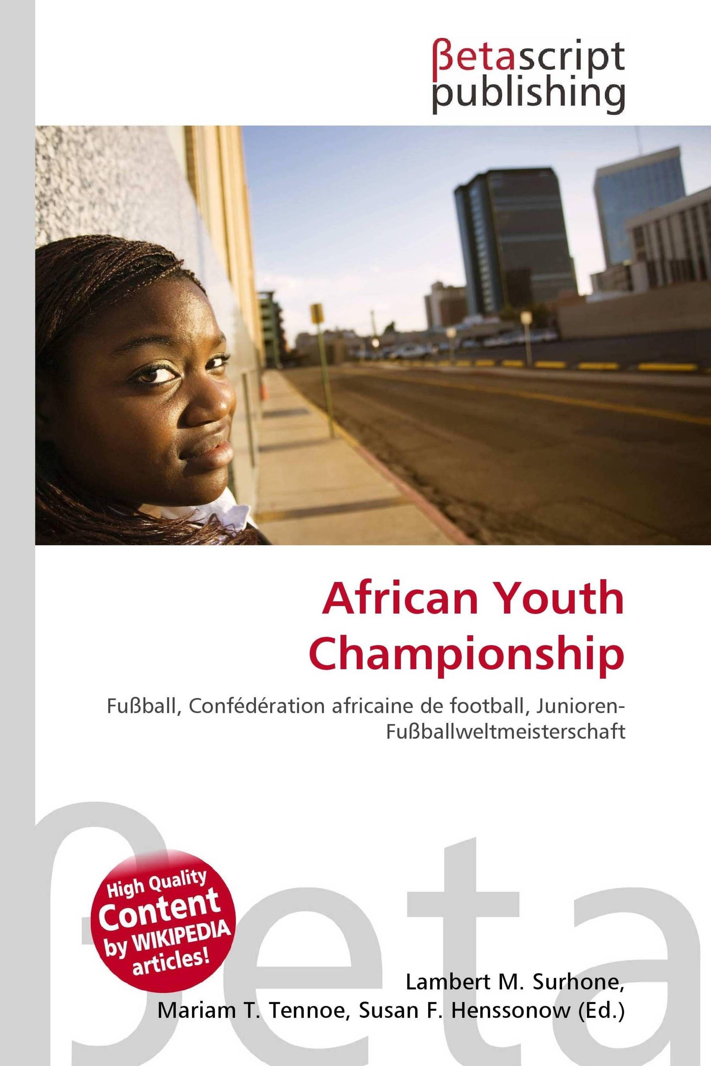 Text: "African Youth Championship". Eine Person schaut über die Schulter. Logos und Text in Rot und Schwarz., Buch