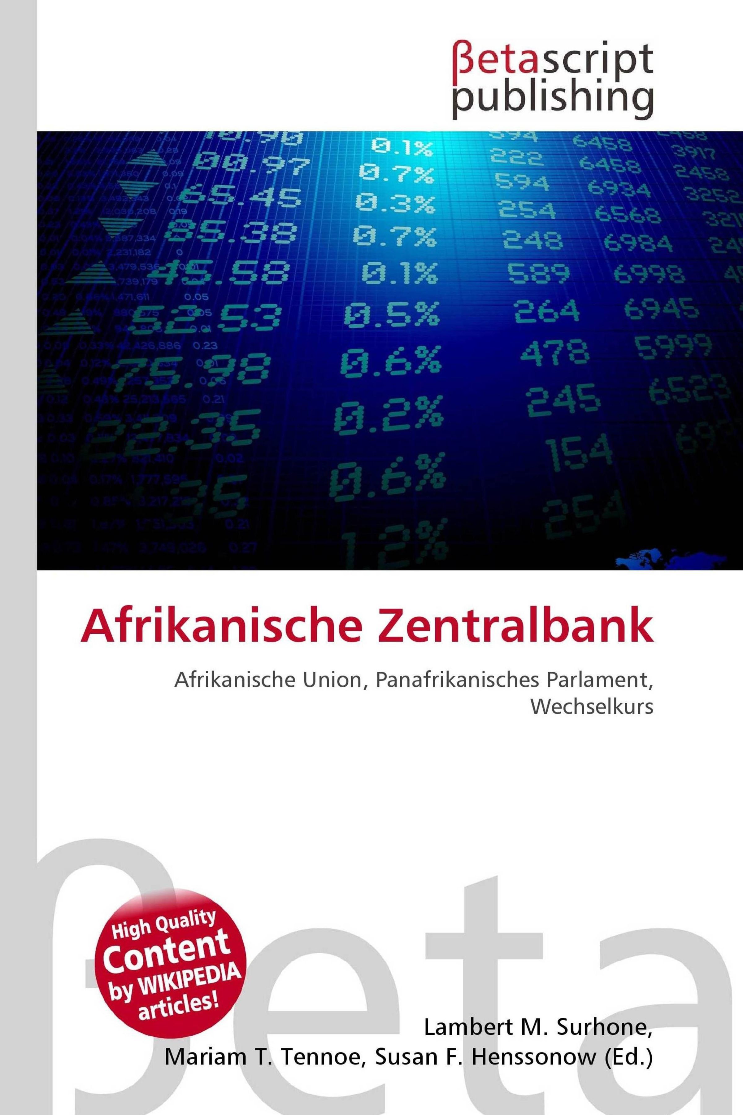 Please note that the content of this book primarily consists of articles available from Wikipedia or other free sources online. Die Afrikanische Zentralbank (AZB) ist eine der drei Finanz-Institutionen der Afrikanischen Union. Sie wird im Laufe der Zeit die Verantwortung des Afrikanischen Währungsfonds übernehmen. Die Schaffung der Afrikanischen Zentralbank, die erst 2028 vollendet sein wird, wurde 1991 im Abuja-Vertrag vereinbart. Die Sirte Declaration von 1999 spricht sich für eine Beschleunigung dieses Prozesses mit der Schaffung bis zum Jahr 2020 aus.