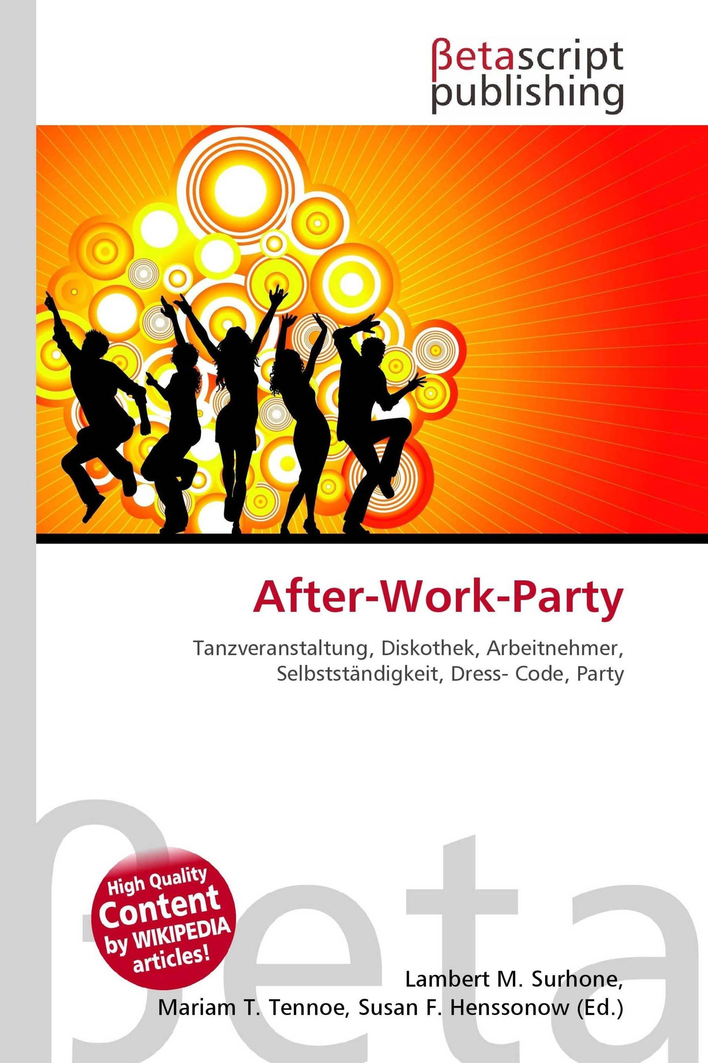 Please note that the content of this book primarily consists of articles available from Wikipedia or other free sources online. Eine After-Work-Party (After Business Club) ist eine offene gesellschaftliche (Tanz)-Veranstaltung an Werktagen, die seit den 1990er Jahren von vielen Diskotheken an Tagen zwischen Montag und Freitag angeboten wird. After-Work-Partys wenden sich an die Zielgruppe der jungen Arbeitnehmer und Selbstständigen in "modernen" Branchen wie Beratung, Werbung oder Medien und suggerieren so allen Teilnehmern auch aus anderen Branchen, selbst modern und dynamisch zu sein. Dress-Code der Party-Gänger ist daher in der Regel legere Geschäftskleidung. In der Zielgruppe bestehen wenig feste soziale Bindungen, insbesondere kaum familiäre Verpflichtungen nach dem Arbeitstag. Der Abend wird daher meist in der Öffentlichkeit verbracht, andererseits wird morgens ein pünktliches Erscheinen am Arbeitsplatz erwartet. Da klassische Partys meist erst gegen 22 oder 23 Uhr beginnen, füllen die After-Work-Partys mit einem Beginn zwischen 18 und 20 Uhr diese Lücke im Veranstaltungsangebot.