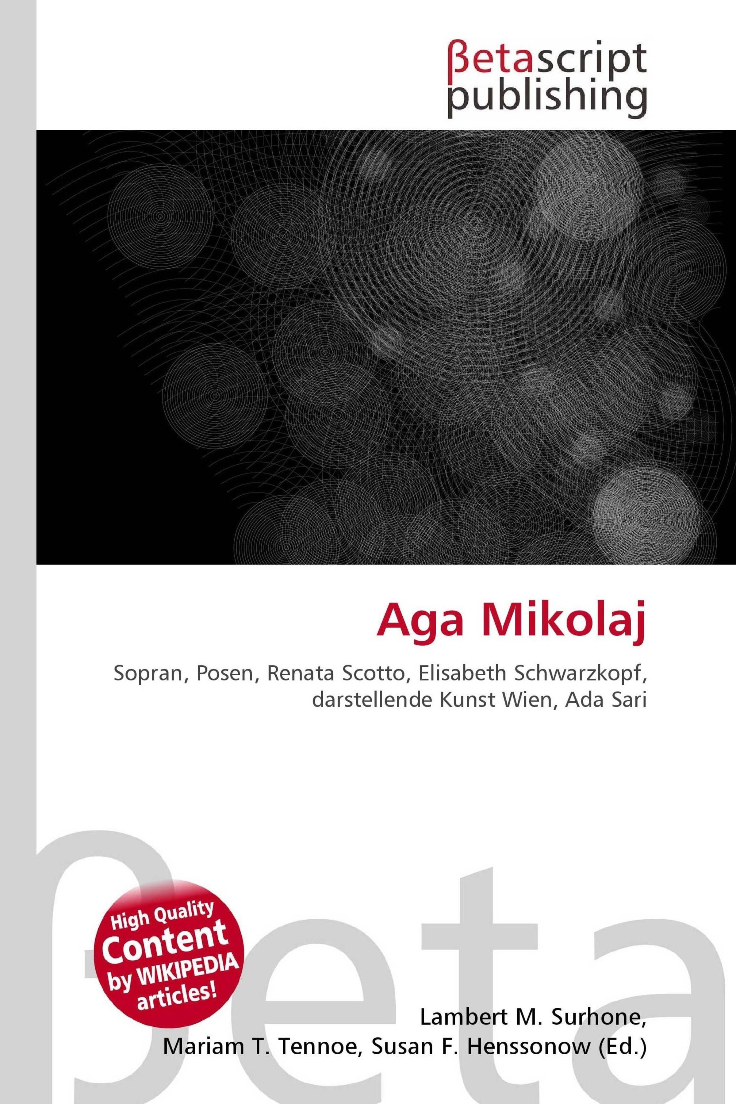 Please note that the content of this book primarily consists of articles available from Wikipedia or other free sources online. Aga Mikolaj (* 20. Jahrhundert in Kutno, Polen, als Agnieszka Beata Miköajczyk) ist eine auf internationalen Opern- und Konzertbühnen gastierende Opernsängerin (Sopran). Aga Mikolaj studierte von 1990 bis 1996 an der Musikakademie in Posen bei Prof. Antonina Kawecka. Während ihres Studiums erhielt Aga Mikolaj ein Stipendium der Universität für Musik und darstellende Kunst Wien. 1997 nahm Aga Mikolaj an Meisterklassen von Renata Scotto und 2001 von Dame Elisabeth Schwarzkopf teil, mit der sie bis zu deren Lebensende im Jahre 2006 alle ihre Rollen überarbeitete.