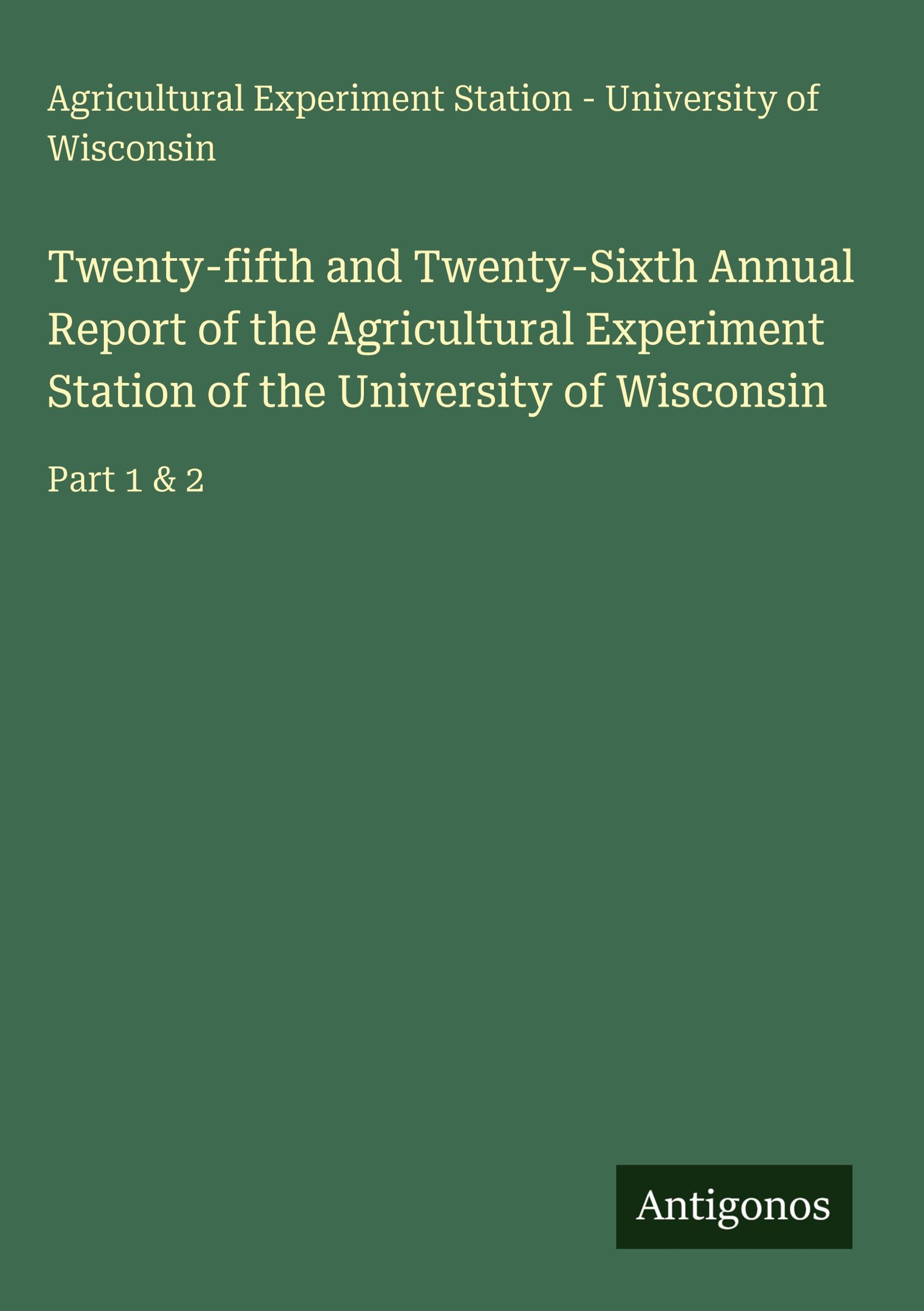 Agricultural Experiment Station - University of Wisconsin: Twenty-fifth and Twenty-Sixth Annual Report of the..., Gebunden