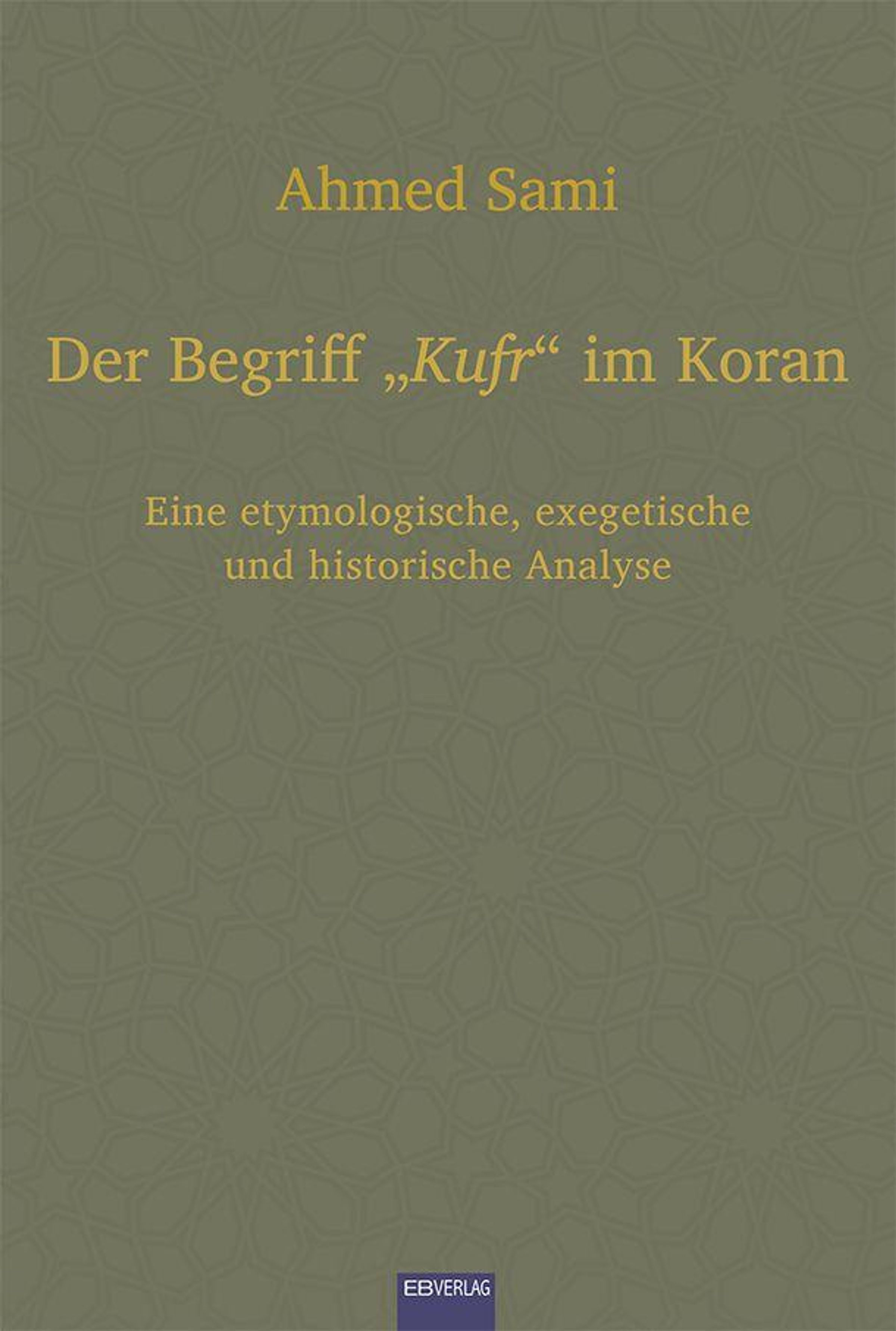 Titel: "Der Begriff 'Kufr' im Koran". Untertitel: "Eine etymologische, exegetische und historische Analyse" von Ahmed Sami. Hintergrund geometrisch gemustert. Logo: EBVERLAG., Buch