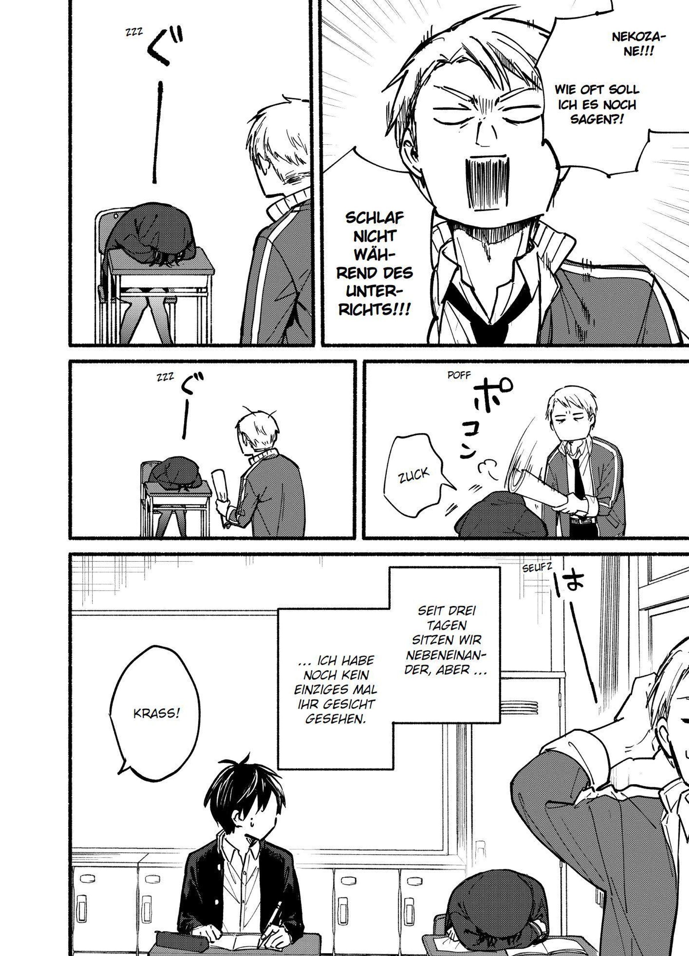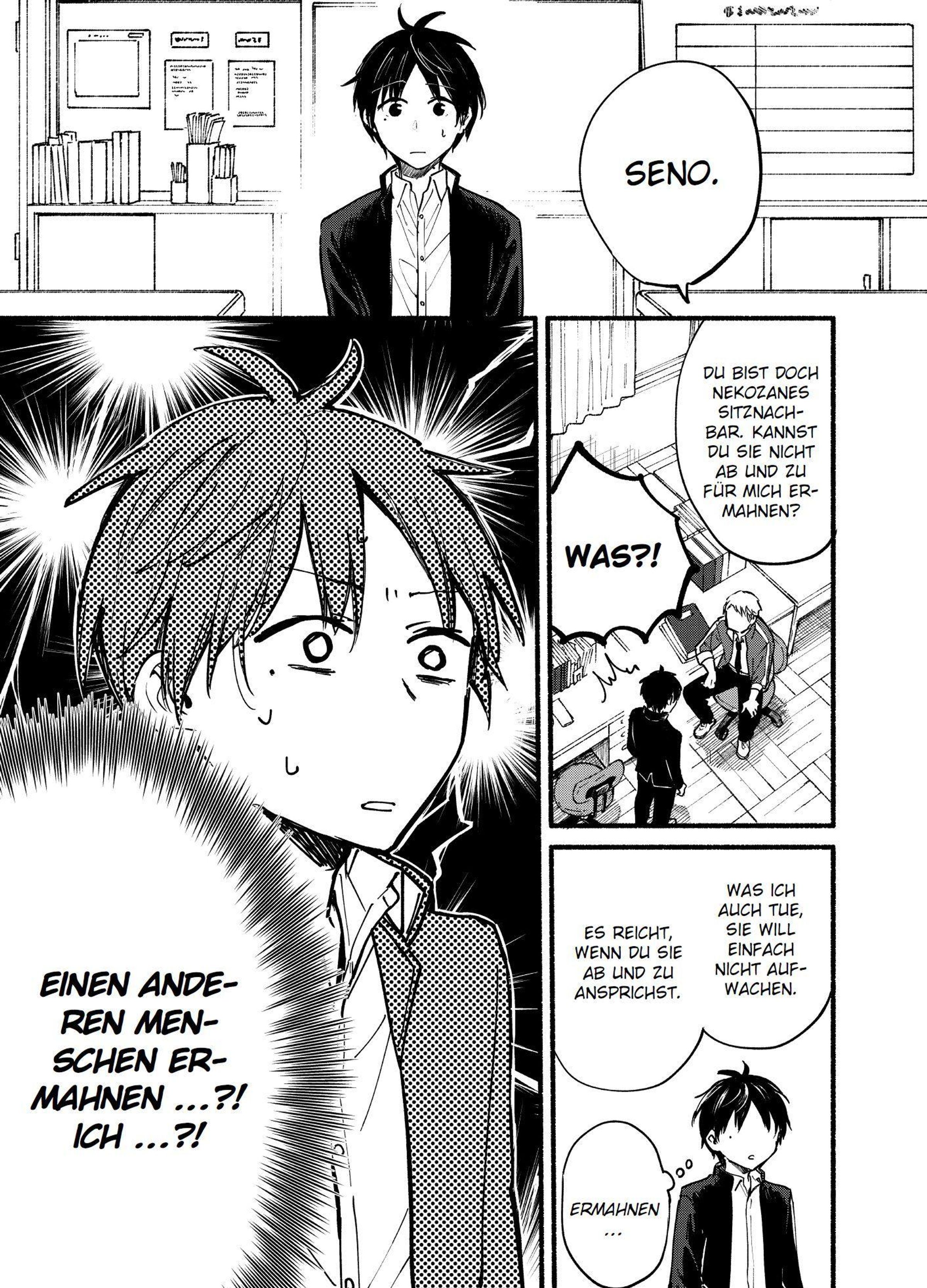 Minato Seno steht ganz am Anfang seiner Highschool-Zeit, als ihn sein Klassenlehrer um einen ungewöhnlichen Gefallen bittet: Er soll sich um seine katzenhafte Sitznachbarin Nekozane kümmern, die ständig schläft. Schüchtern und sozial unsicher hat Minato bisher weder mit ihr gesprochen noch ihr Gesicht richtig gesehen. Doch als er sich endlich traut, sie zu wecken, passiert das Unerwartete: Nekozane umarmt ihn einfach spontan!
