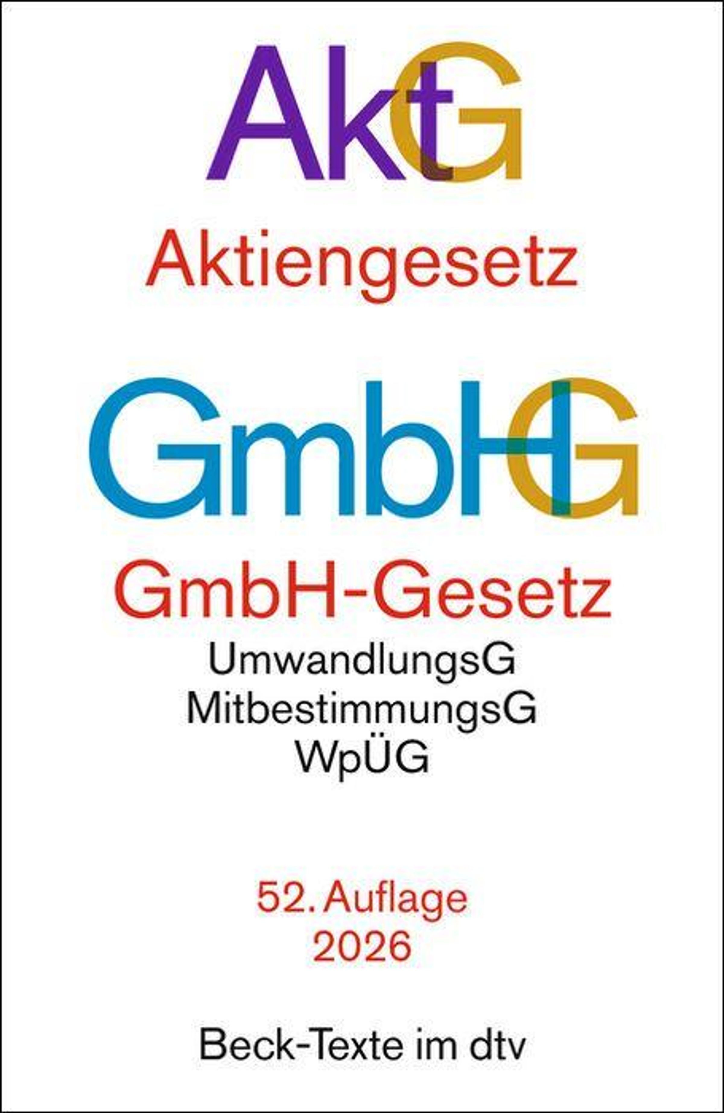 AktG, Aktiengesetz, GmbHG, GmbH-Gesetz, UmwandlungsG, MitbestimmungsG, WpÜG, 52. Auflage 2026, Beck-Texte im dtv., Buch