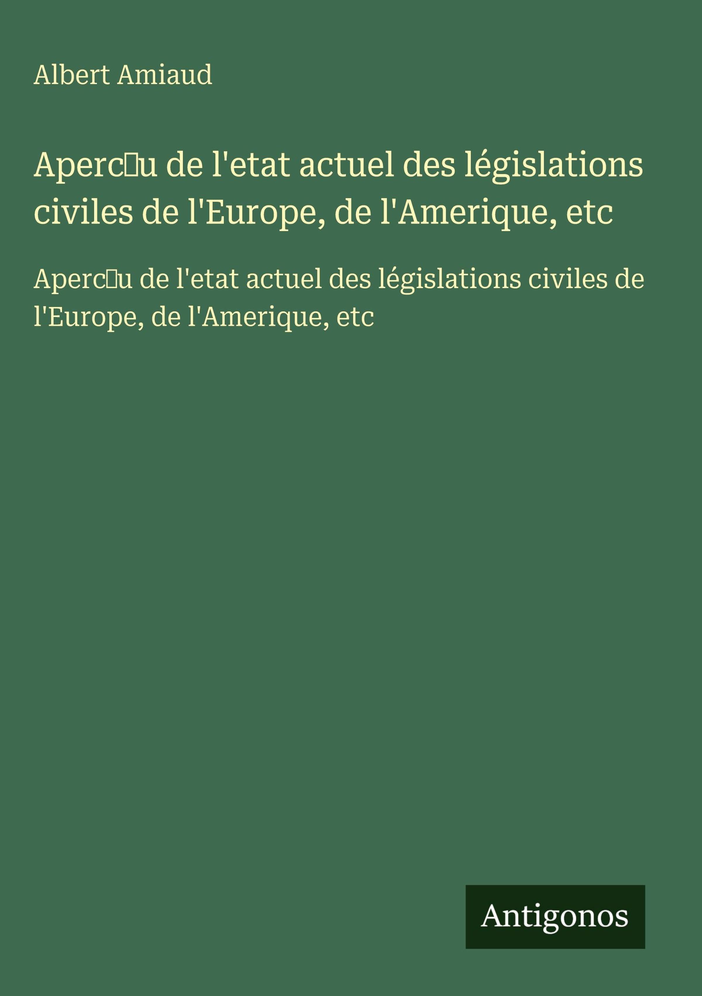 Albert Amiaud: Aperc¿u de l'etat actuel des législations civiles de l'Europe, de l'Amerique, etc, Gebunden