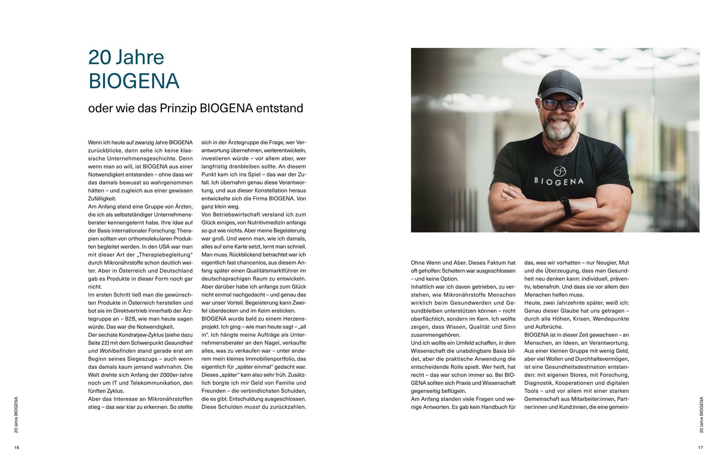 "Albert Schmidbauer. Wir haben nie den einfachen Weg gewählt, sondern den richtigen. DAS PRINZIP BIOGENA. Logo 20 BIOGENA.", Buch