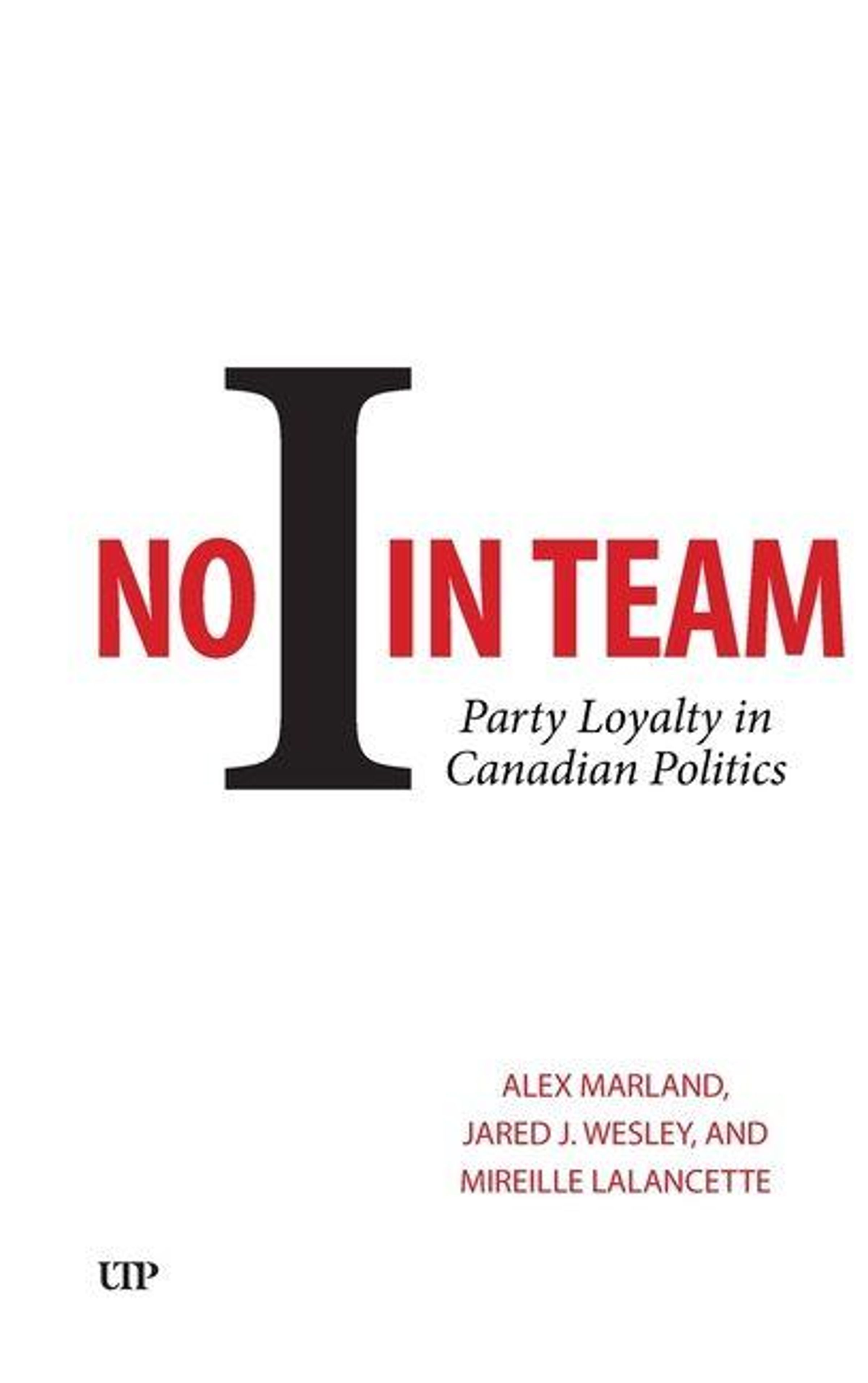 No I in Team: Party Loyalty in Canadian Politics by political scientists Alex Marland, Jared J. Wesley, and Mireille Lalancette provides the first in-depth examination of the forces shaping party loyalty in Canadian politics, revealing how Members of Parliament and provincial legislators are conditioned to prioritize partisan interests over constituents and independent judgment. The authors show how institutional rules, political pressure, social dynamics, and digital technologies reinforce a system demanding unwavering loyalty. Drawing on extensive interviews with politicians and senior staff, plus analyses of thousands of news stories spanning four decades, this book traces how party discipline evolved into message discipline, where control over speech is as strict as control over votes.