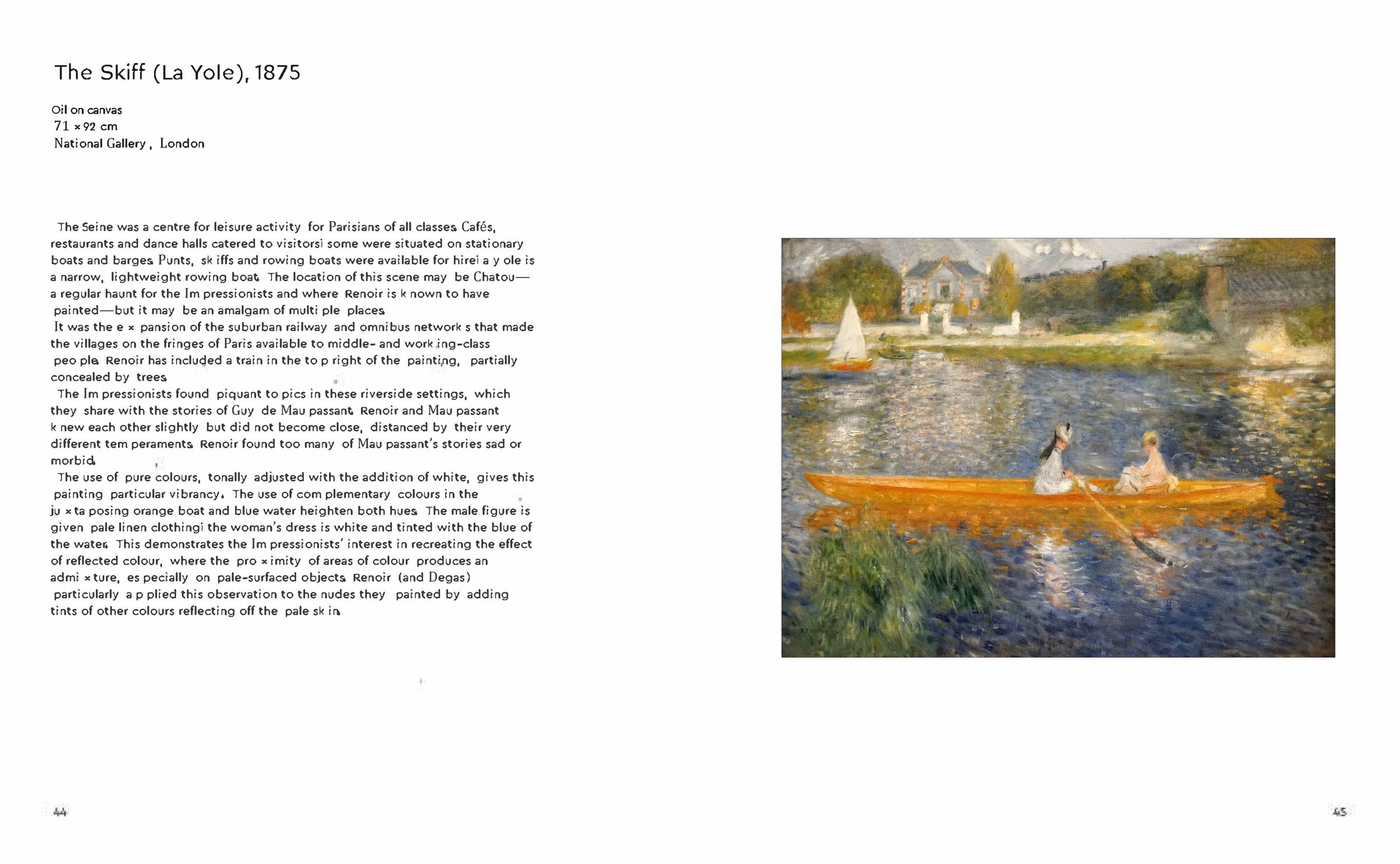 Elegantly produced and inviting to browse, the book presents a vibrant sequence of Renoir's most important works, offering an engaging point of entry into one of Impressionism's defining careers. His art thrives on warmth, atmosphere, and the physical presence of people in motion, and these pages trace how he transformed fleeting sensation into a language of color, touch, and light that reshaped modern painting. Fifty-five essential works chart the emergence of his vision and its evolution over time. Among the highlights are Boating on the Seine , Two Sisters , Dance at Bougival , and La Grenouillère, each accompanied by perceptive commentary that clarifies Renoir's evolving technique and the cultural forces shaping his subjects, from the rise of urban leisure to changing ideas of modernity, intimacy, and social display in 19th-century Paris.