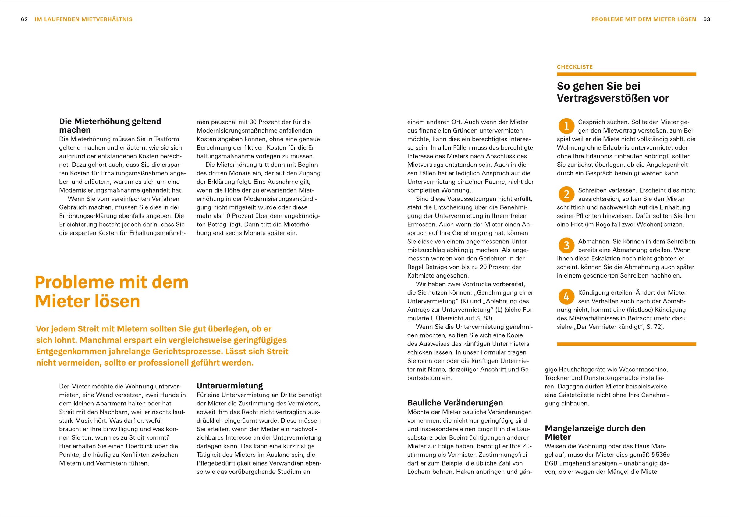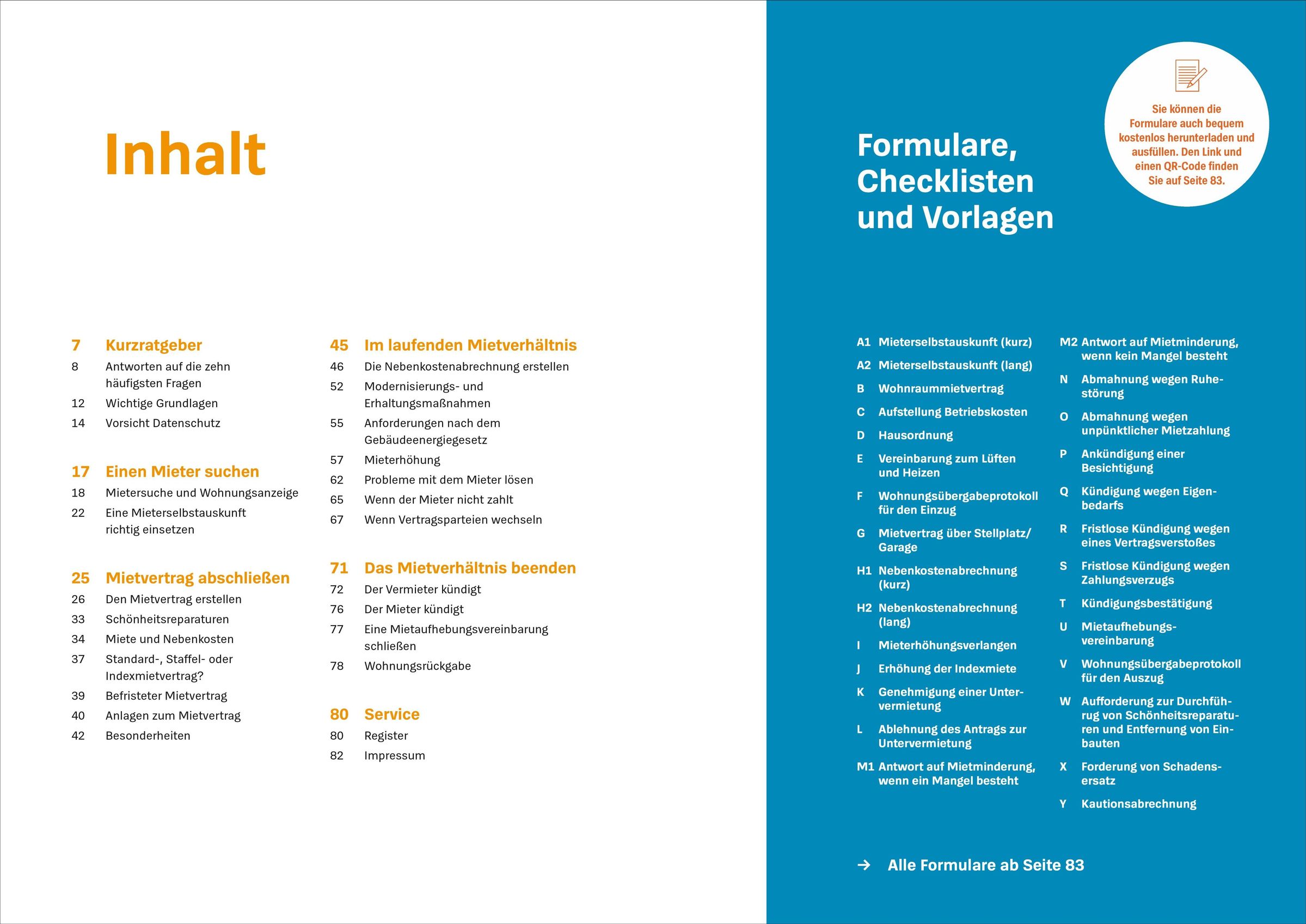 Von der Mietersuche bis zum Auszug wird alles einfach und übersichtlich erklärt. Das besonders Praktische: Alle benötigten Formulare sind direkt zum Heraustrennen und Ausfüllen enthalten - rechtsgültiger Mietvertrag, Übergabeprotokoll, Mieterselbstauskunft, Mahnschreiben und Kündigung. So steht man rechtlich auf der sicheren Seite, ohne sich durch juristische Feinheiten arbeiten zu müssen.