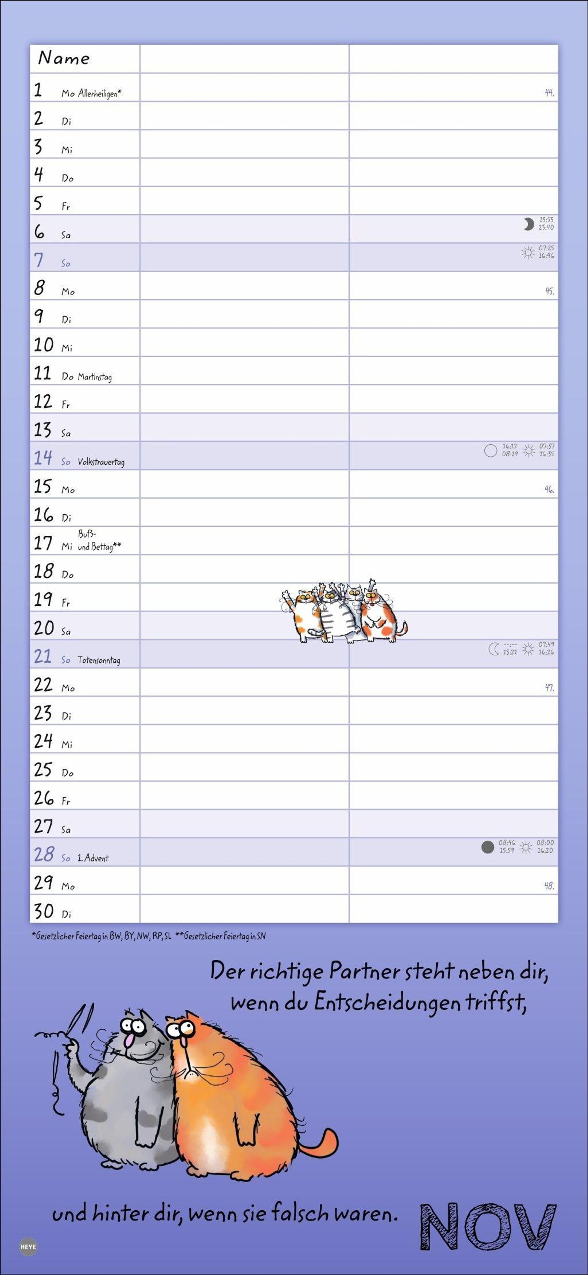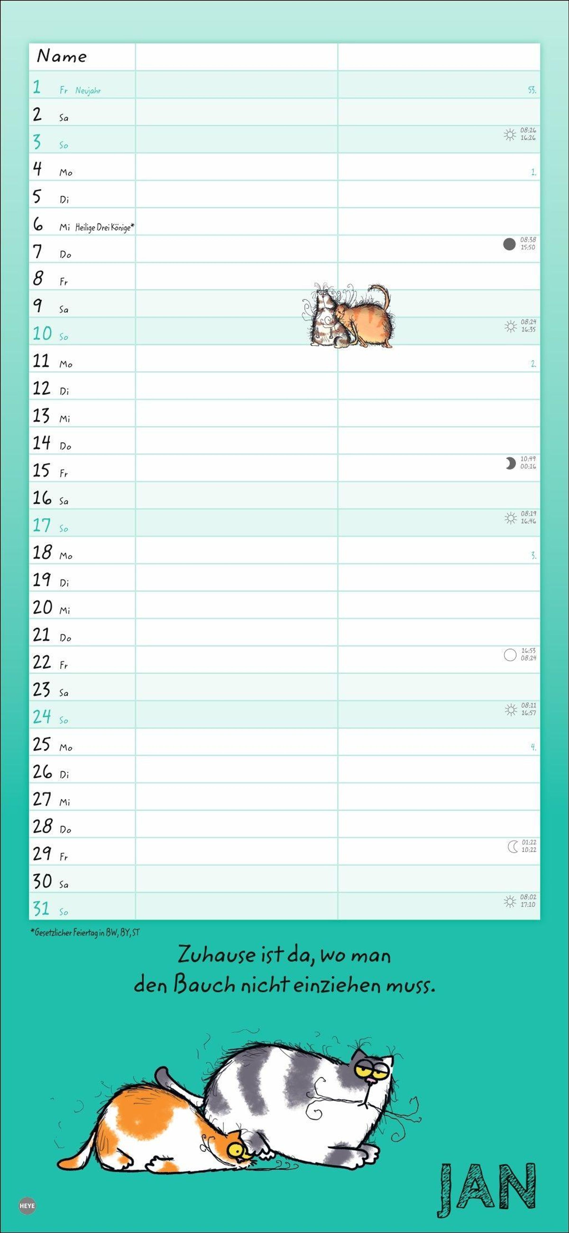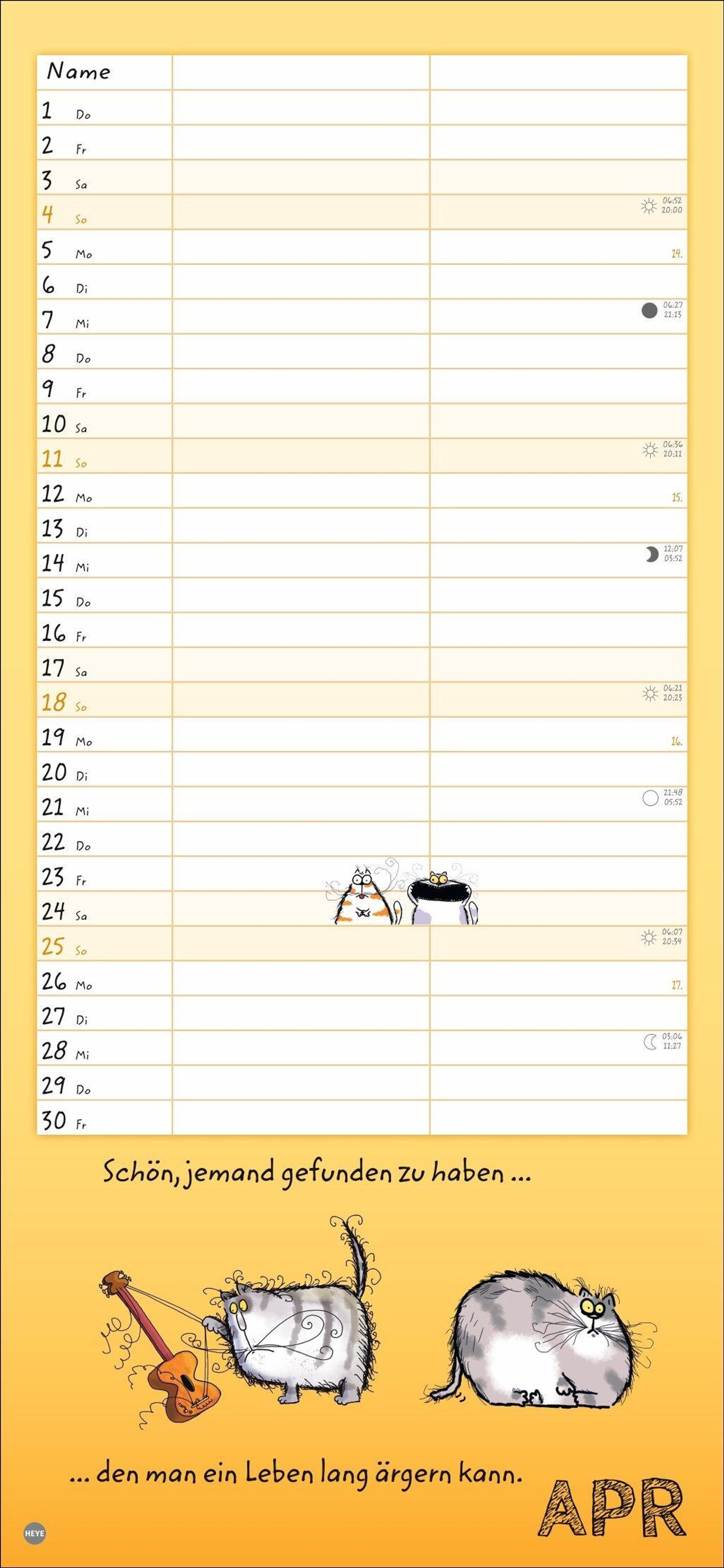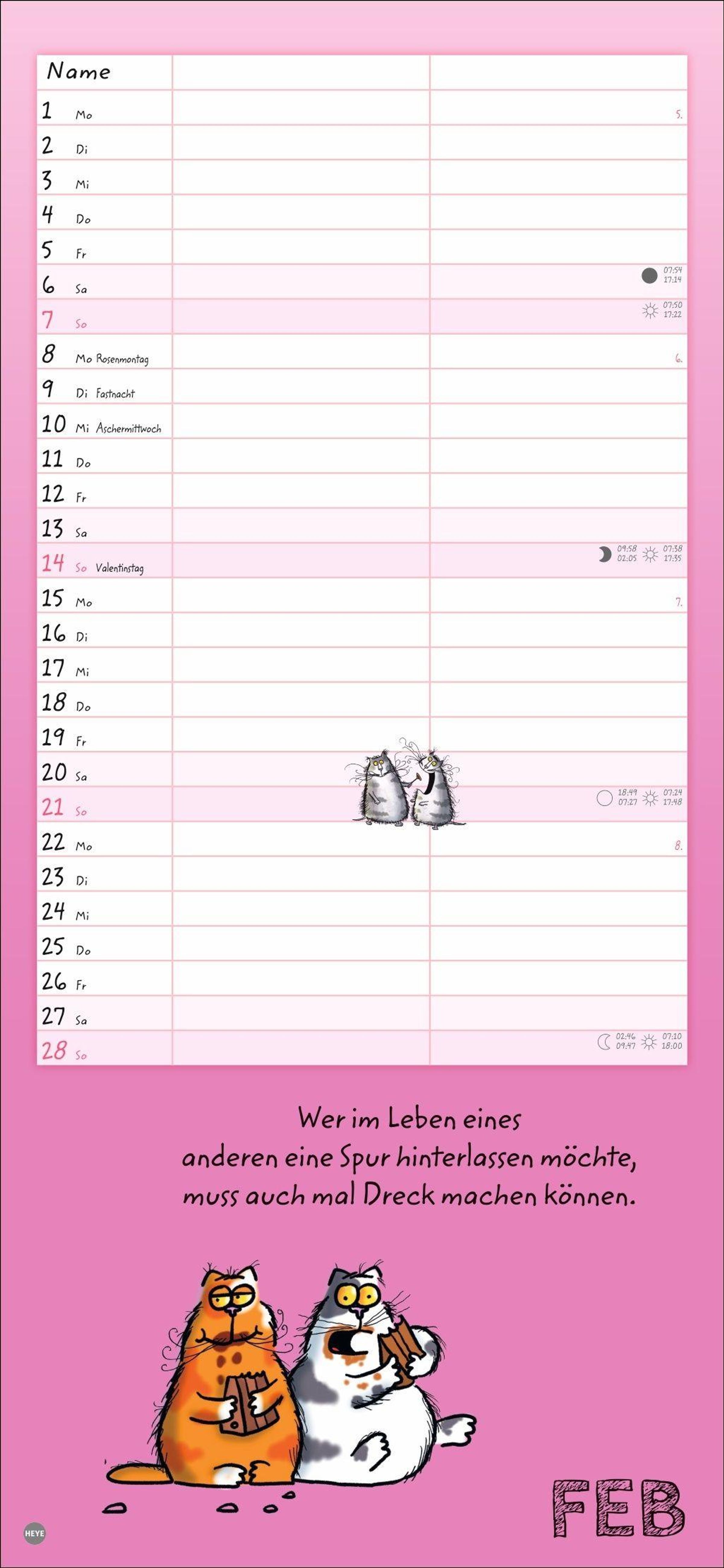 - Lustiger Wandplaner für zwei. Partnerkalender mit 2 Spalten. Terminkalender mit witzigen Cartoon-Katzen. Wandkalender für 2 Personen.