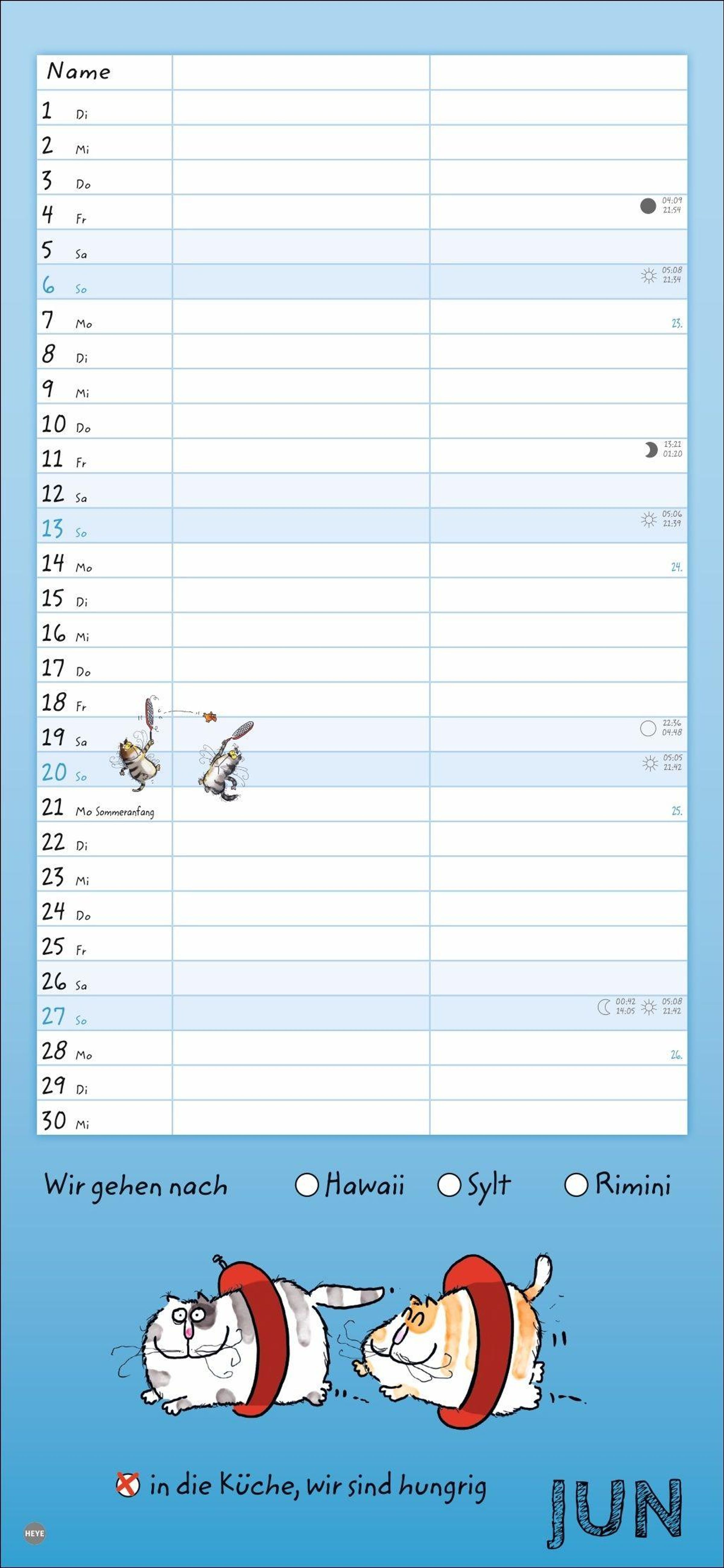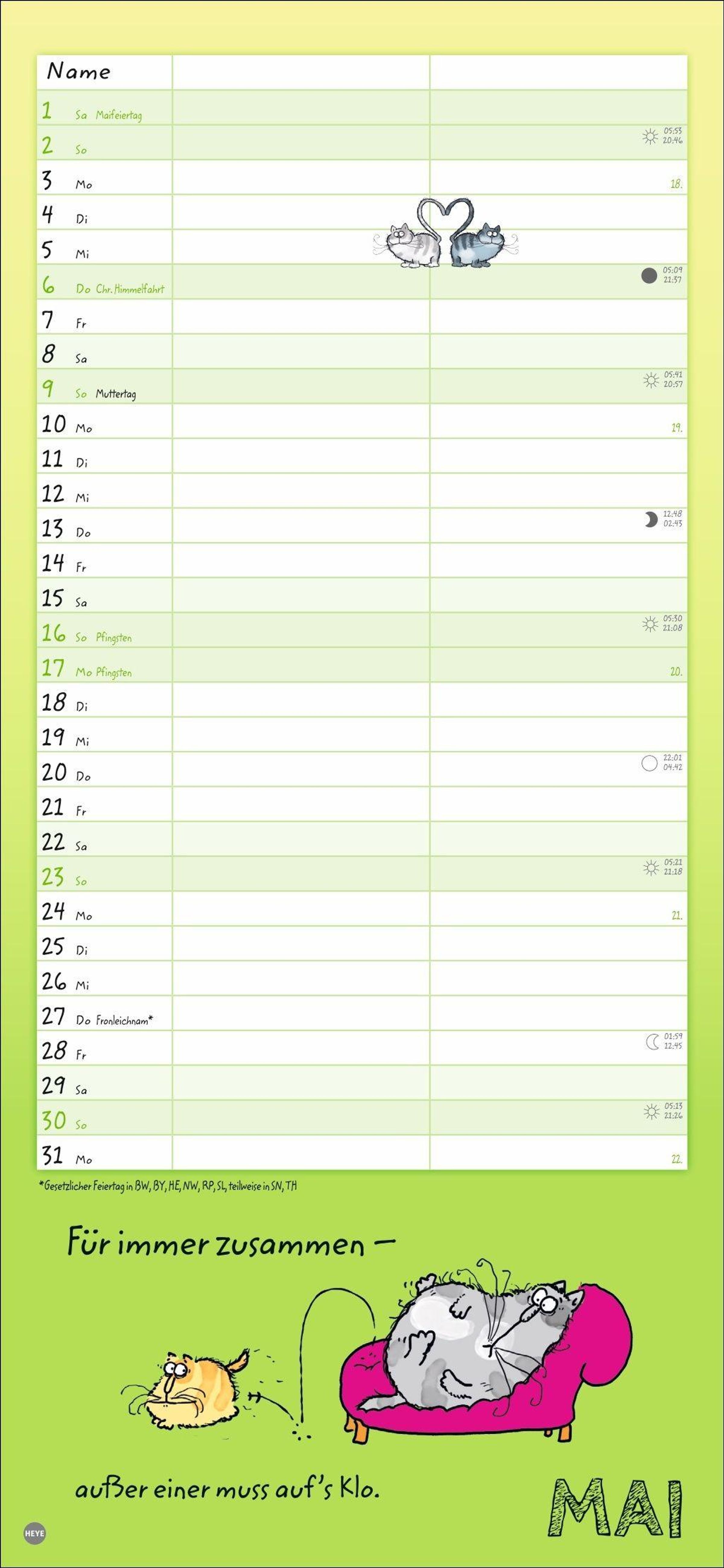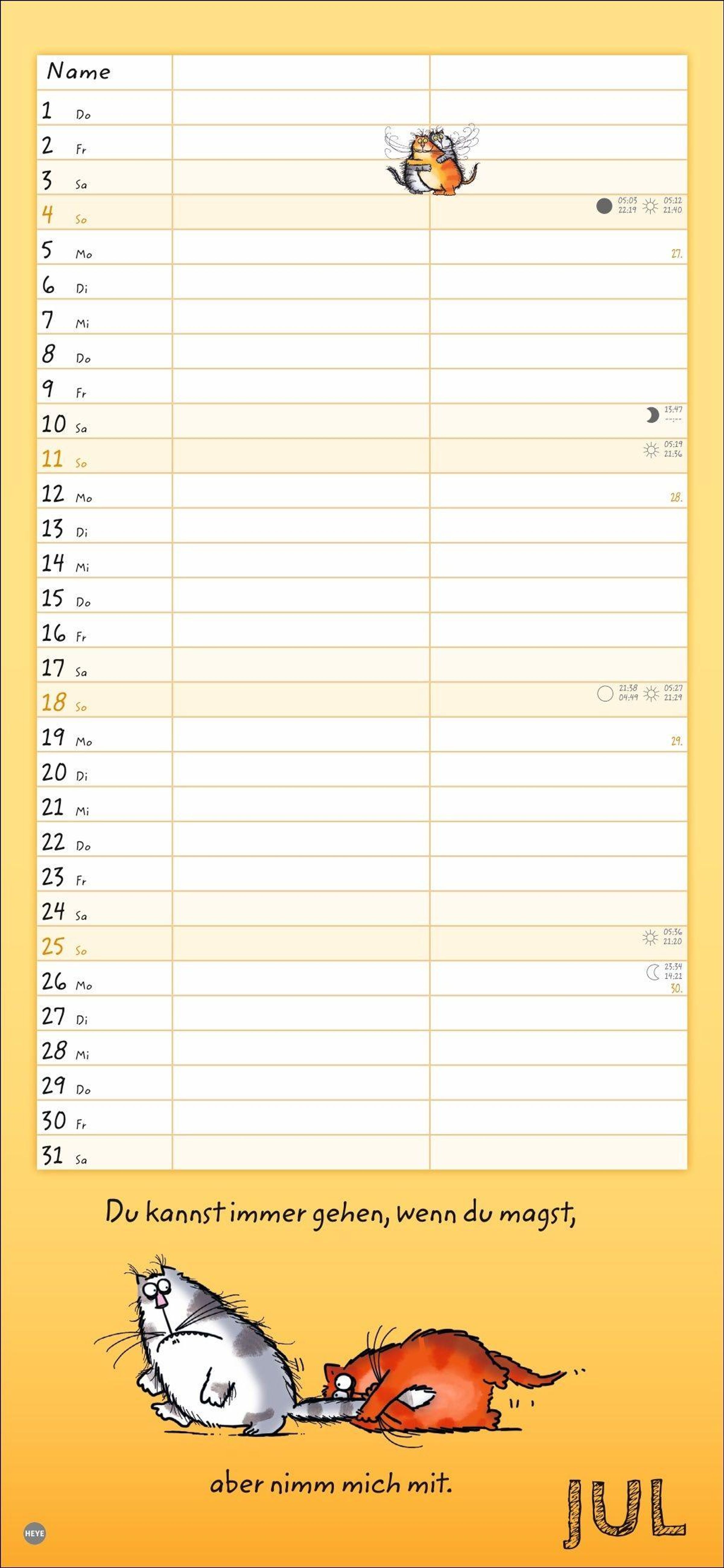 - Lustiger Wandplaner für zwei. Partnerkalender mit 2 Spalten. Terminkalender mit witzigen Cartoon-Katzen. Wandkalender für 2 Personen.