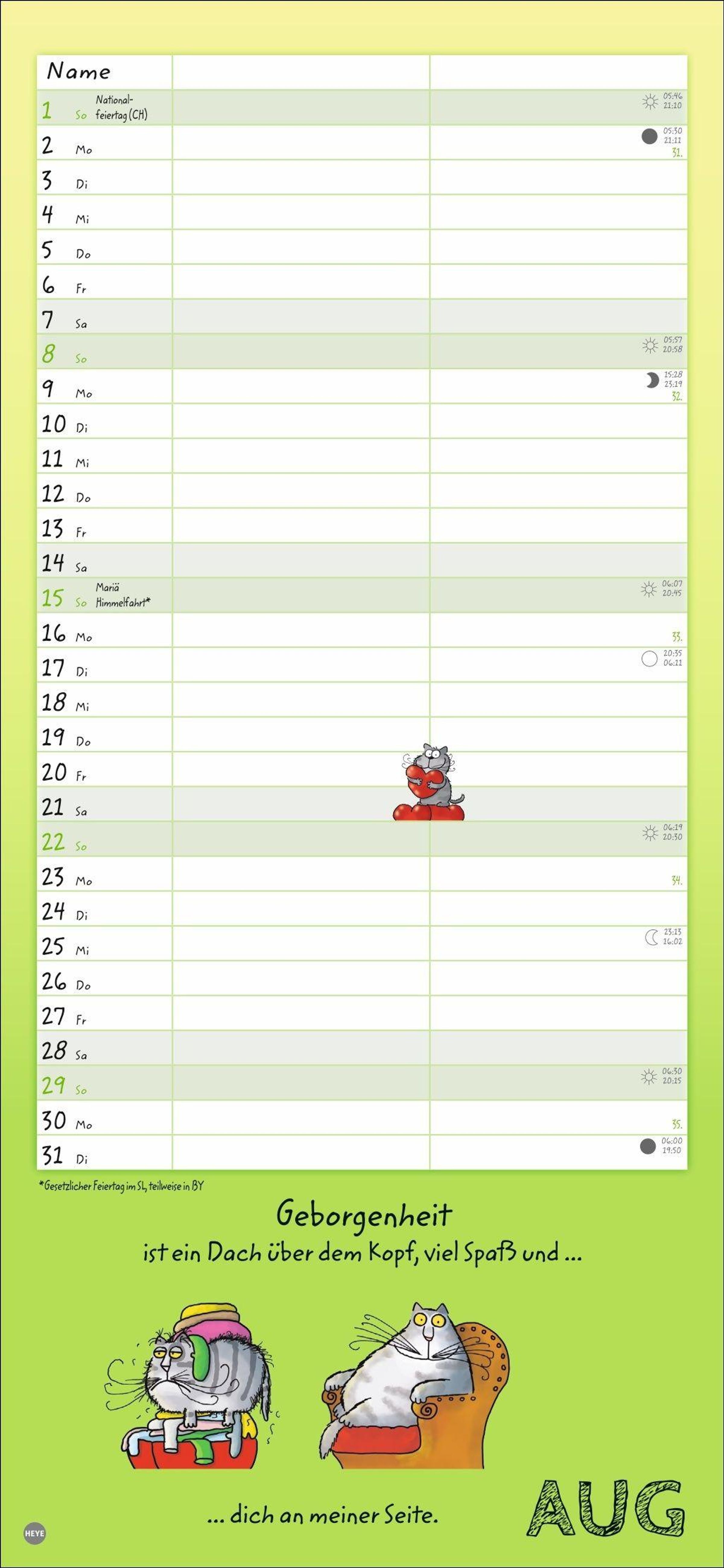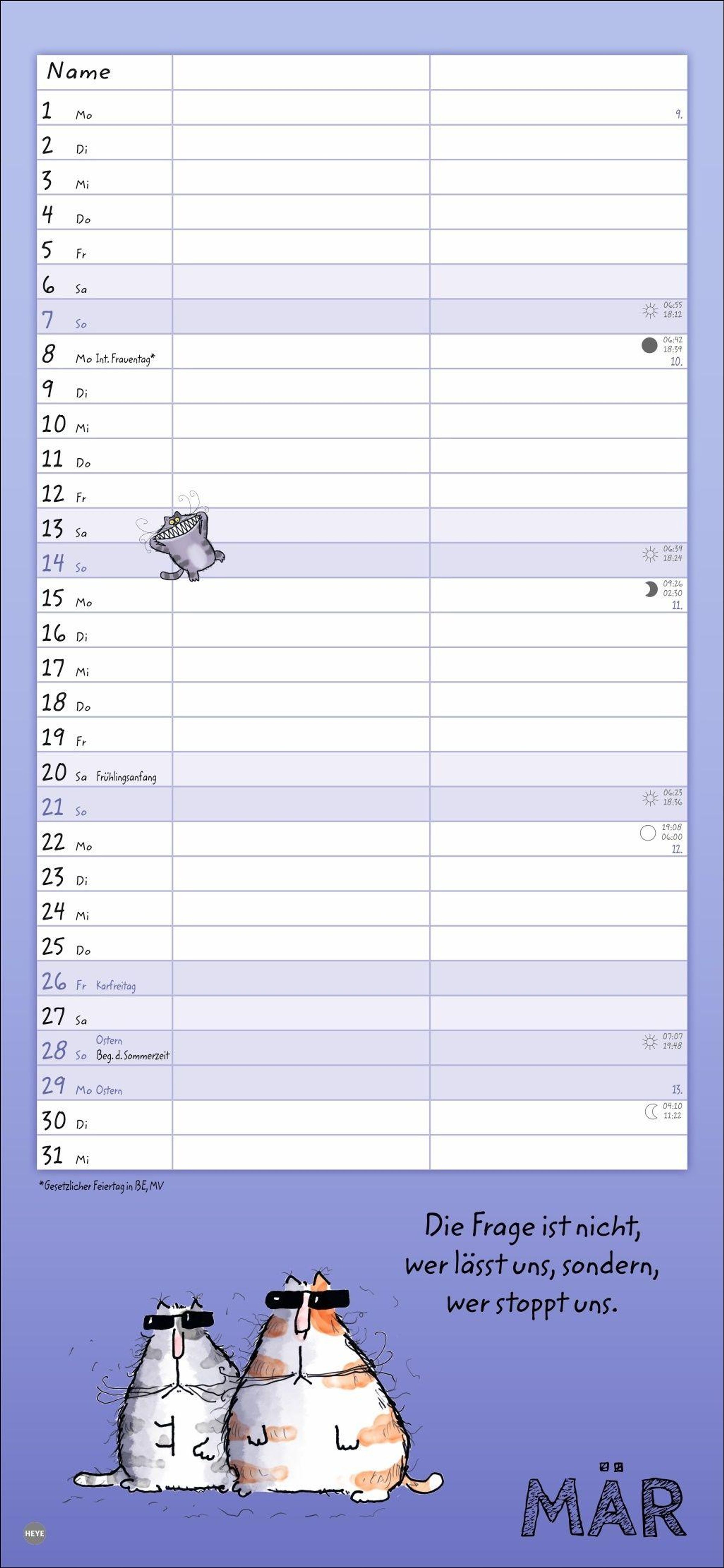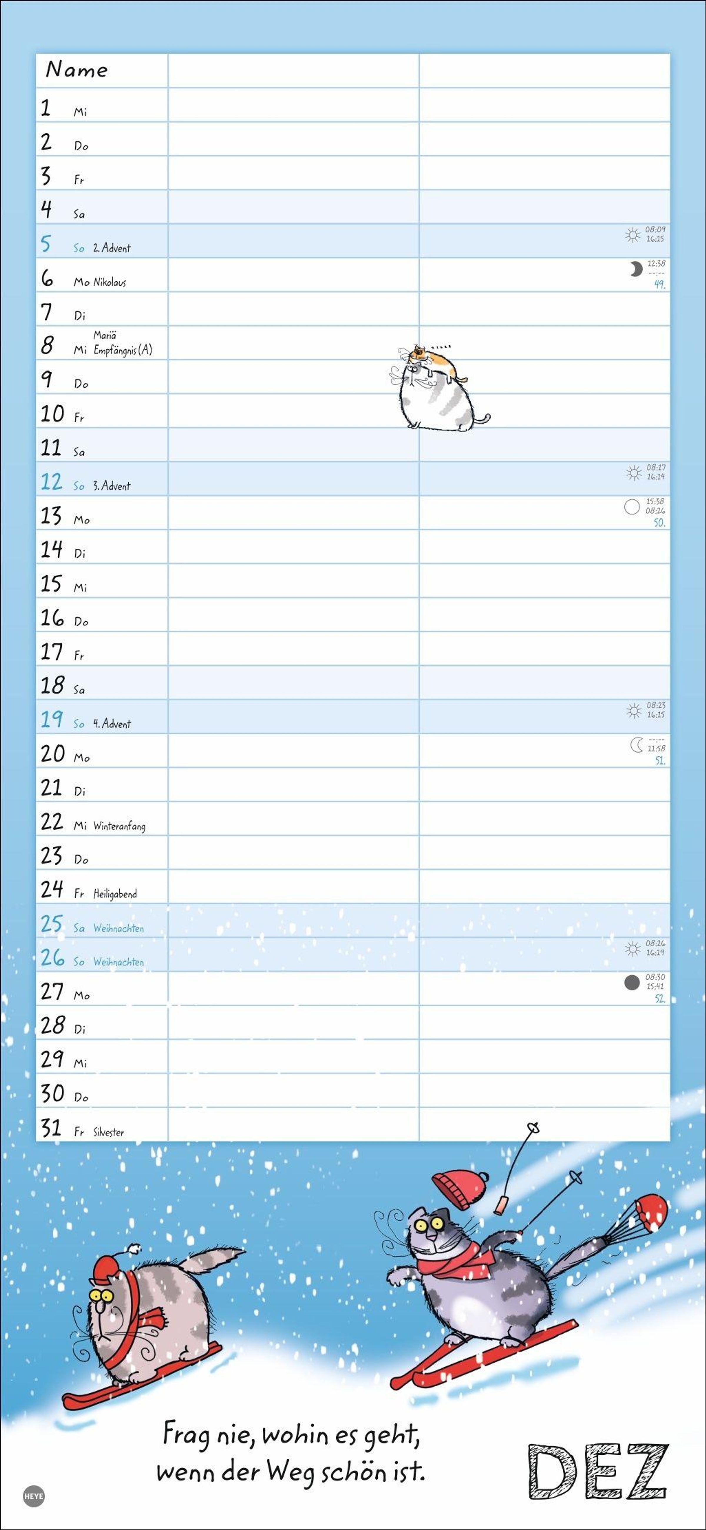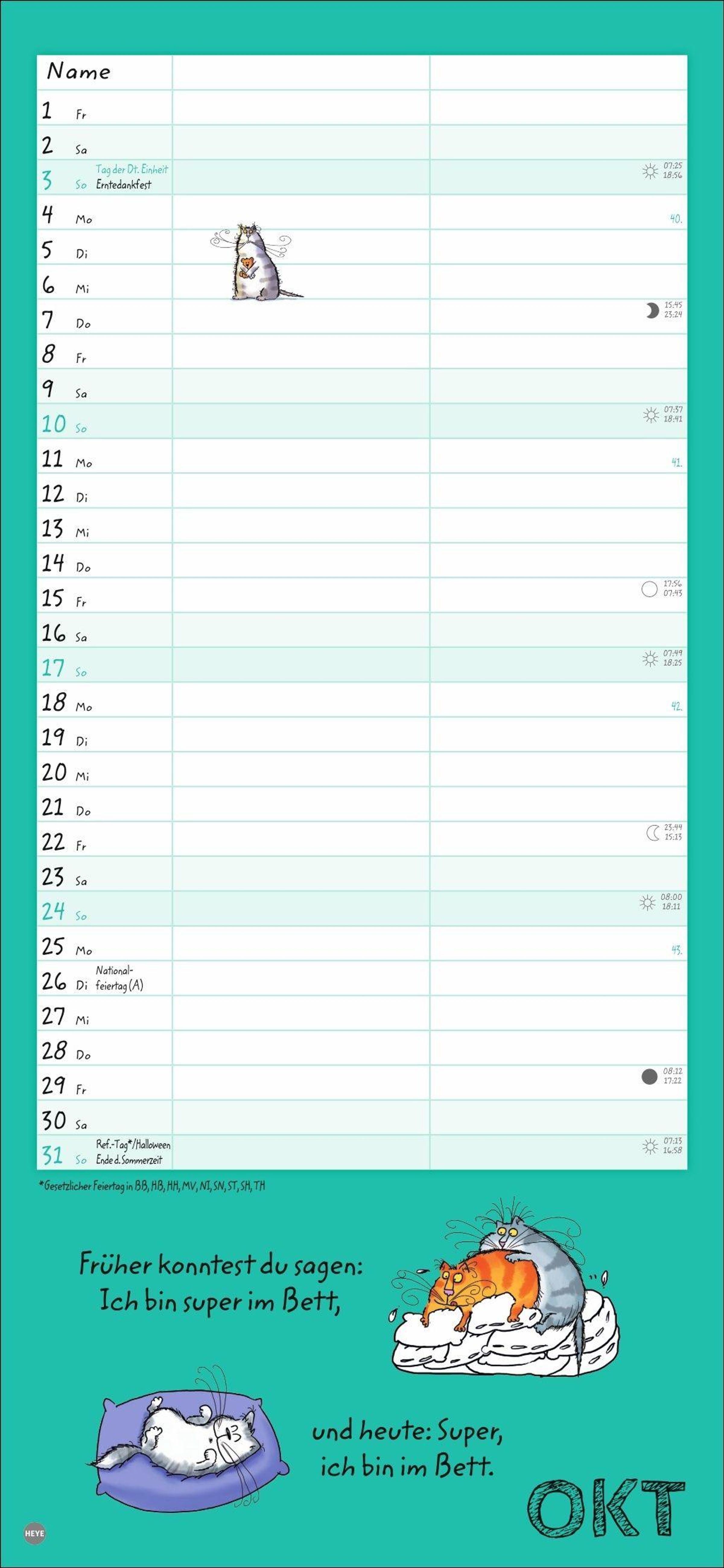 - Lustiger Wandplaner für zwei. Partnerkalender mit 2 Spalten. Terminkalender mit witzigen Cartoon-Katzen. Wandkalender für 2 Personen.