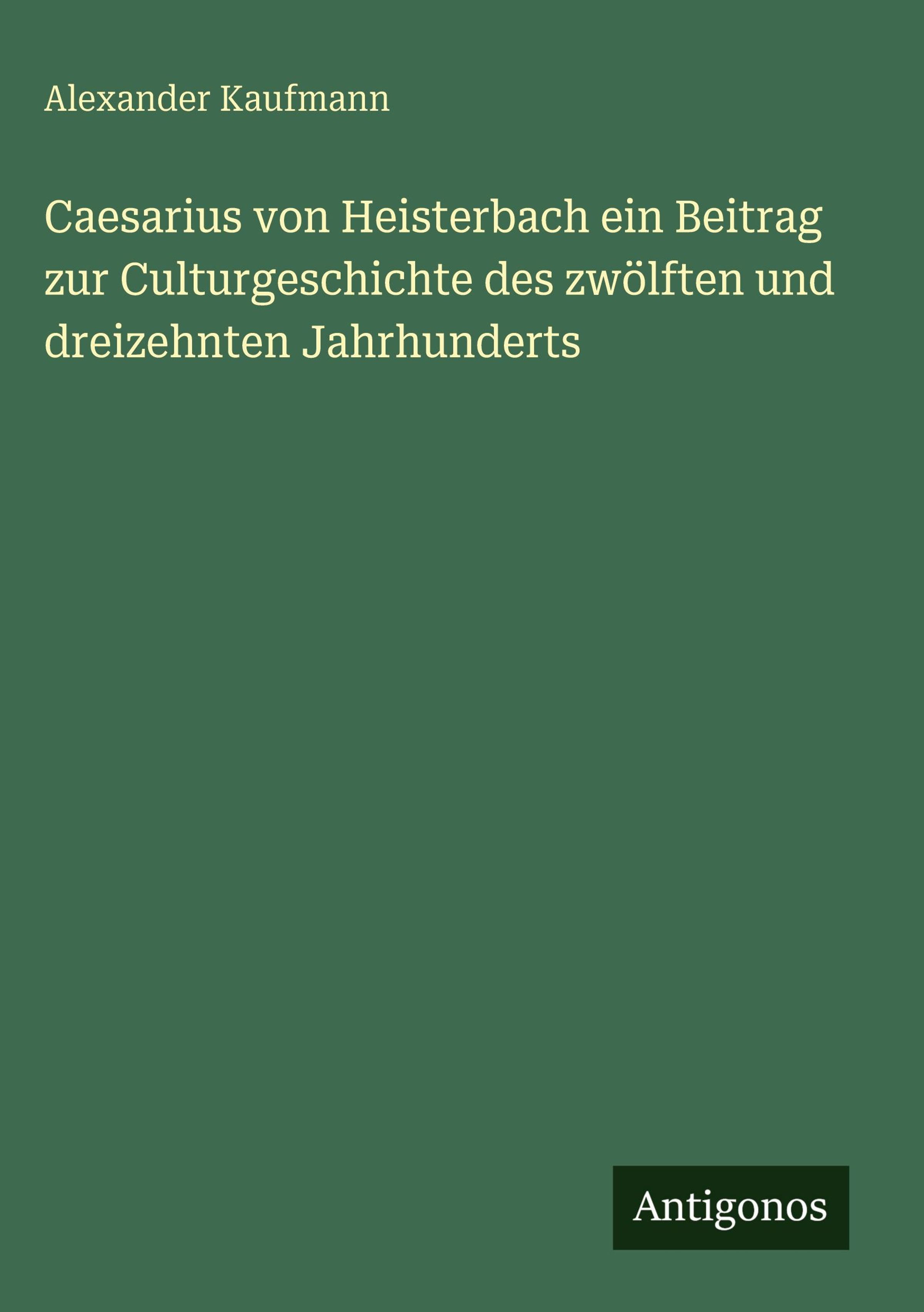 Alexander Kaufmann: Caesarius von Heisterbach ein Beitrag zur Culturgeschichte des zwölften und dreizehnten..., Gebunden
