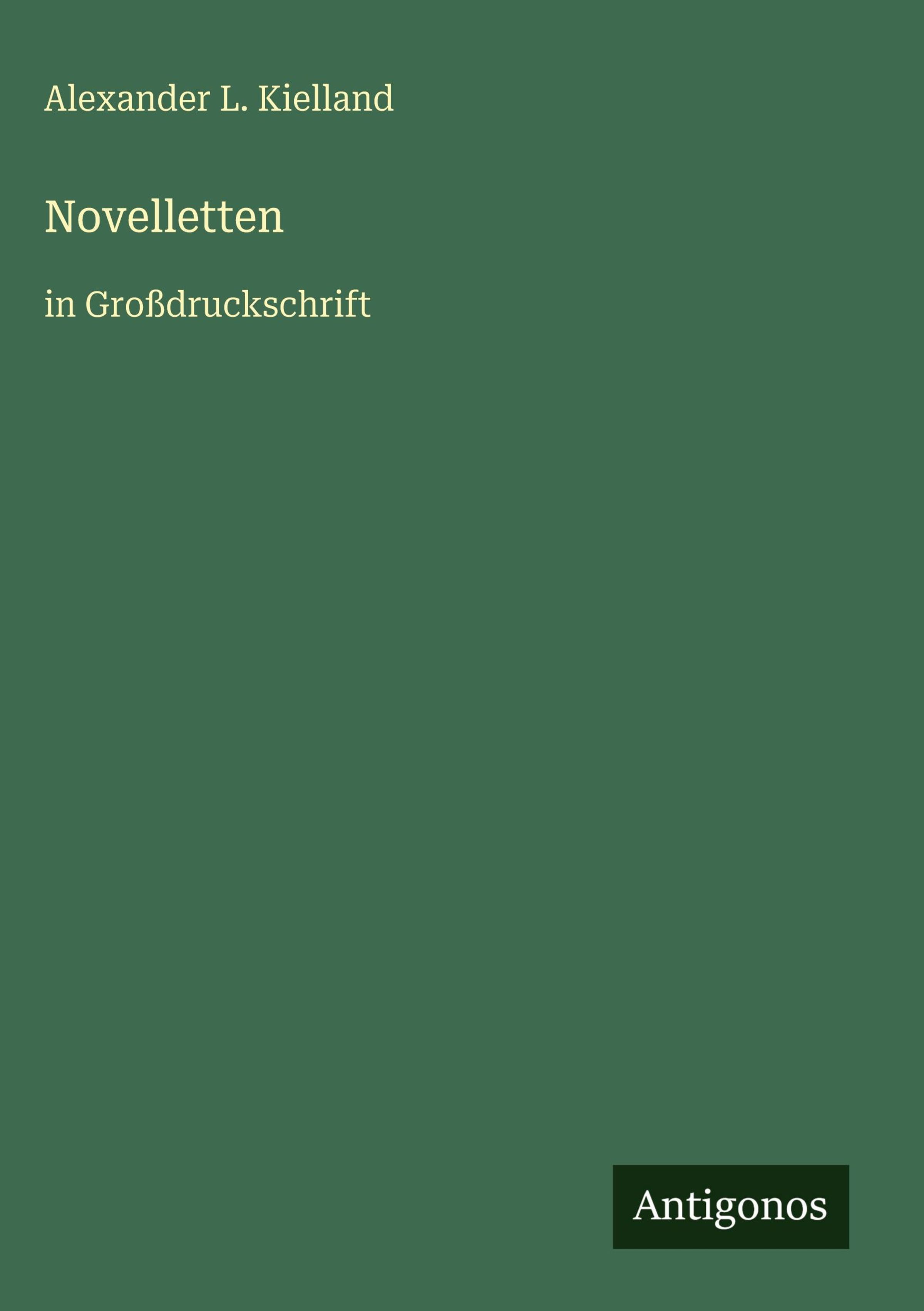 Alexander L. Kielland, Novelletten, in Großdruckschrift. Grüner Hintergrund, unten rechts Logo: Antigonos., Buch