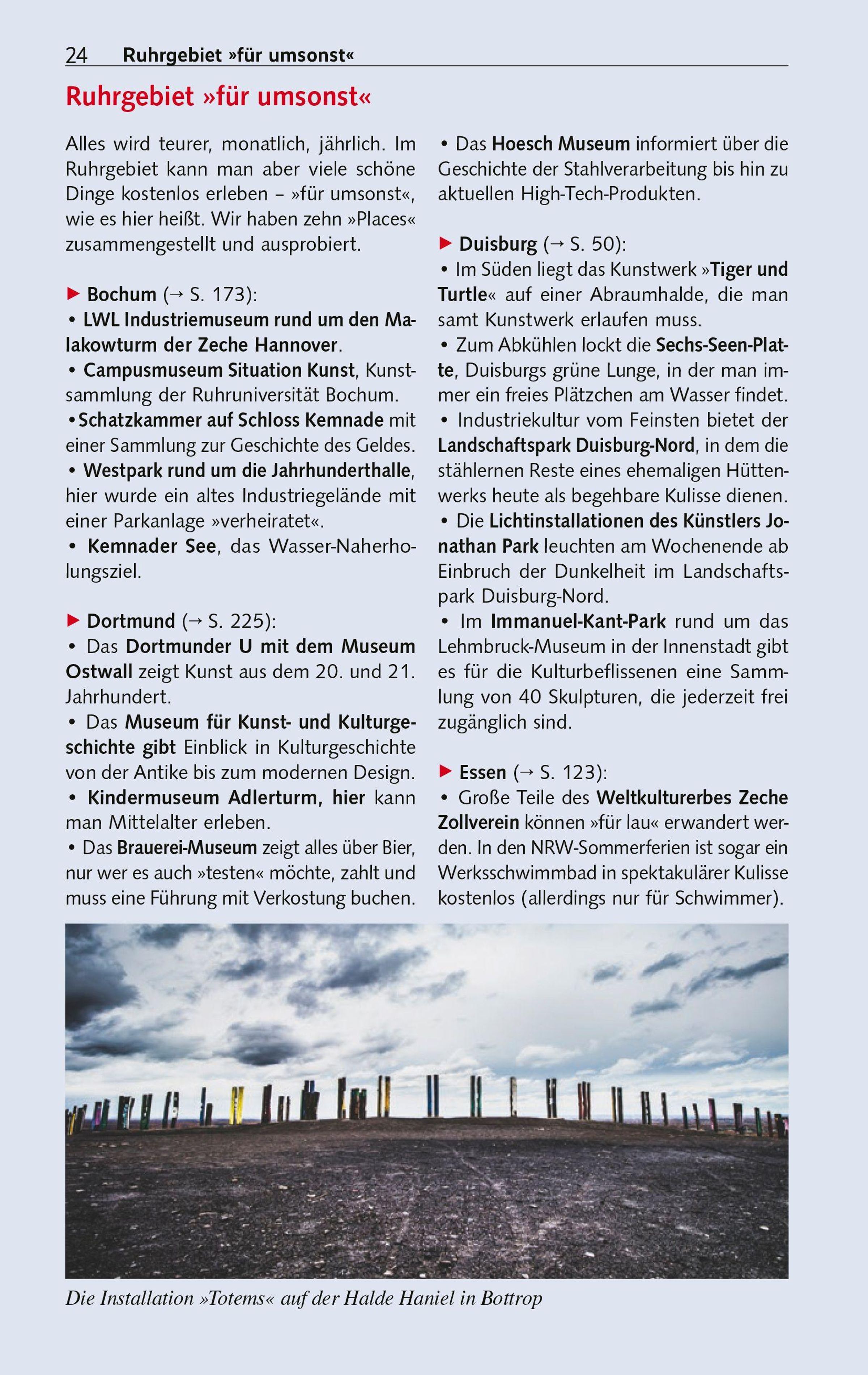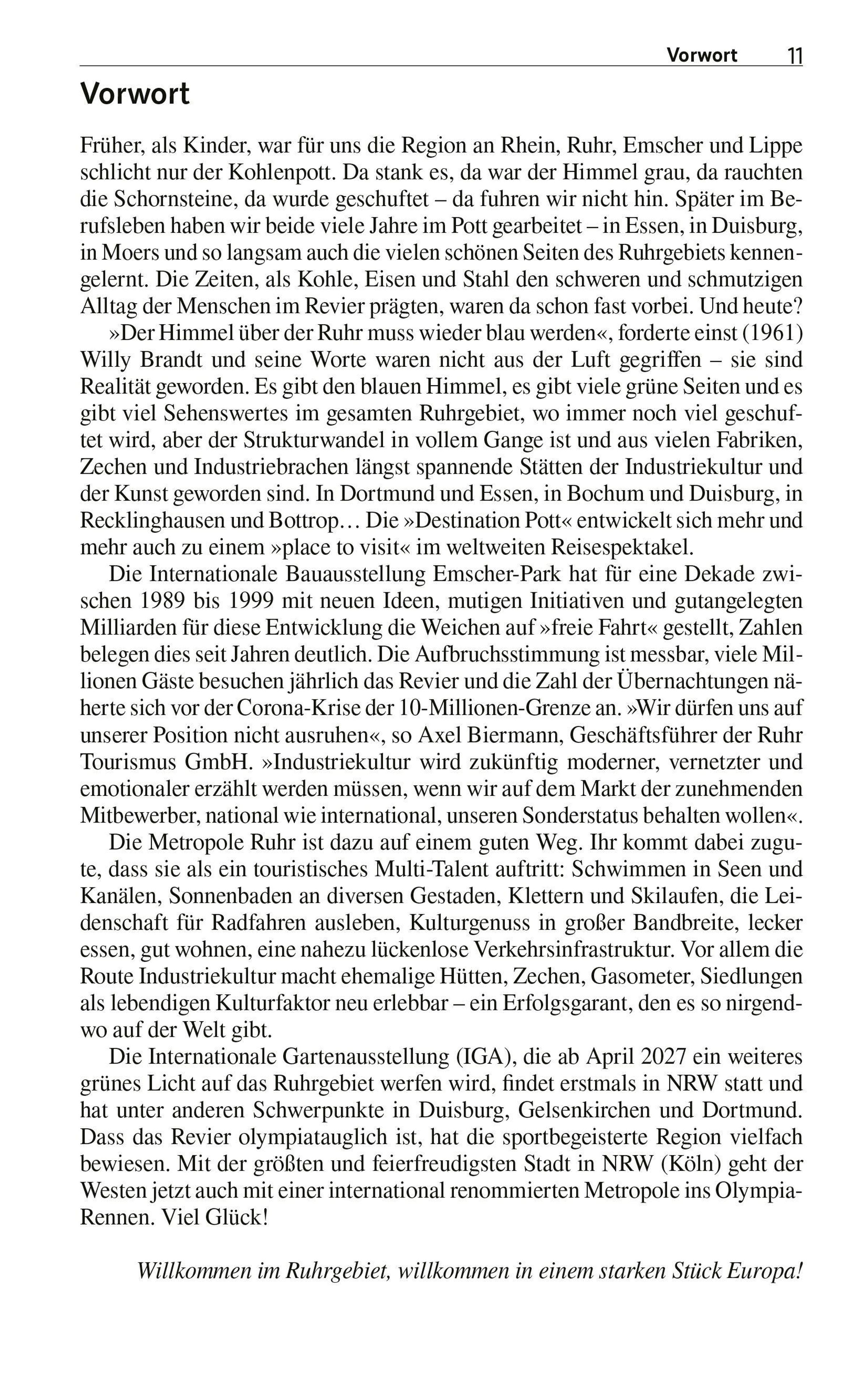 Denn nach wie vor ist das Ruhrgebiet eine Region der Kontraste. Die Autobahn A 40 teilt sie in den "industriellen und eher grauen Norden hier, den grünen und mehr oder weniger reichen Süden da", schreiben die Autoren Alexander und Friederike Richter. Sie haben viele Jahre im Pott gelebt und stellen alle Sehenswürdigkeiten und Aspekte mit viel Hintergrundwissen vor. Dazu haben sie zahlreiche Tipps für Freizeitaktivitäten parat. Und natürlich darf auch die Kulinarik nicht fehlen: vom Gourmetrestaurant bis zur Trinkhalle, auch "Büdchen" genannt und unverzichtbare Institution der Nahversorgung.