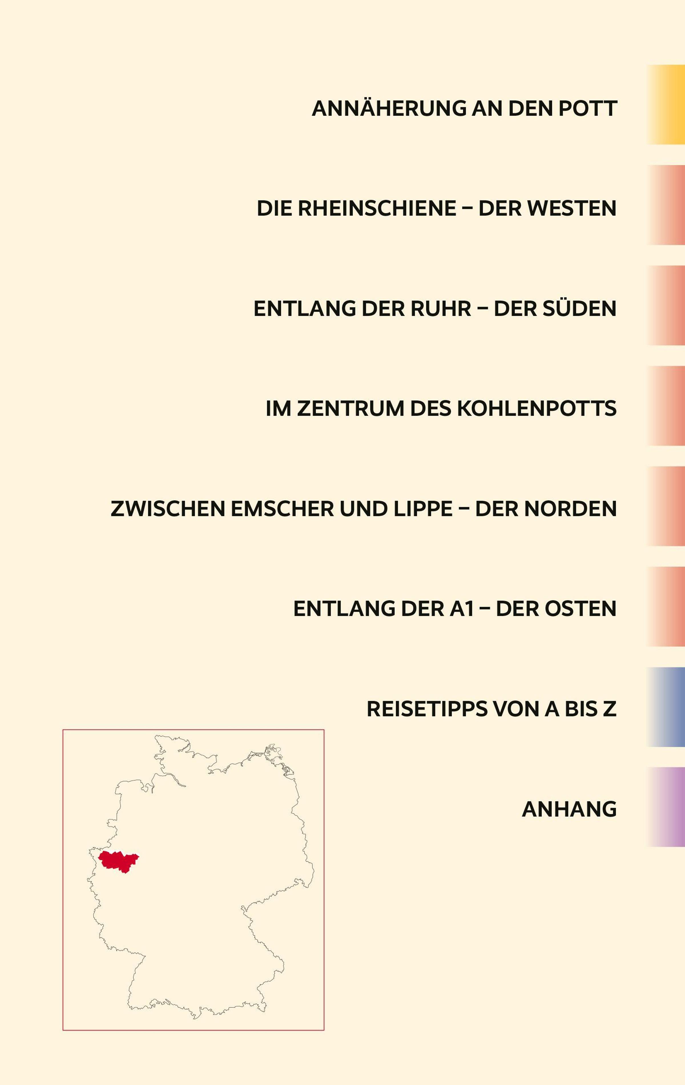 Aus erster Hand präsentiert der TRESCHER-Reiseführer RUHRGEBIET alle Attraktionen der Metropole Ruhr und gibt Spannendes zur Industriegeschichte, Kultur und Gegenwart an die Hand. Ausführliche Informationen zu Museen, Theatern und Festivals, Empfehlungen zu Unterkunft und Gastronomie, eine Fülle an Reisetipps und ein Extra-Kapitel zur Internationalen Gartenausstellung IGA 2027 komplettieren das Buch zum inspirierenden Wegweiser durch das Revier an der Ruhr im Wandel.