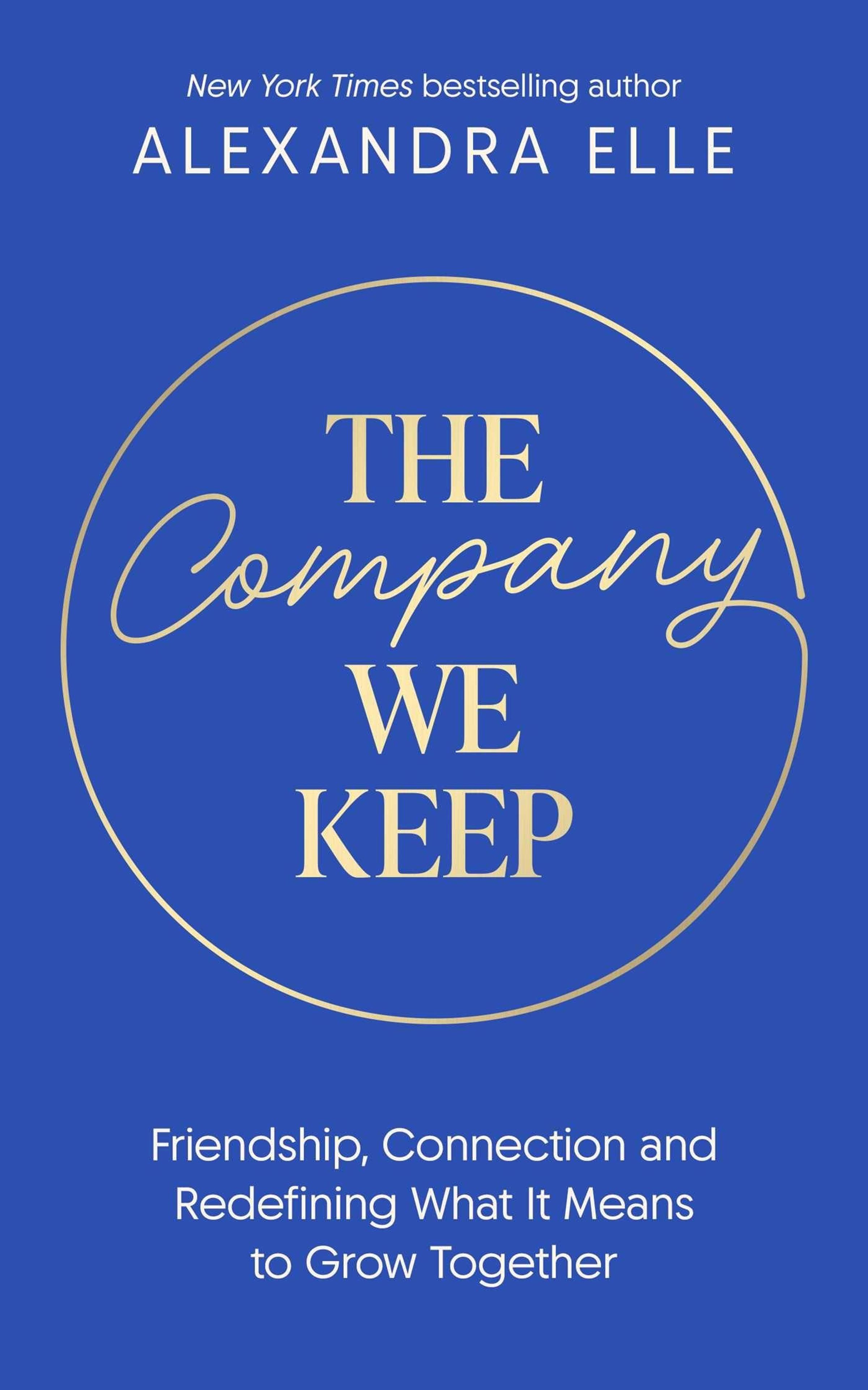 ALEXANDRA ELLE, "THE Company WE KEEP", Text über Freundschaft, Verbindung und gemeinsames Wachstum, auf blauem Hintergrund., Buch