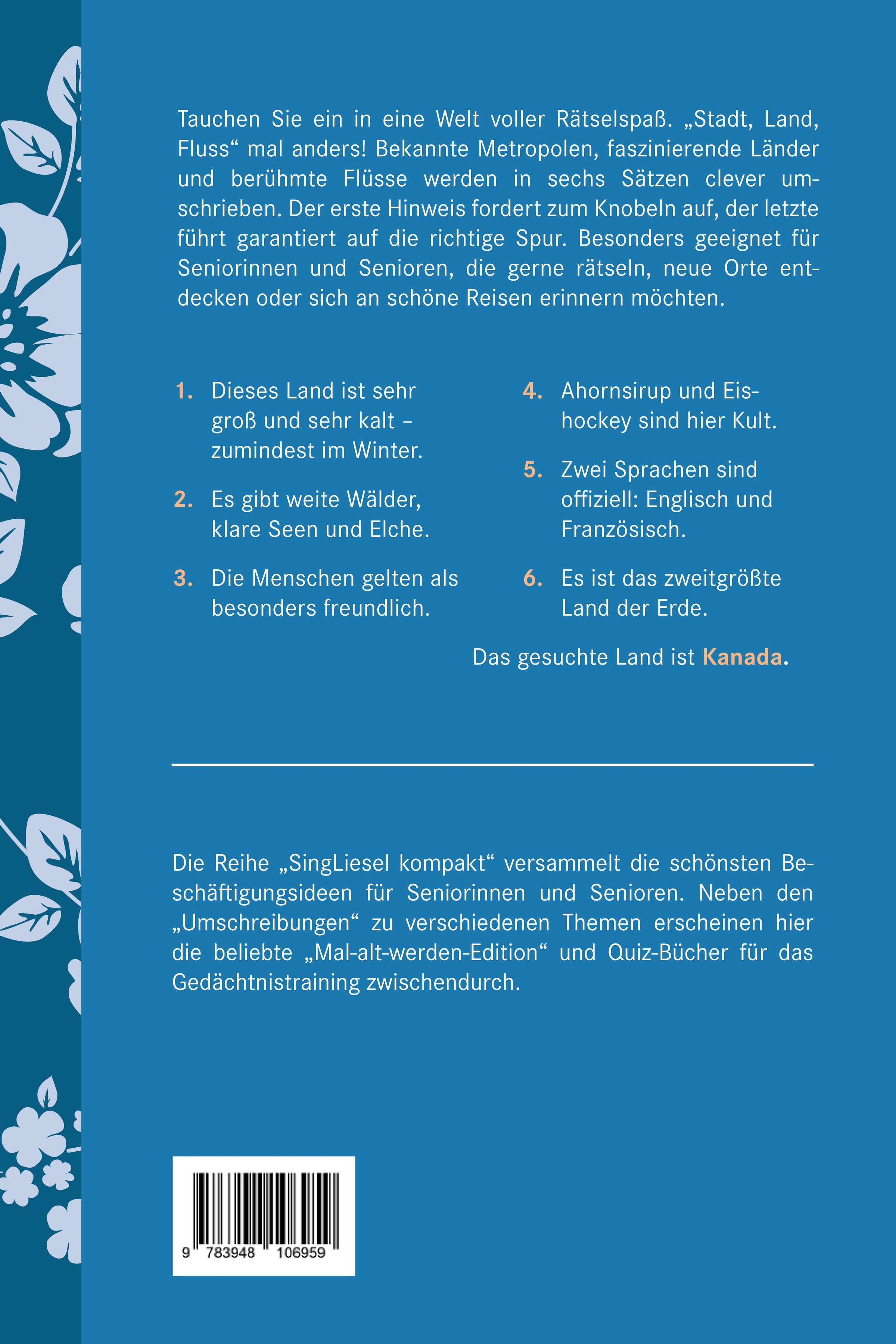 Tauchen Sie ein in eine Welt voller Rätselspaß. "Stadt, Land, Fluss" mal anders! Bekannte Metropolen, faszinierende Länder und tiefe Flüsse werden in sechs Sätzen clever umschrieben. Der erste Hinweis fordert zum Knobeln auf, der letzte führt garantiert auf die richtige Spur. Besonders geeignet für Seniorinnen und Senioren, die gerne rätseln, neue Orte entdecken oder sich an schöne Reisen erinnern möchten.
