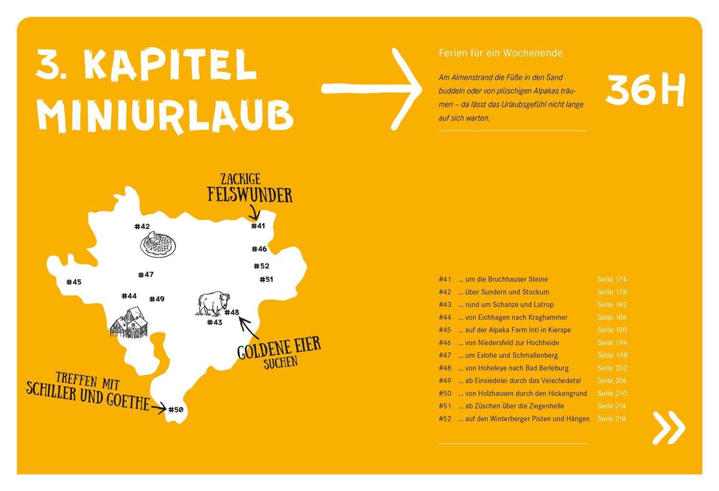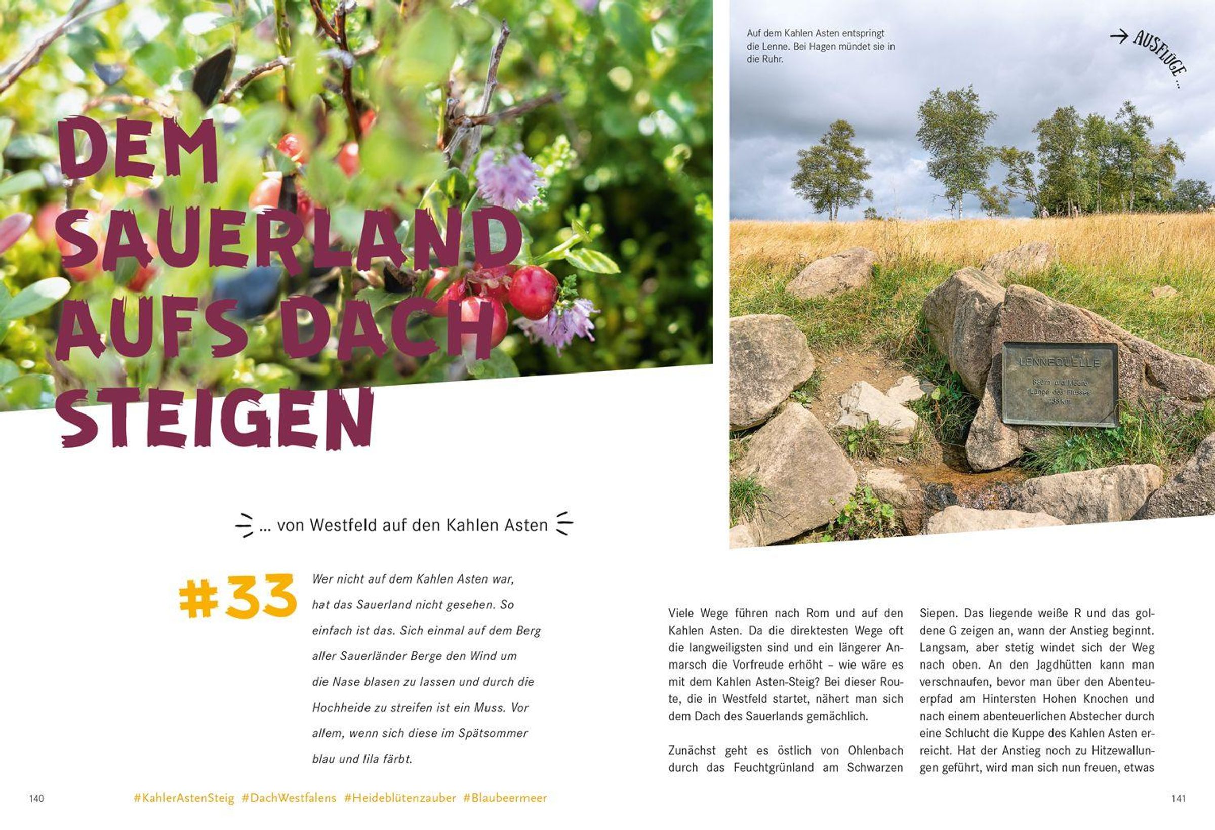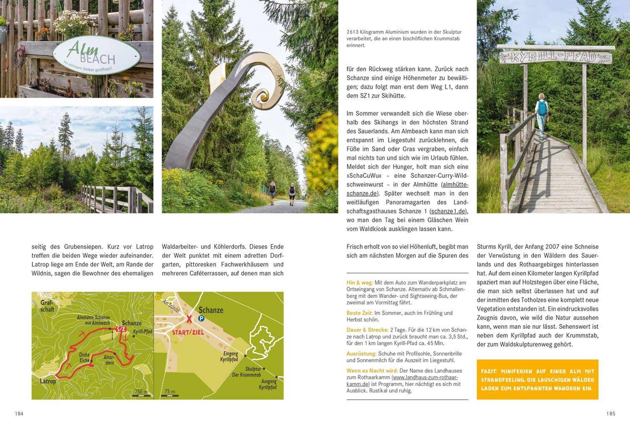 Ob wandern, radeln, paddeln oder in aller Ruhe die Natur genießen: 52 kleine und große Eskapaden machen Lust, die schönsten Ecken im Naturpark Sauerland Rothaargebirge zu entdecken. Für wenige Stunden, einen Tag oder ein Wochenende - unwiderstehliche Ausflüge ins Grüne warten. Wilde Wisente suchen, durch Baumwipfel fliegen oder auf dem Vulkan tanzen, es ist so einfach, mehr zu erleben als das Bekannte. Also ab nach draußen!