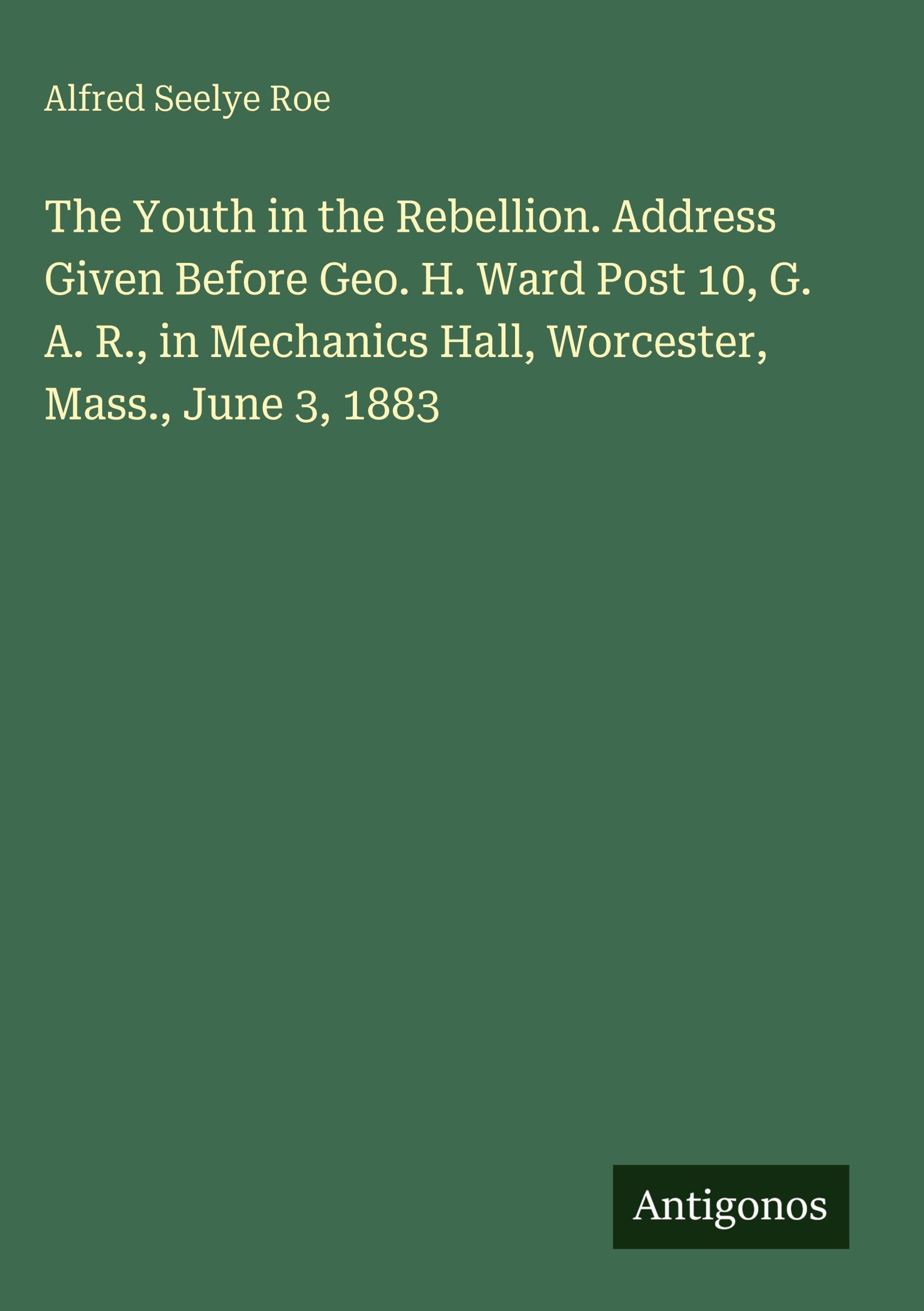 The Youth in the Rebellion. Address Given Before Geo. H. Ward Post 10, G. A. R., in Mechanics Hall, Worcester, Mass., June 3, 1883