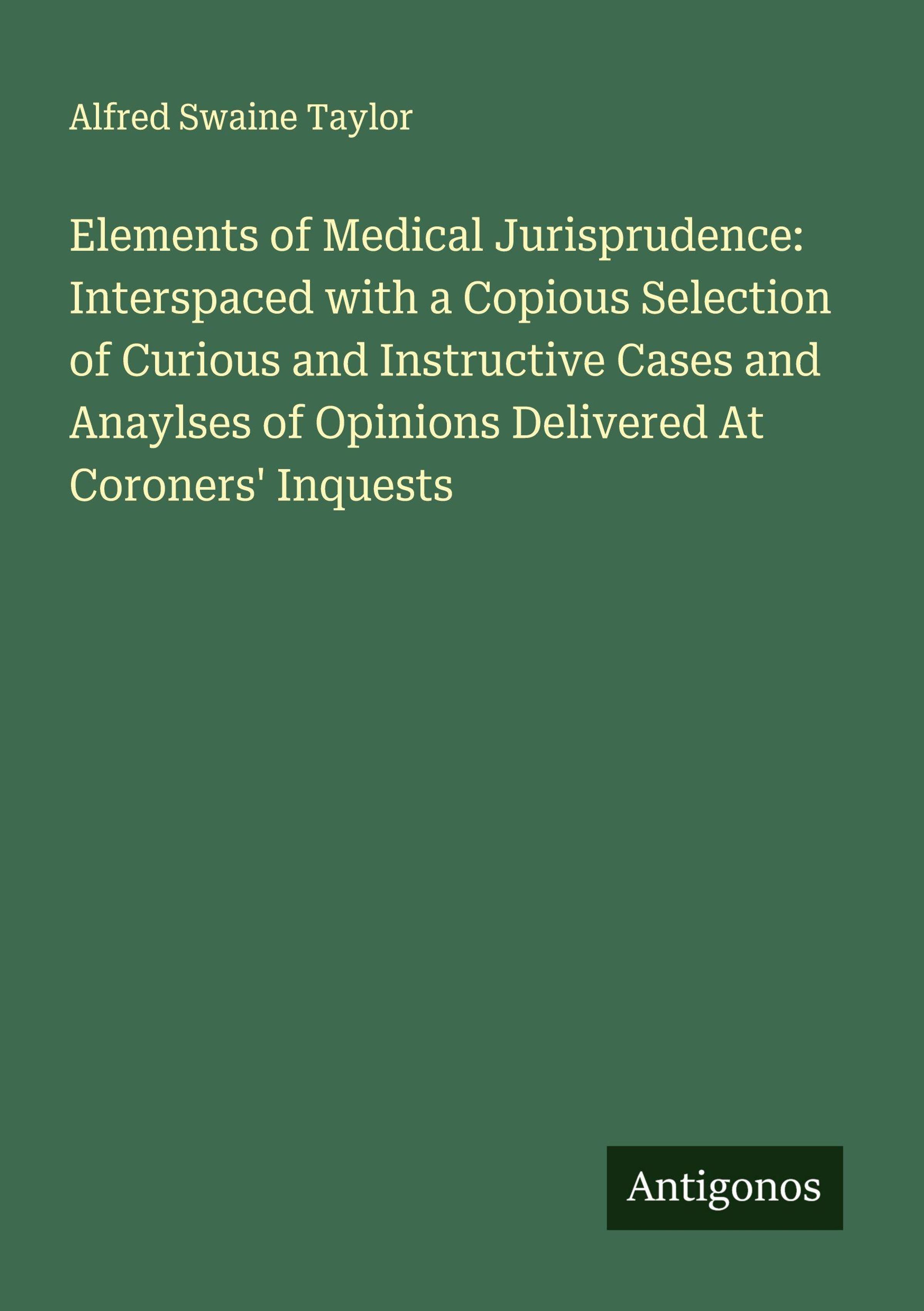 Elements of Medical Jurisprudence: Interspaced with a Copious Selection of Curious and Instructive Cases and Anaylses of Opinions Delivered At Coroners' Inquests