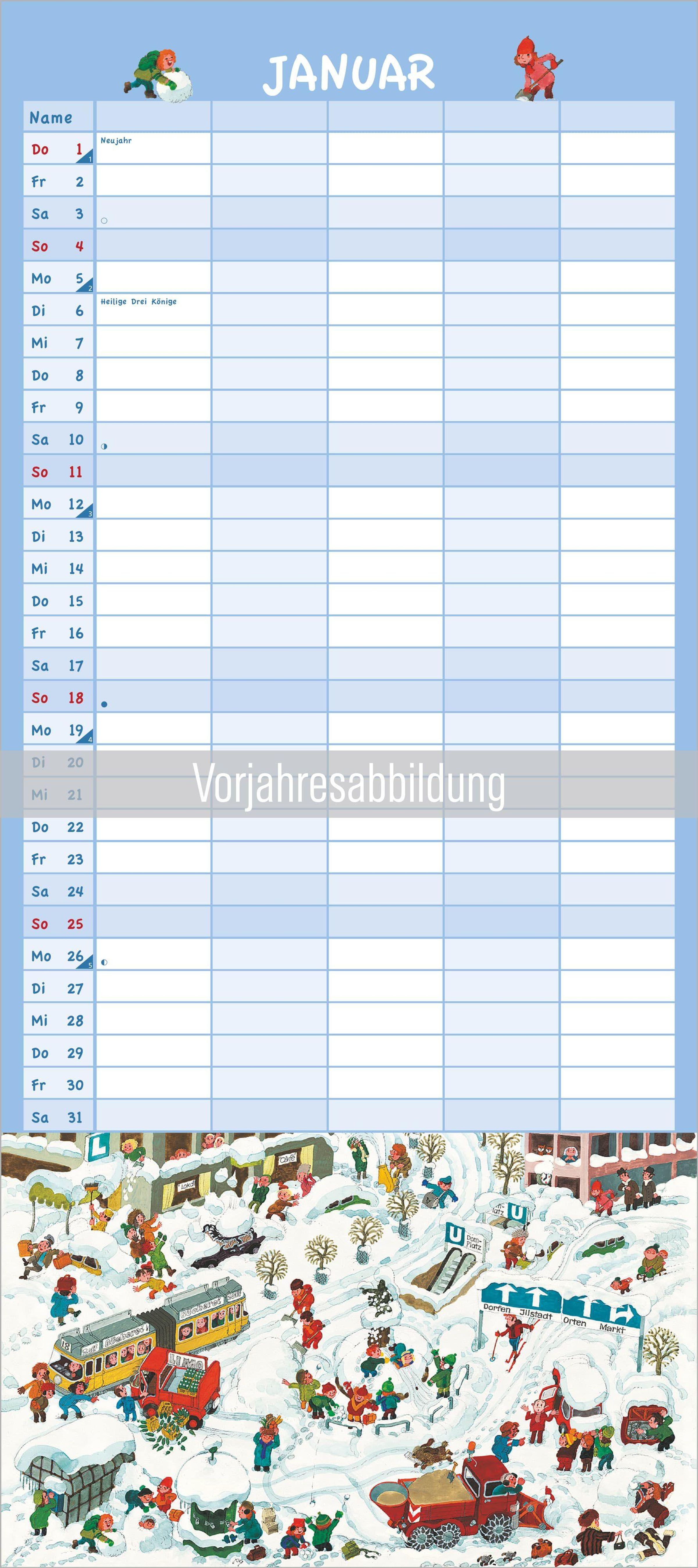 Ein liebevoll gestalteter Familienplaner, der Organisation mit den kultigen Illustrationen von Ali Mitgutsch verbindet -- ein Muss für Familien und Fans des Kinderbuchklassikers.