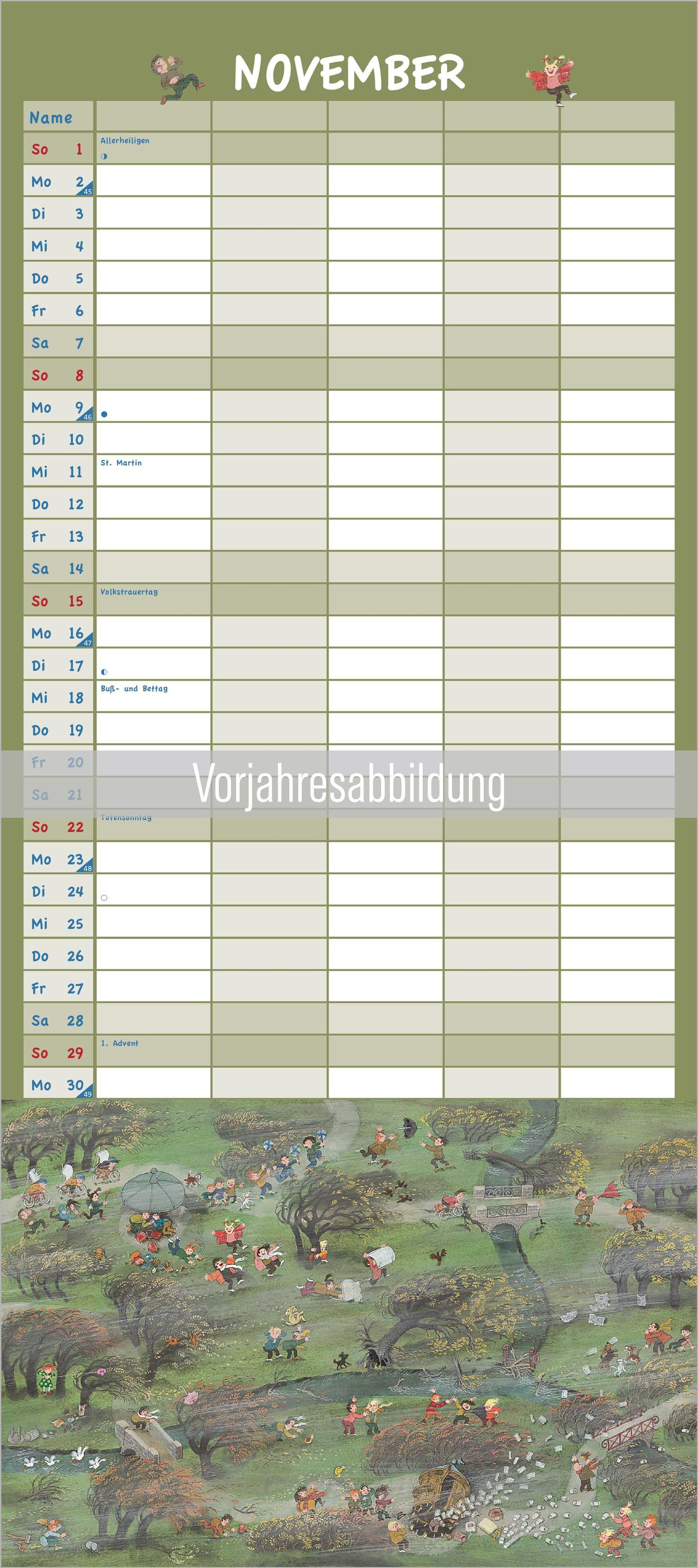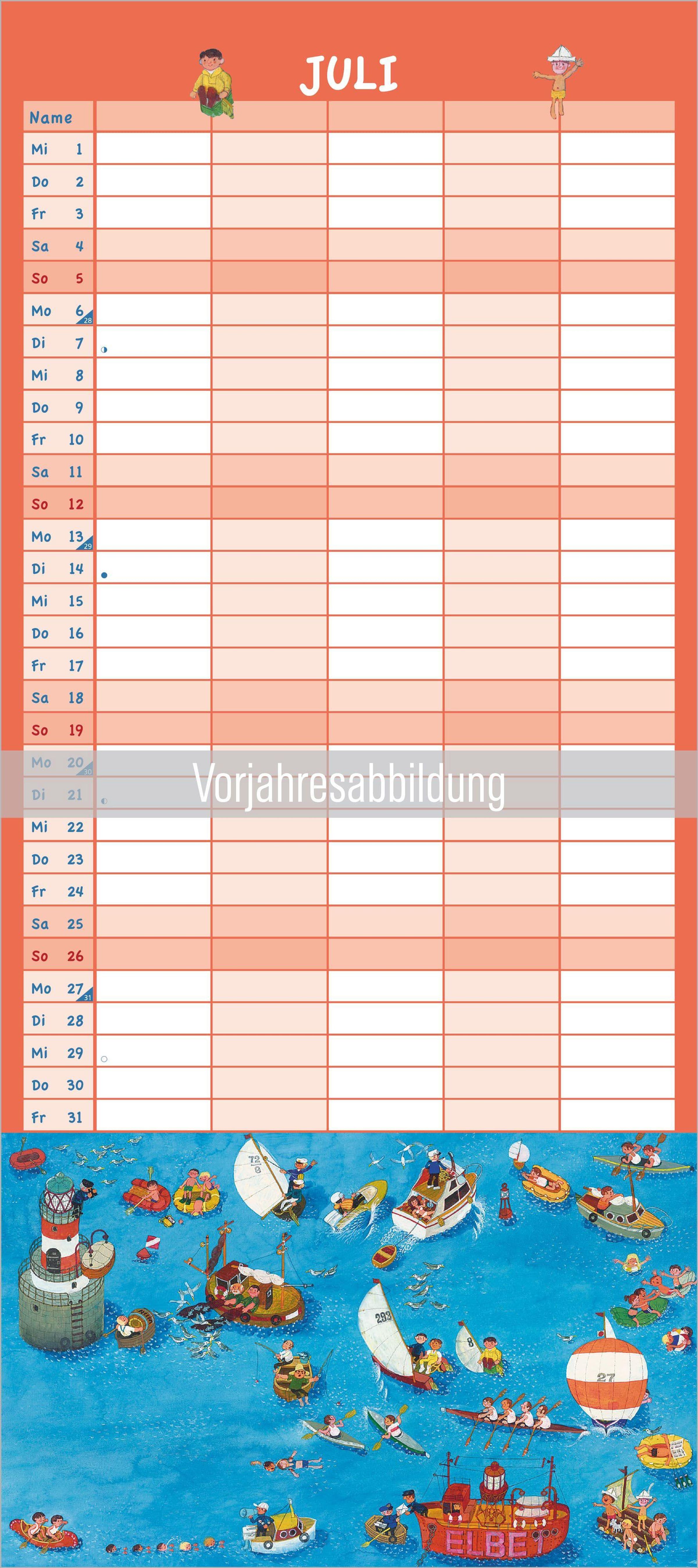 Übersichtliche Planung: 5 Spalten für bis zu fünf Familienmitglieder -- ideal für Termine, Geburtstage und Alltagsorganisation