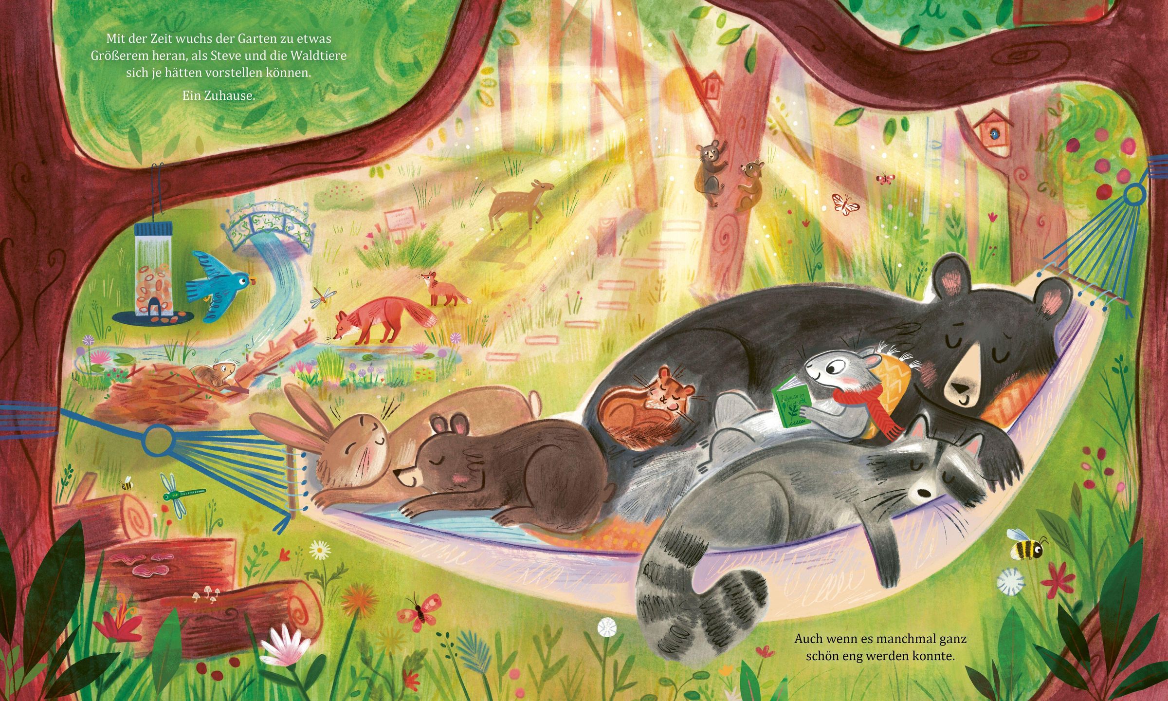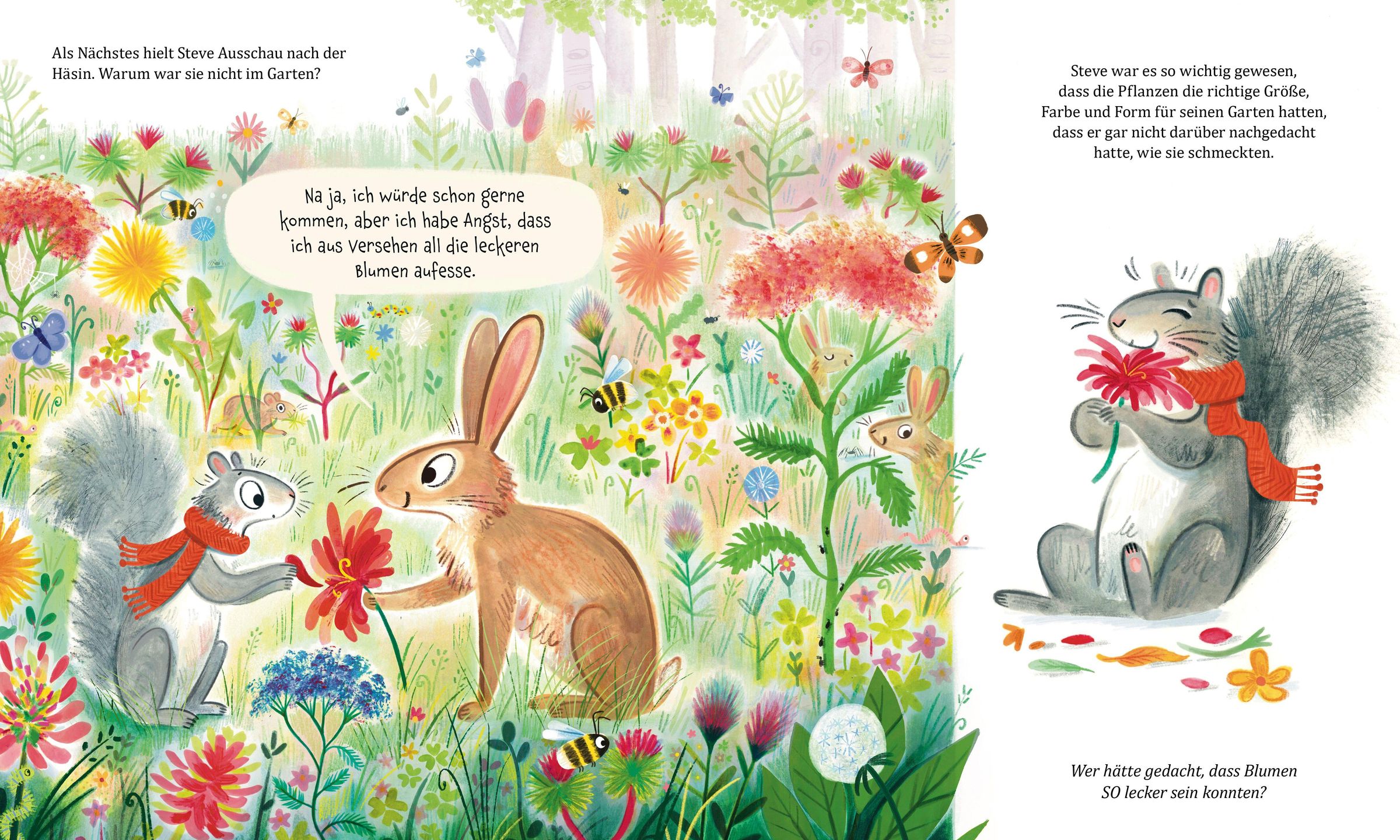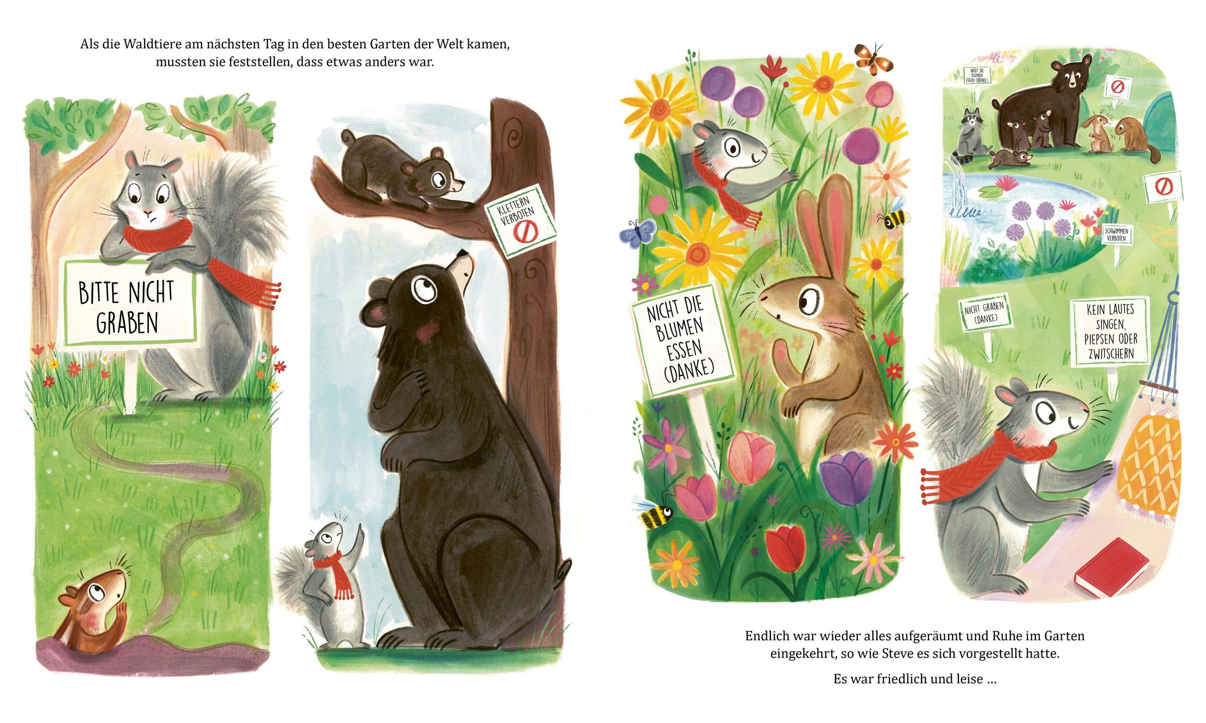 Stadthörnchen Steve hat einen großen Traum: Er will ins Grüne ziehen und dort den besten Garten der Welt erschaffen. Die Waldtiere helfen begeistert mit und pflanzen und jäten und säen und stutzen, bis alles perfekt ist. Doch was ist das?! Die Streifenhörnchen buddeln Tunnel im Rasen und die Hasen knabbern die schönen Blumen an! Steve will das wilde Treiben stoppen, bis ihm aufgeht, dass Freundschaft die wichtigste Zutat für den besten Garten der Welt ist. Und zusammen gestalten sie einen Garten, der für alle Platz bietet - wild, vielfältig, bunt und wunderschön.
