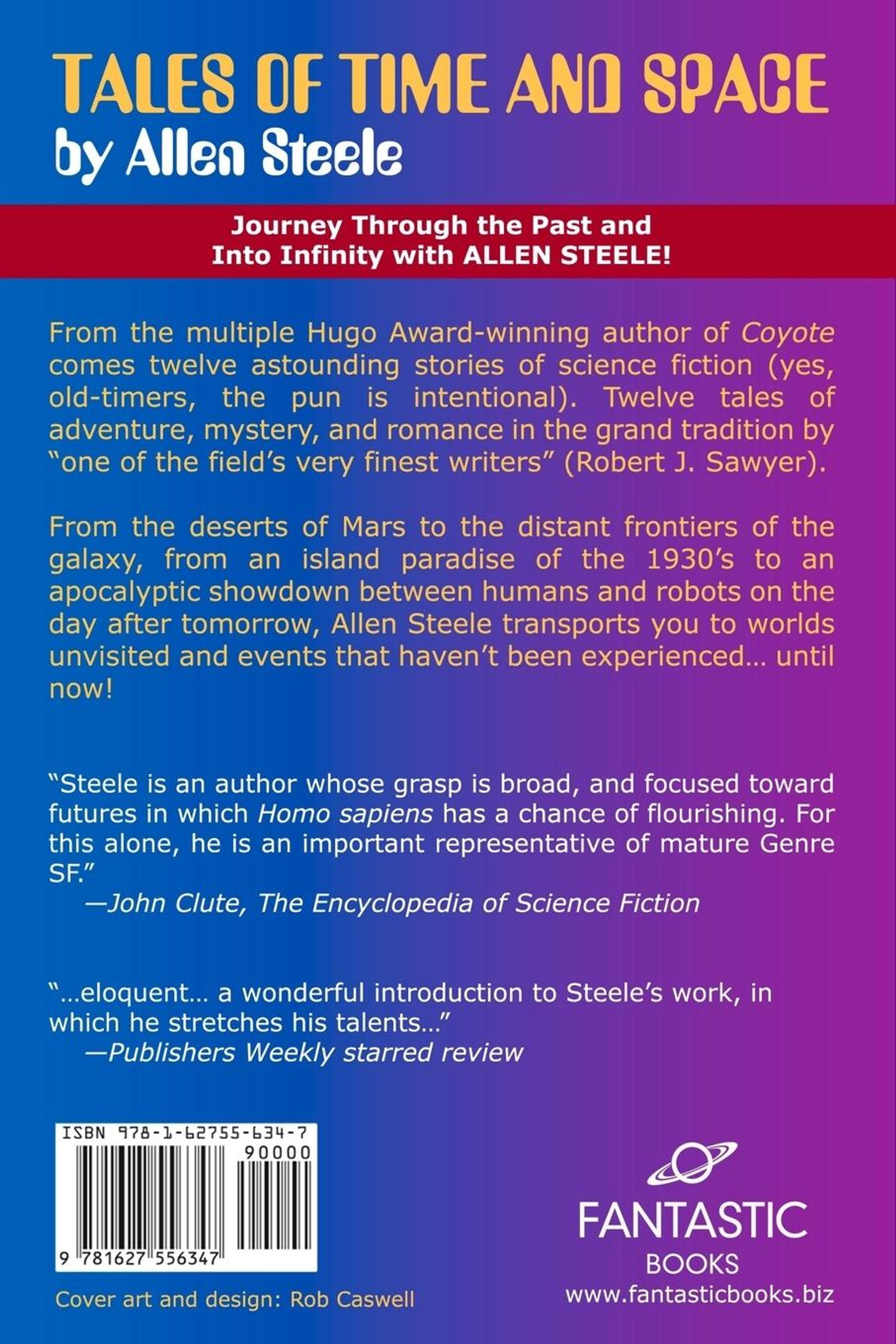 "...eloquent... a wonderful introduction to Steele's work, in which he stretches his talents..." ---Publishers Weekly starred review "Allen Steele... writes the kind of science-based, extrapolative tales that we all enjoy.... Tales of Time and Space brings together an even dozen of Steele's stories, and each one is a delight.... "The Big Whale" is a hilarious mash-up of Herman Melville and pulp detective stories...." -Don Sakers, Analog Science Fiction and Fact.