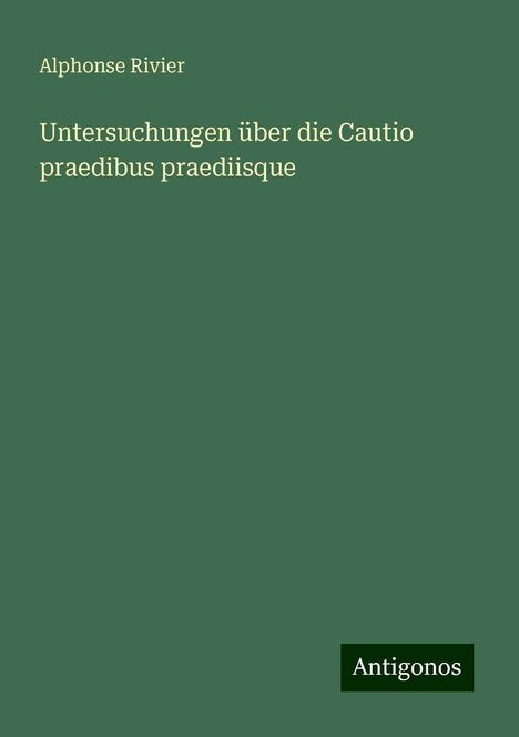 Alphonse Rivier: Untersuchungen über die Cautio praedibus praediisque, Kartoniert / Broschiert
