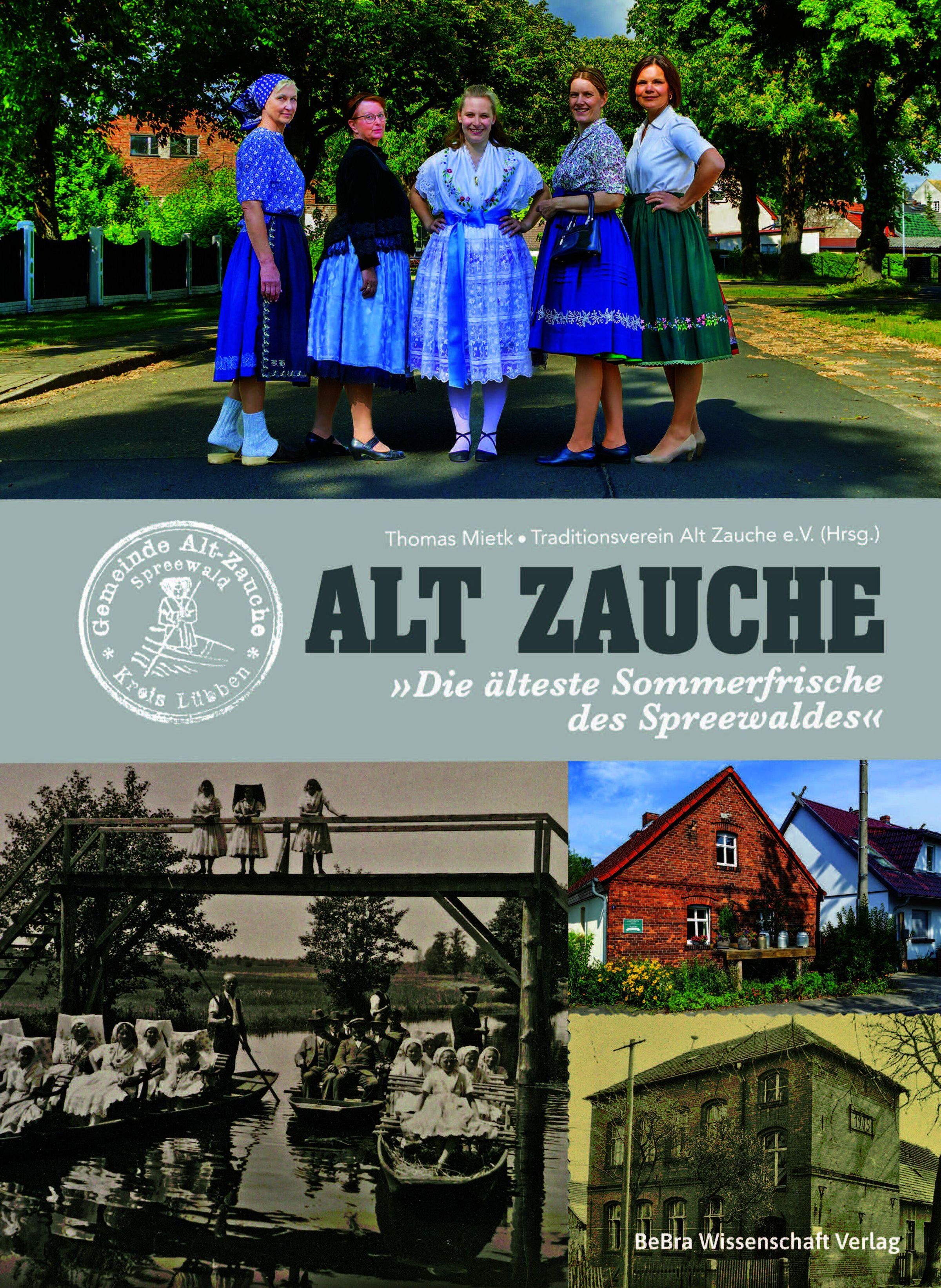 ALT Zauche, »Die älteste Sommerfrische des Spreewaldes«. Oben: Frauen in Tracht auf Straße, unten: historische Boote und Gebäude., Buch
