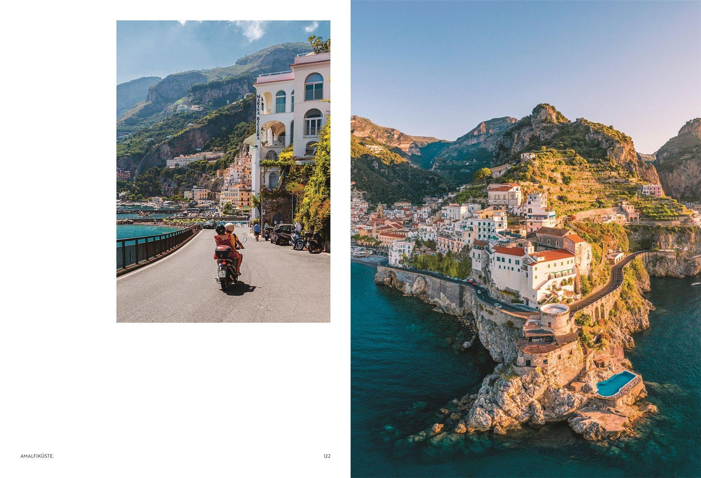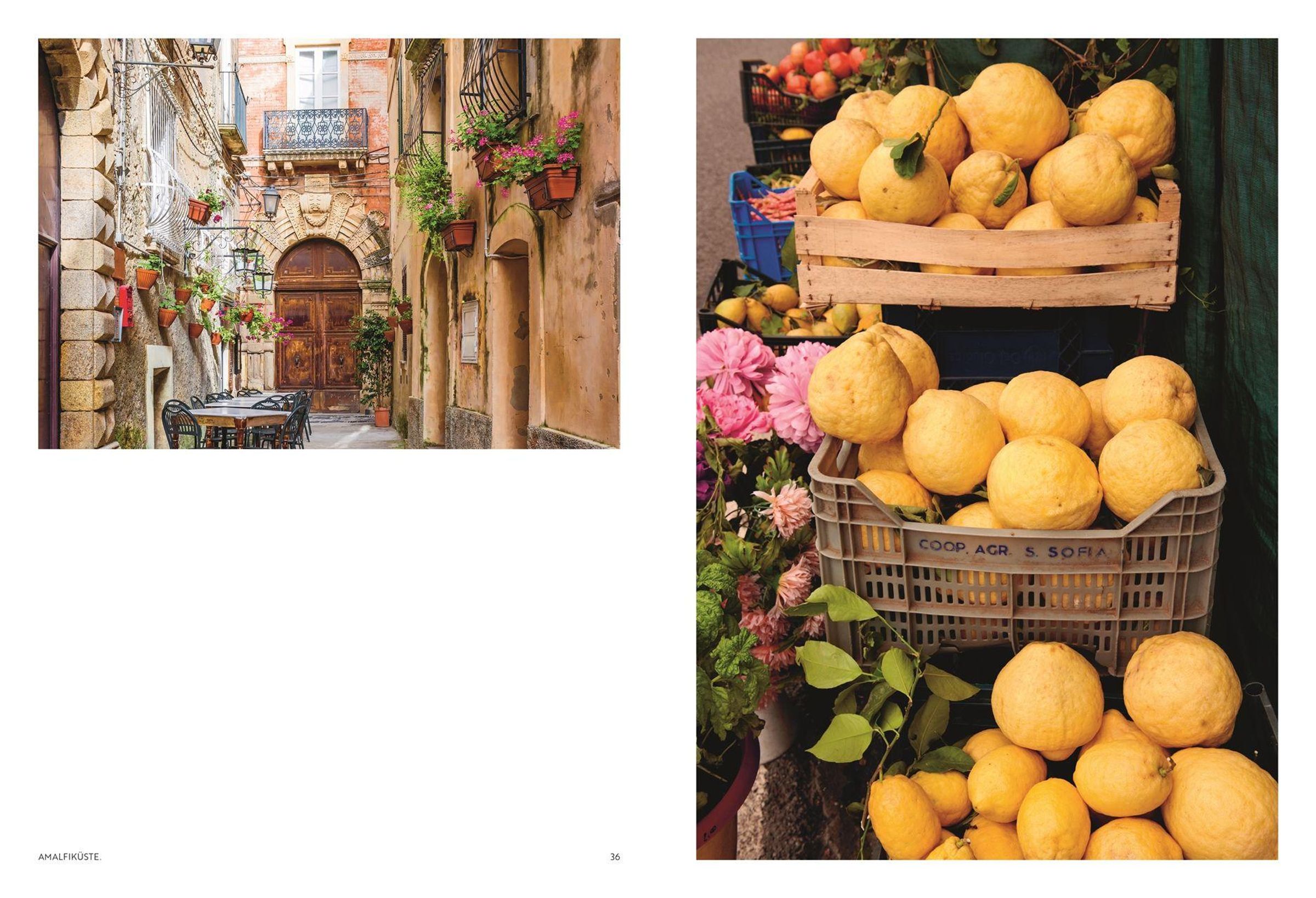 Pastellfarbene Häuser schmiegen sich an steile Hänge, Bougainvillea leuchtet vor azurblauem Meer, Zitronenbäume verströmen ihren Duft im warmen Licht des Südens: Dieser traumhafte Italien-Bildband ist eine Liebeserklärung an die Amalfiküste .