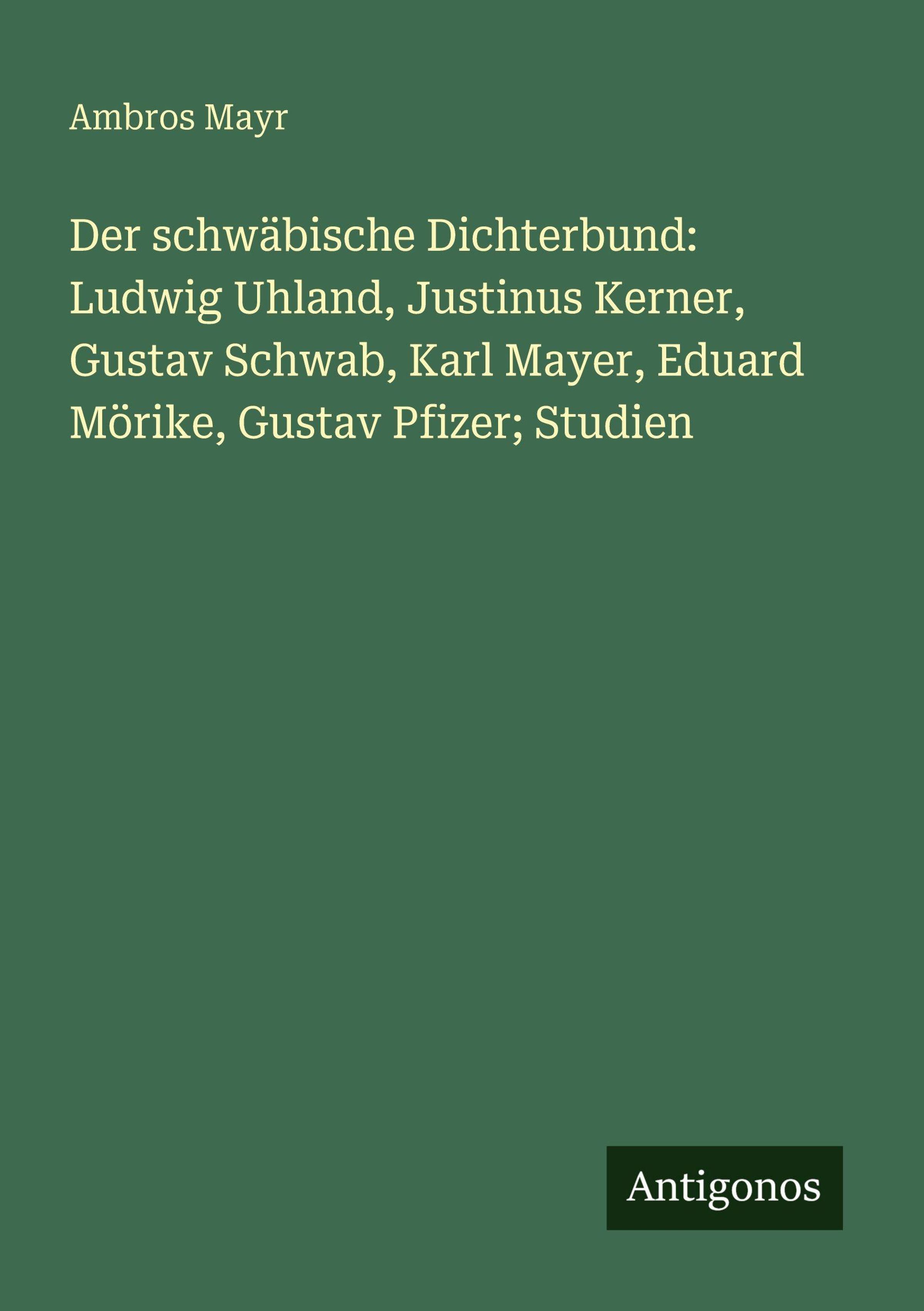 Der schwäbische Dichterbund: Ludwig Uhland, Justinus Kerner, Gustav Schwab, Karl Mayer, Eduard Mörike, Gustav Pfizer; Studien