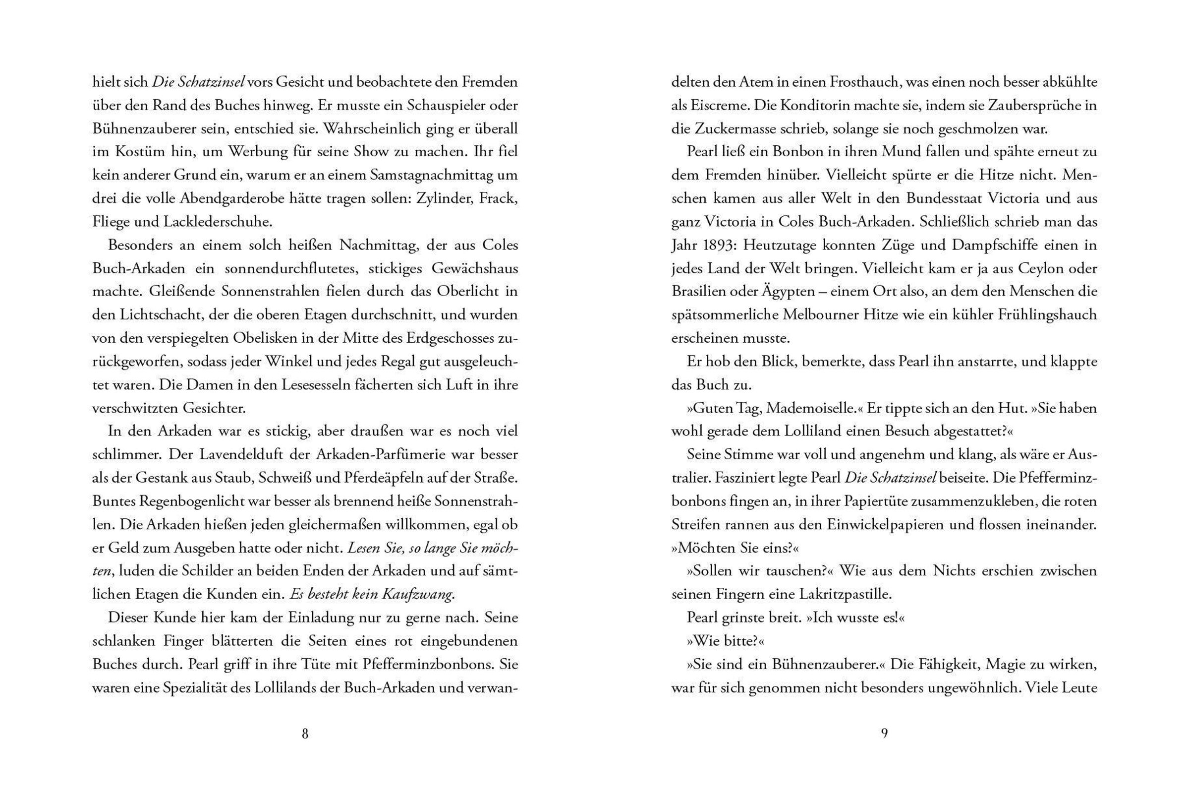 Pearl and Vally Cole leben in der größten Buchhandlung der Welt, einem ganz besonderen Ort voller Bücher, exotischer Tiere und Pflanzen und zahlloser Überraschungen, die ihr Vater mithilfe von Fantasie und Magie erschaffen hat. Bis plötzlich nichts mehr ist, wie es vorher war: Pa Cole hat sich auf einen gefährlichen Handel mit einem geheimnisvollen dunklen Magier eingelassen. Um ihn und die Buch-Arkade zu retten, müssen sich die Geschwister nun einem atemlosen Wettkampf gegen die Zeit stellen. Werden sie es schaffen, die sieben Aufgaben des Magiers zu lösen, um ihre Familie und alles, was ihnen wichtig ist, vor dem Verschwinden zu bewahren?