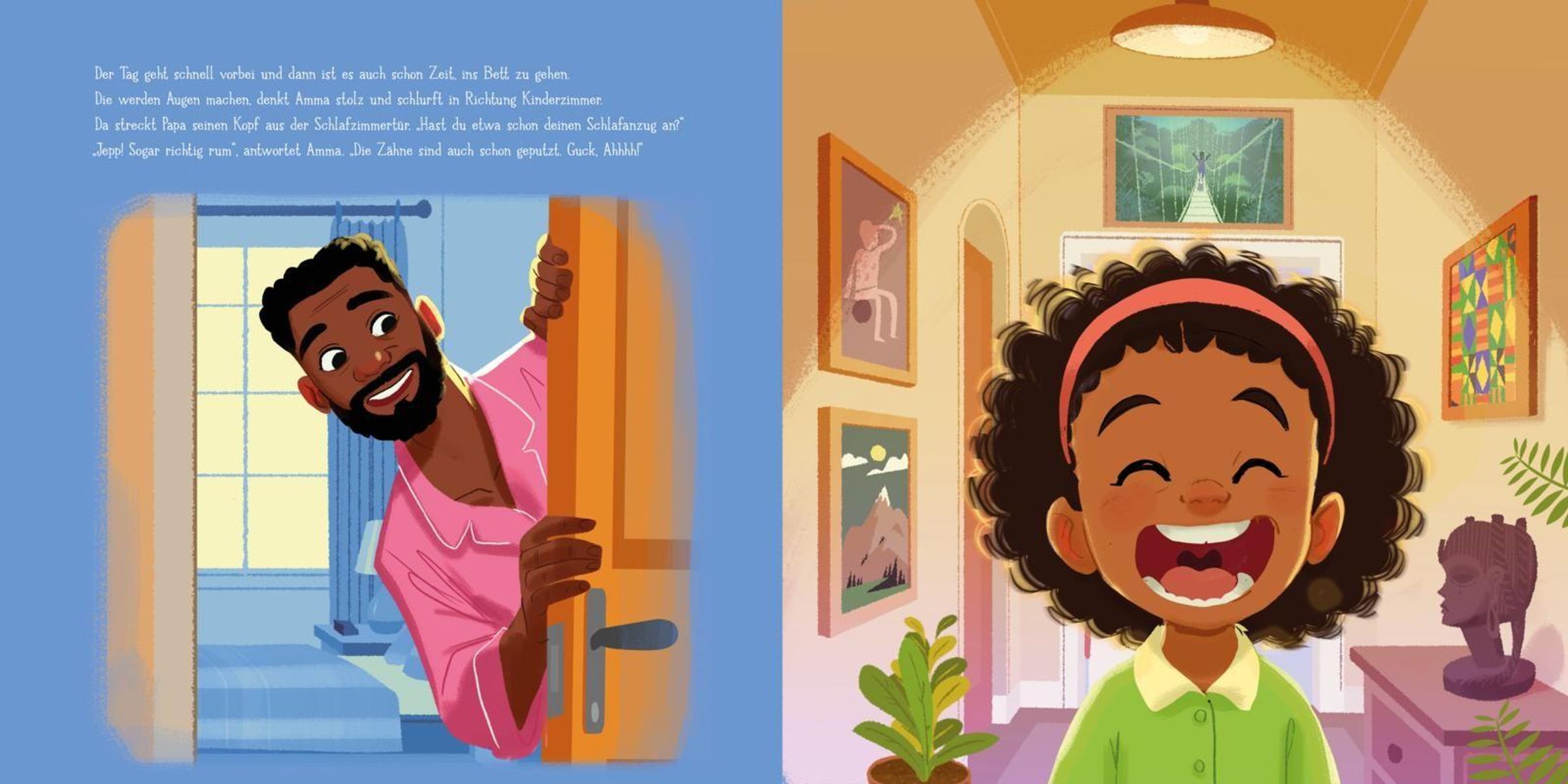 - zeigt den liebevollen Umfang in der Familie zur Schlafenszeit