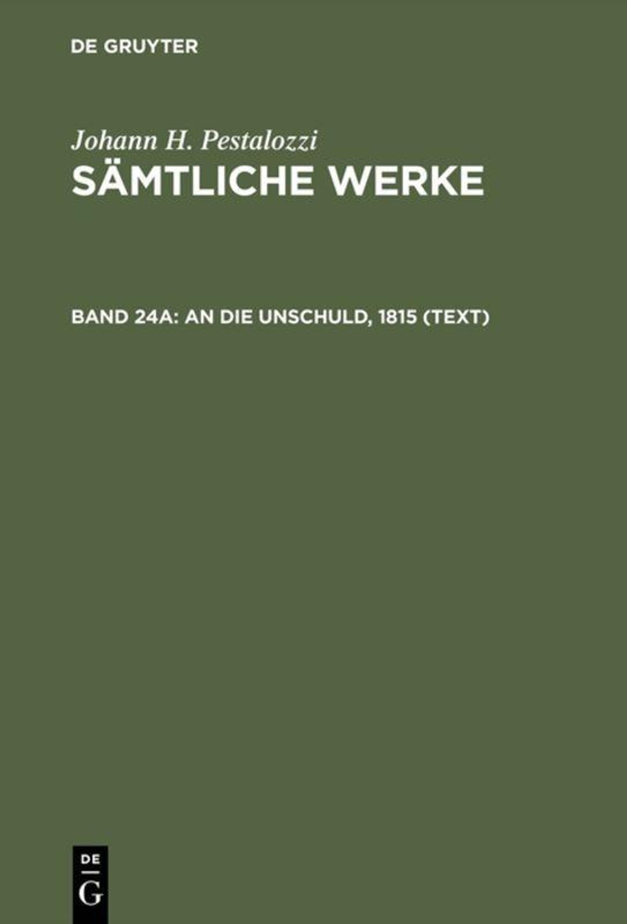 Frontmatter -- Inhalt -- Vorwort -- PESTALOZZI SÄMTLICHE WERKE -- Vorrede -- Gedruckter Text -- Entwurf-Fragmente -- Ergänzungen